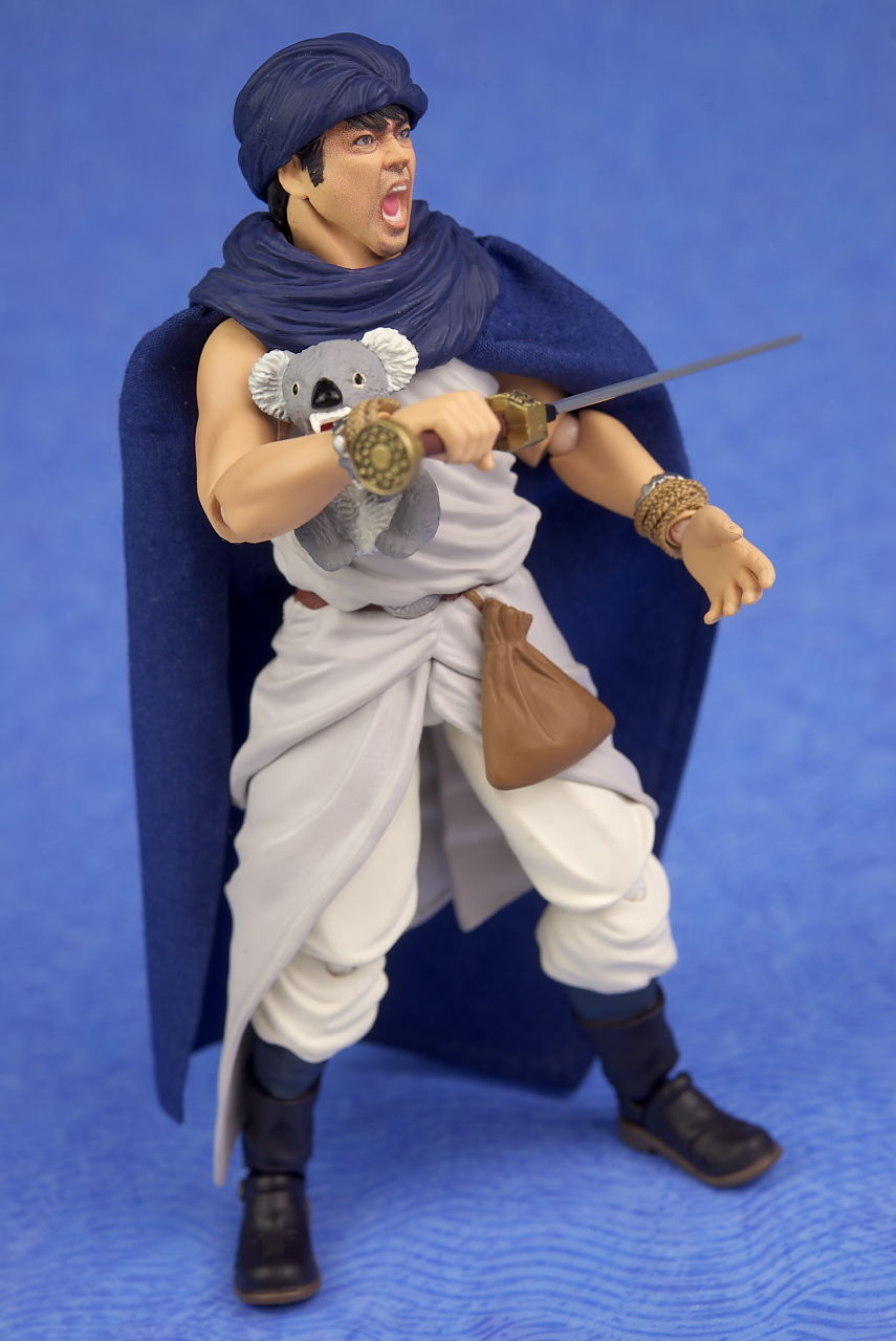 可動はマントが布製なのでそこの干渉はなかったものの、襟や裾は干渉するので全体で見ると動きが制限される箇所は多く、また肩もすっぽ抜けやすかったりで派手に動かして遊ぶのにはあまり向いてなかったです。