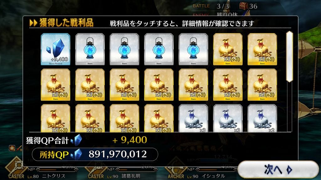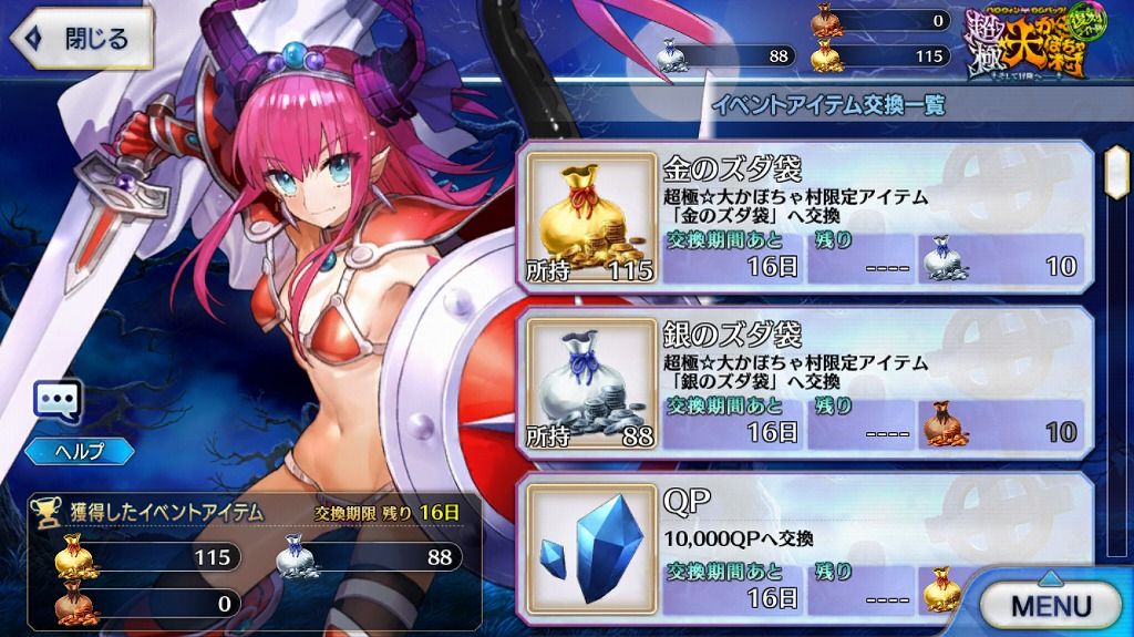 ・復刻ハロウィンで新しく追加された高難易度は一応警戒してガチ編成でいったところ、特別な仕掛けなどはなかったので普通に初見クリア。素材目当ての周回をしてるうちに袋の交換なども終了。