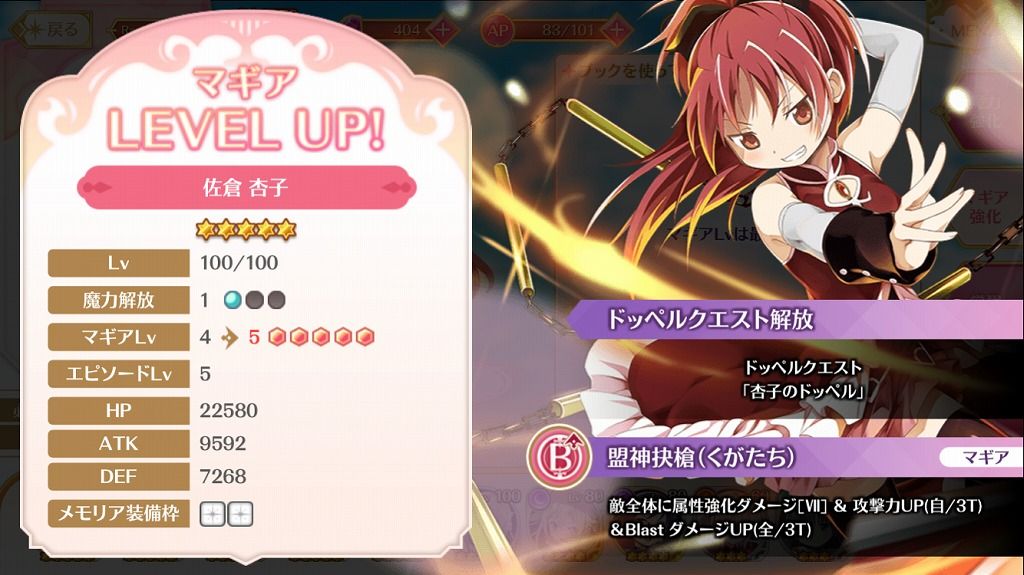 あとマギレコの方は新しく追加された杏子もドッペルまで開放してほぼ育成完了。