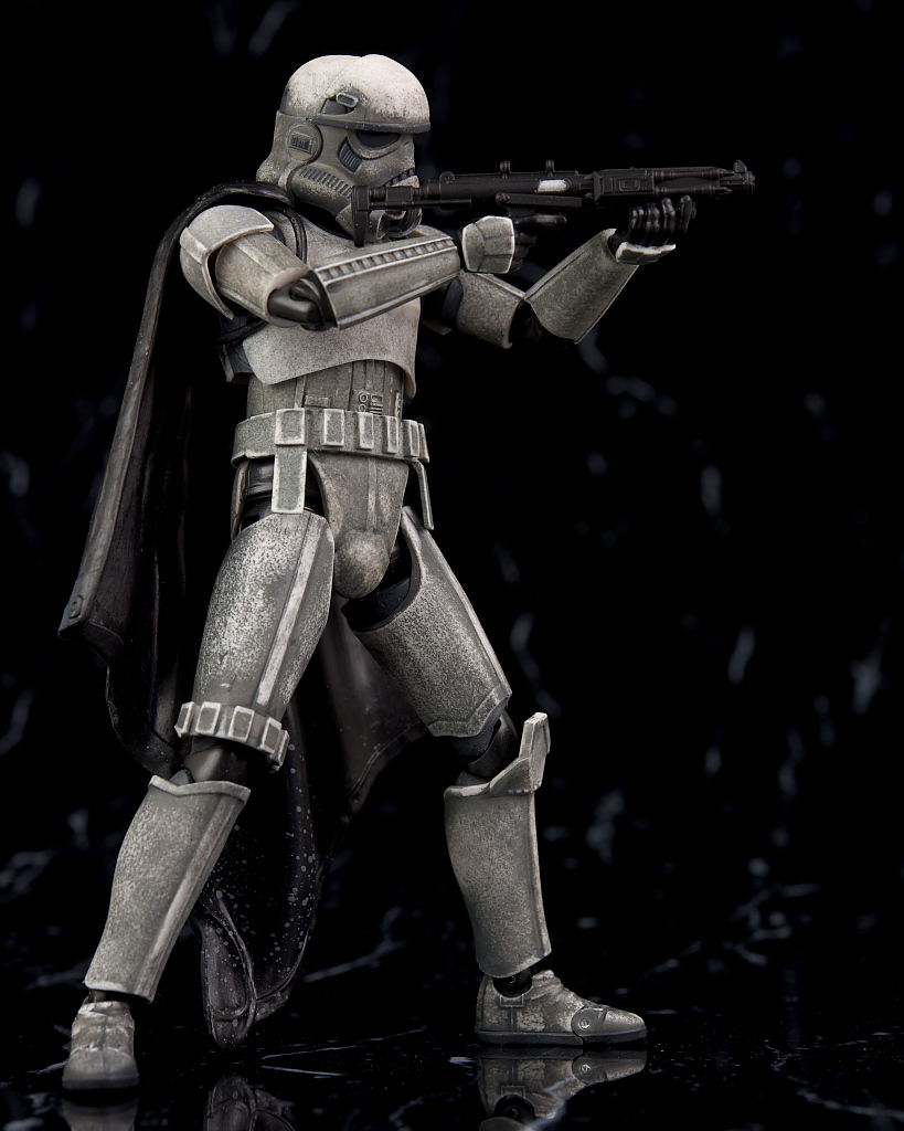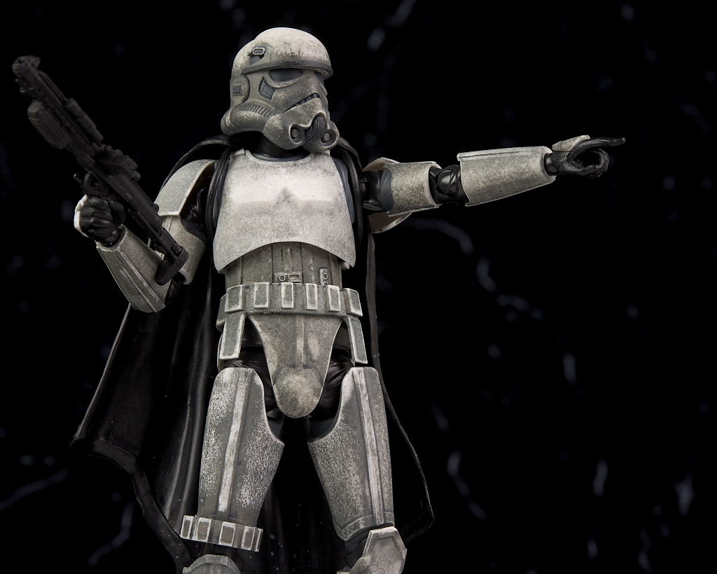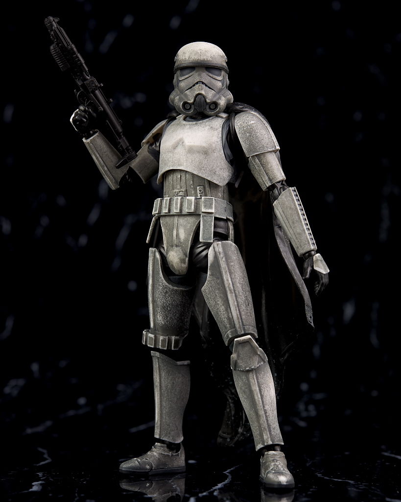 全身。形的にはマントを付けたストームトルーパーですが、塗装が特殊で全身に渡って汚しが施されてるのが特徴。
