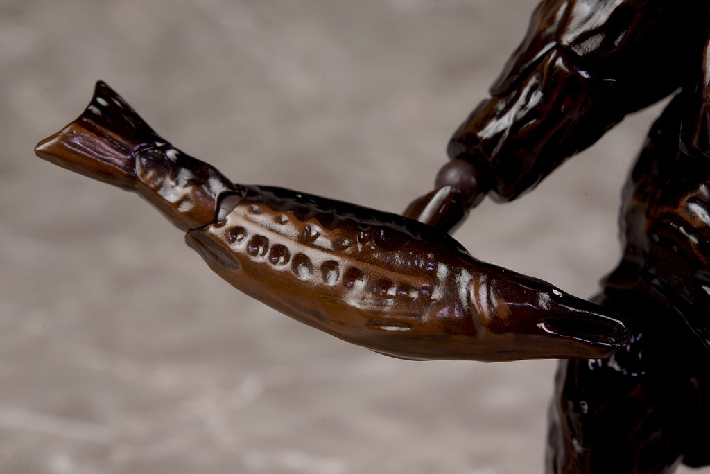 鮭を咥えさせて首を捻ればオリジナルに近い状態に。