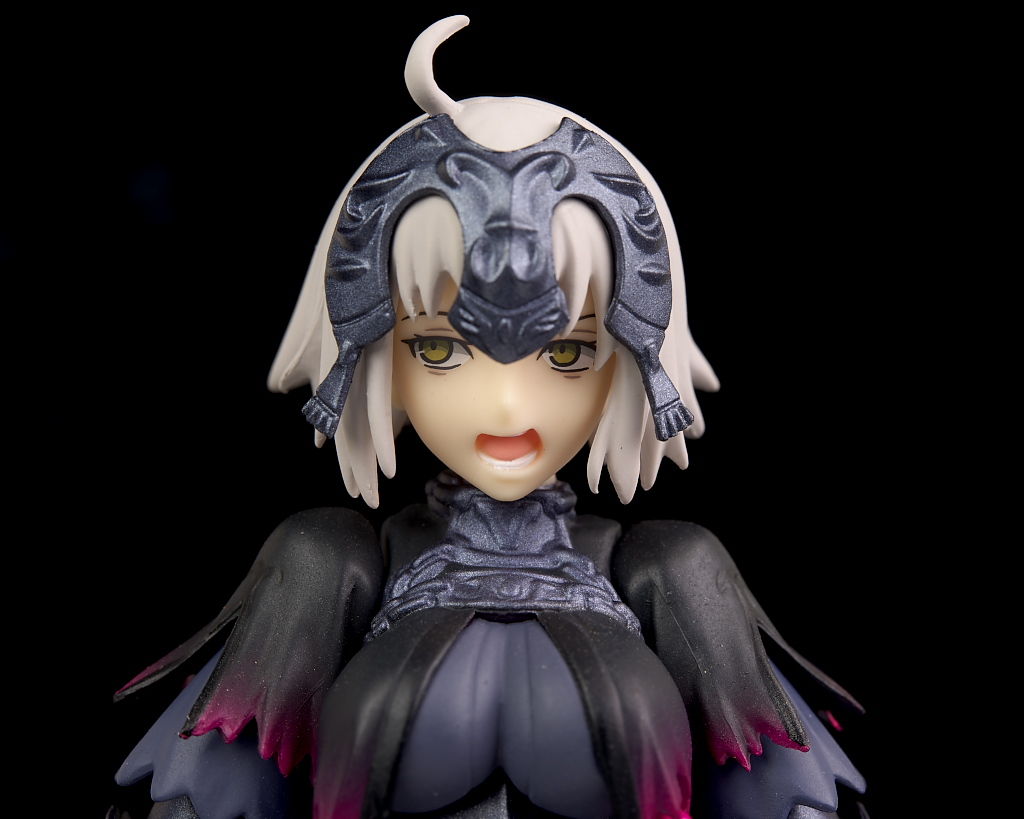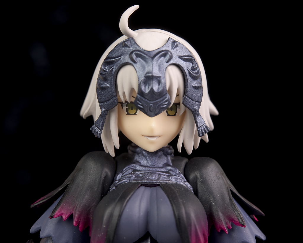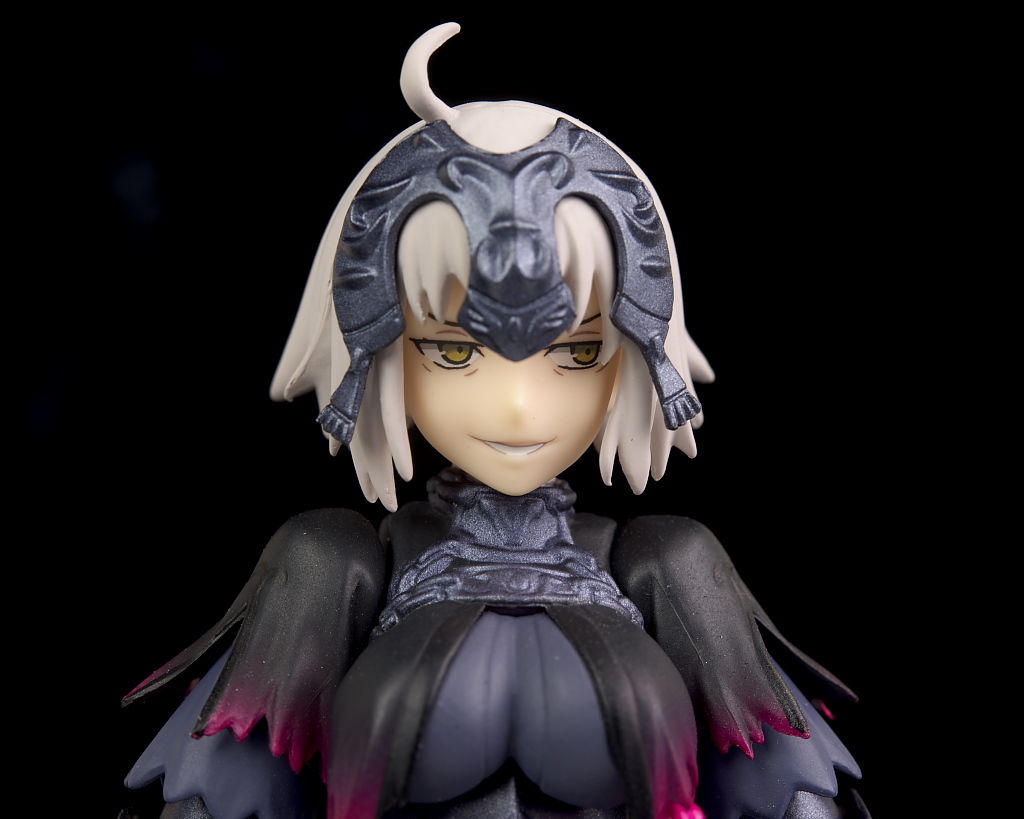 顔。シルエットはほぼ同じですがこちらはオルタらしい邪悪な表情に。通常のジャンヌには無いアホ毛も追加。