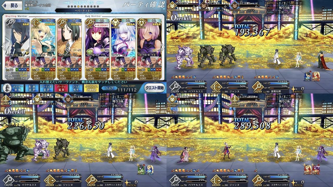 決勝のガーデン級は水着ジャンヌメインの礼装ガン積み編成でほぼ3Tで回れるので、あとは最終日までこれを繰り返すだけ。