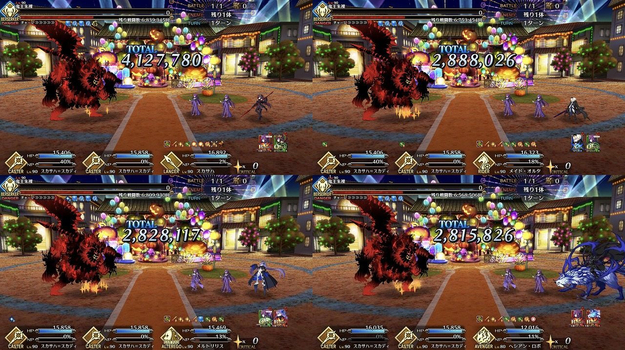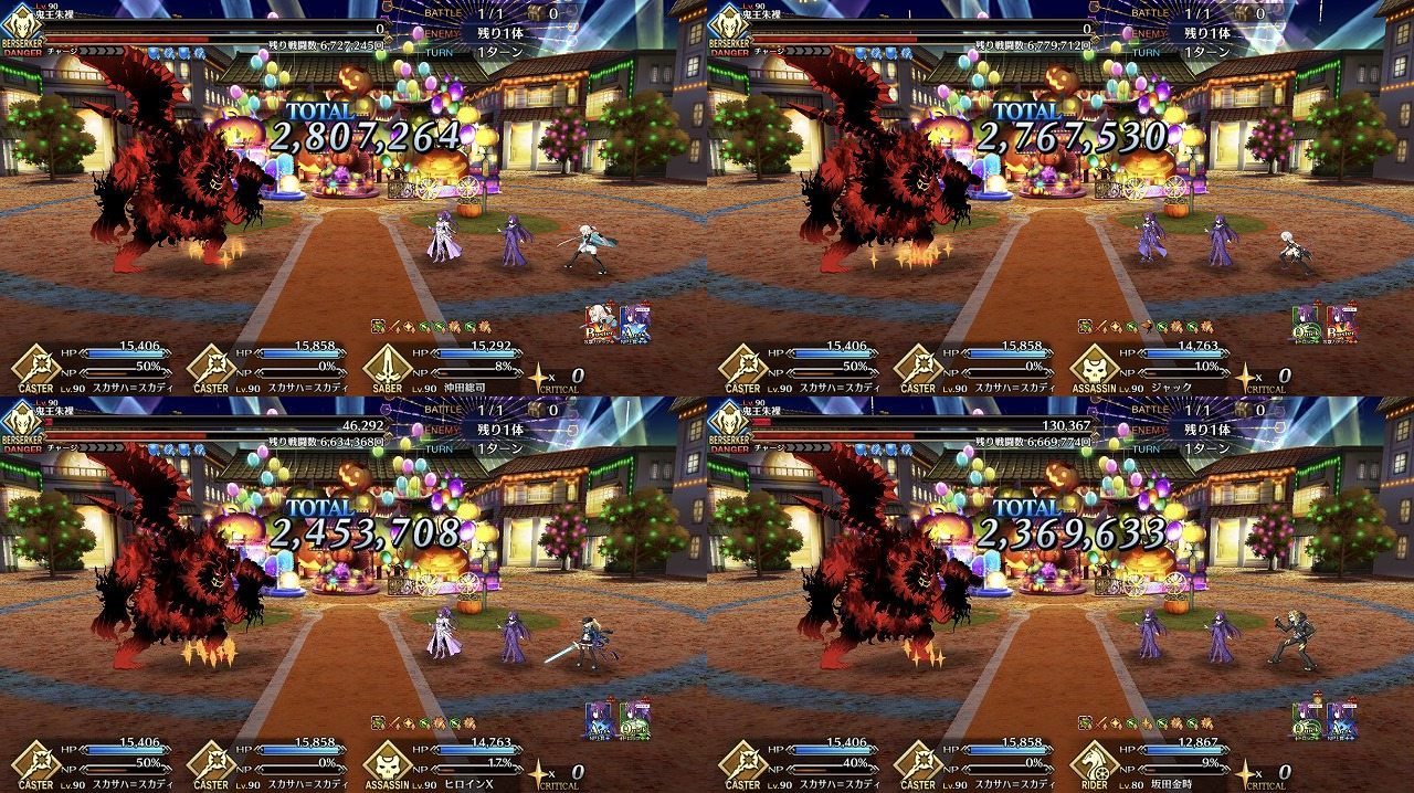 ・撃退戦は自軍のQ鯖の火力見ていくのに丁度良かったので色んなキャラで実験。宝具レベルはヒロインXだけ3で他は5。