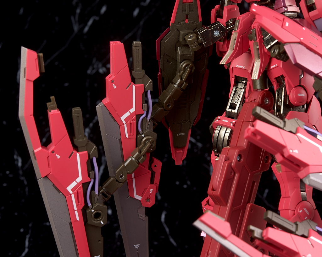 GNブロードブレイドの連結。アストレアF本体の交換用リアスカートと今回付属のジョイントを使って複数のブレイドを装備。