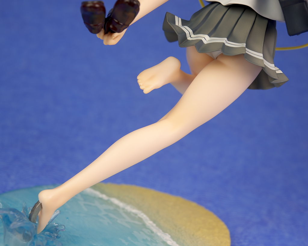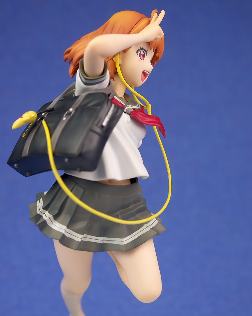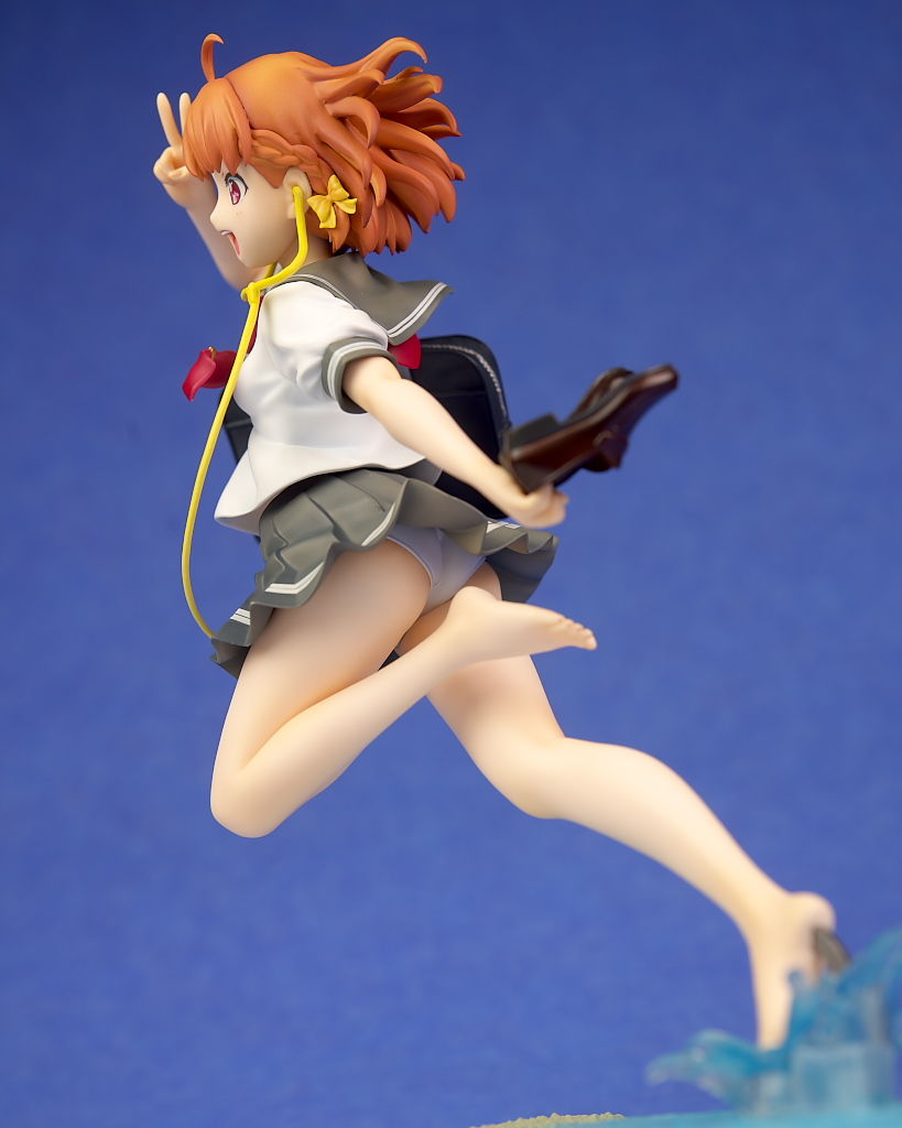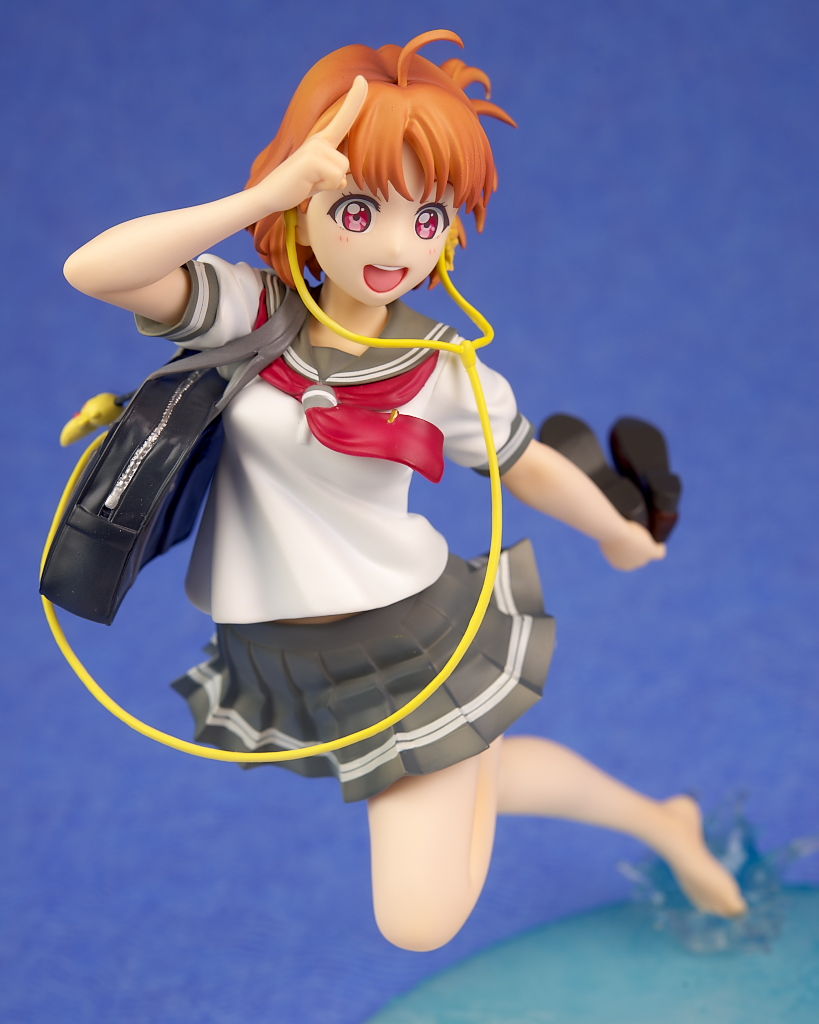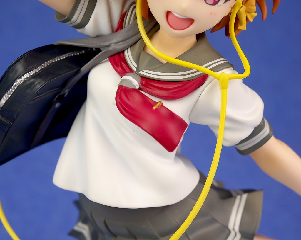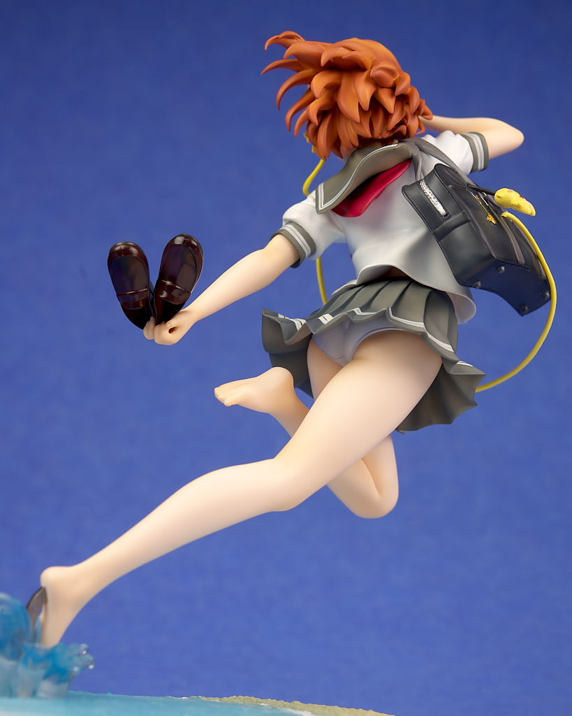 浜辺で跳ねてるという癖のあるポーズですが違和感なく立体化されており靴や鞄、イヤホンなど小物もイラスト通り再現。