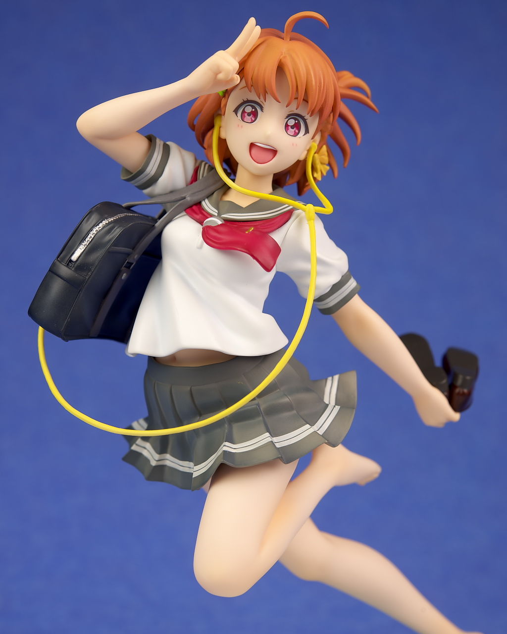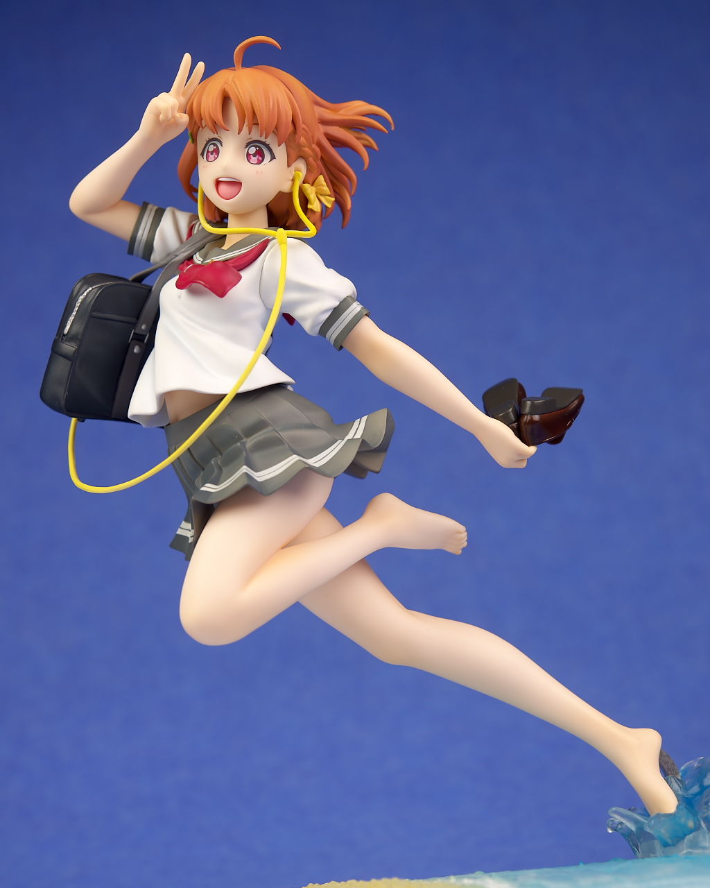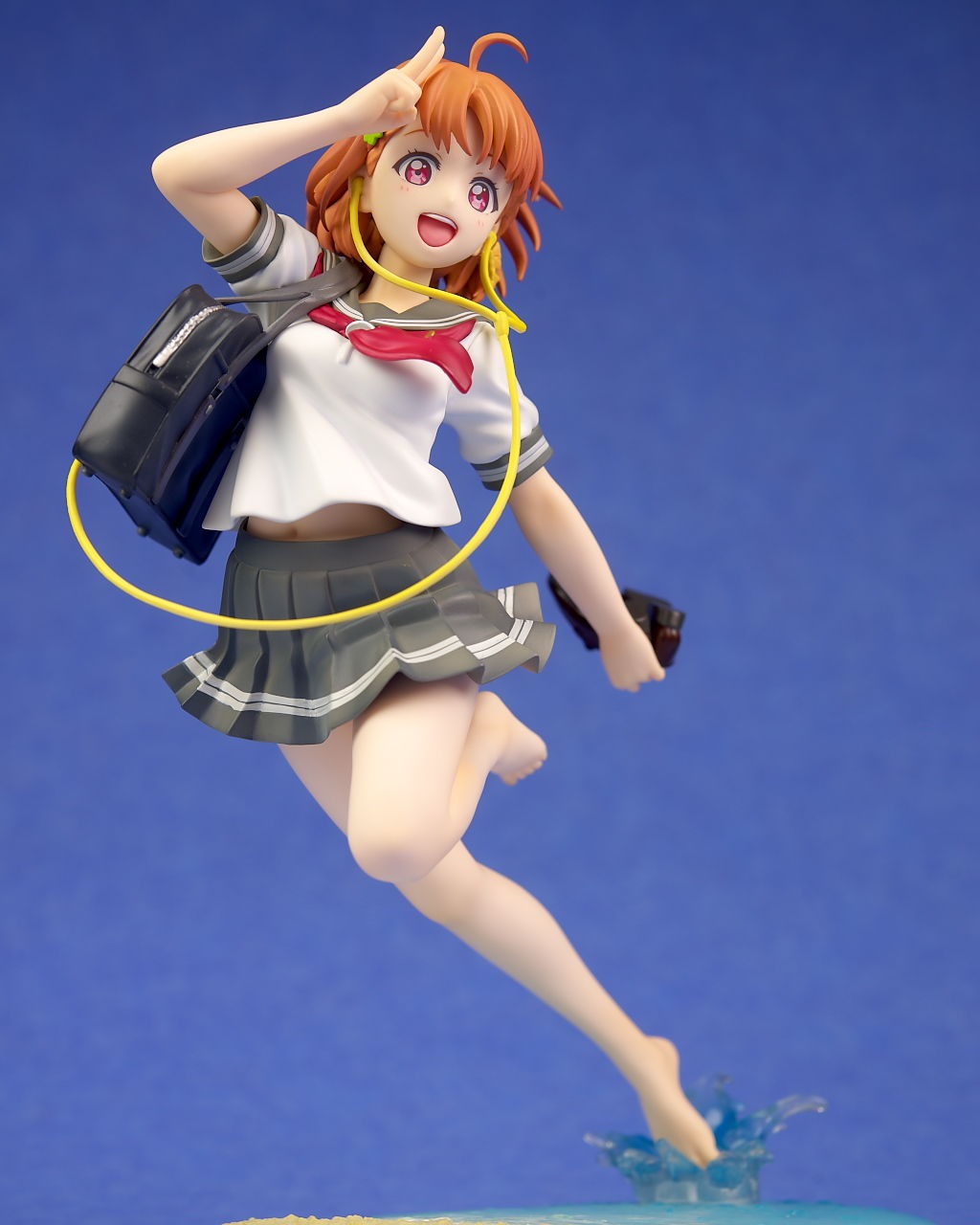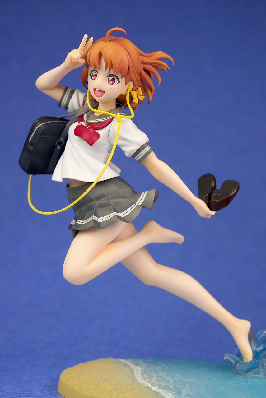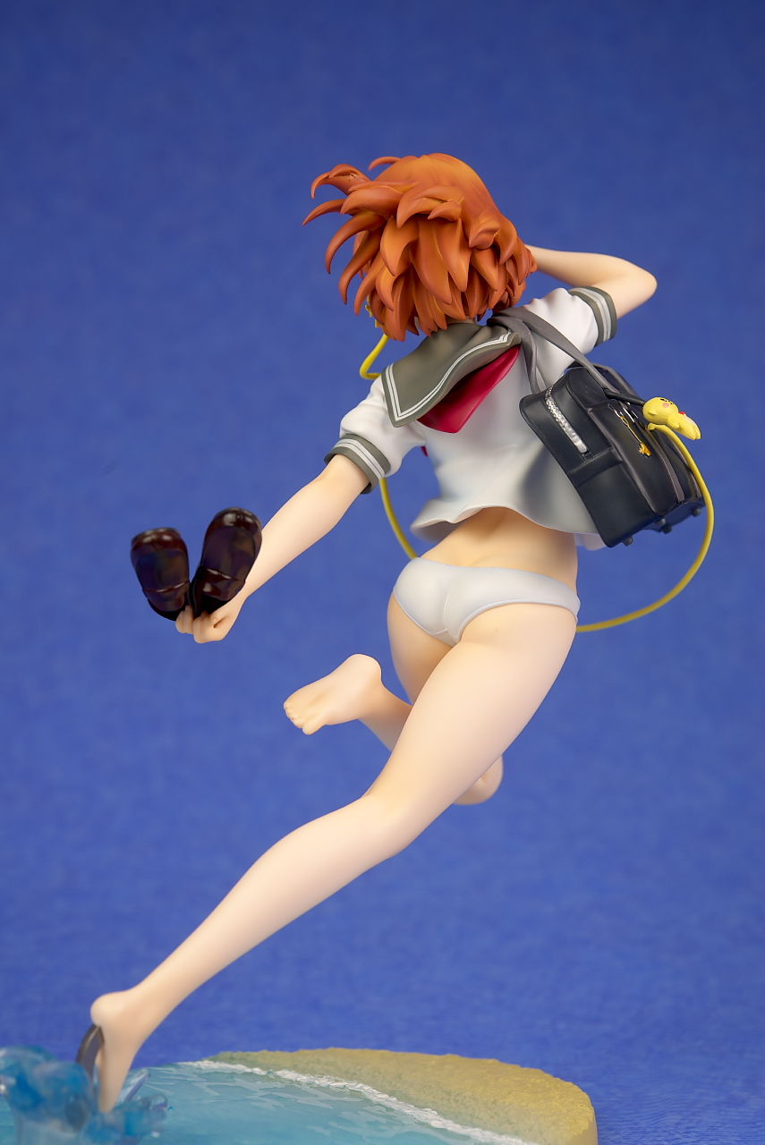 浜辺で跳ねてるという癖のあるポーズですが違和感なく立体化されており靴や鞄、イヤホンなど小物もイラスト通り再現。