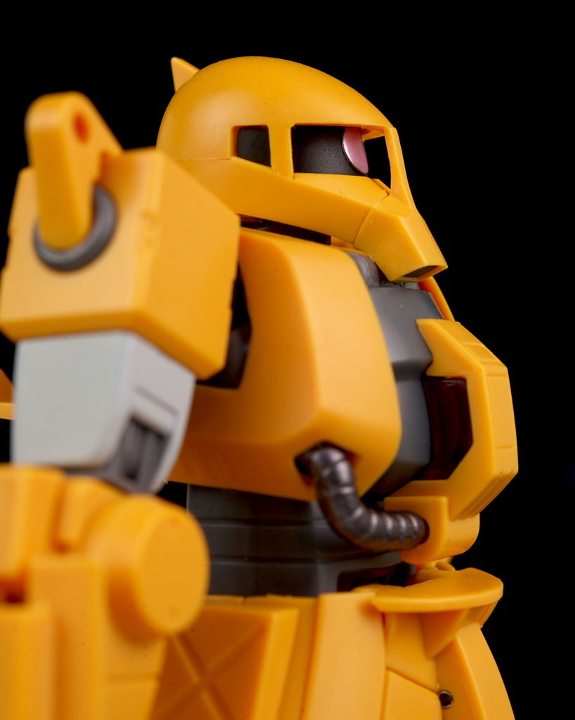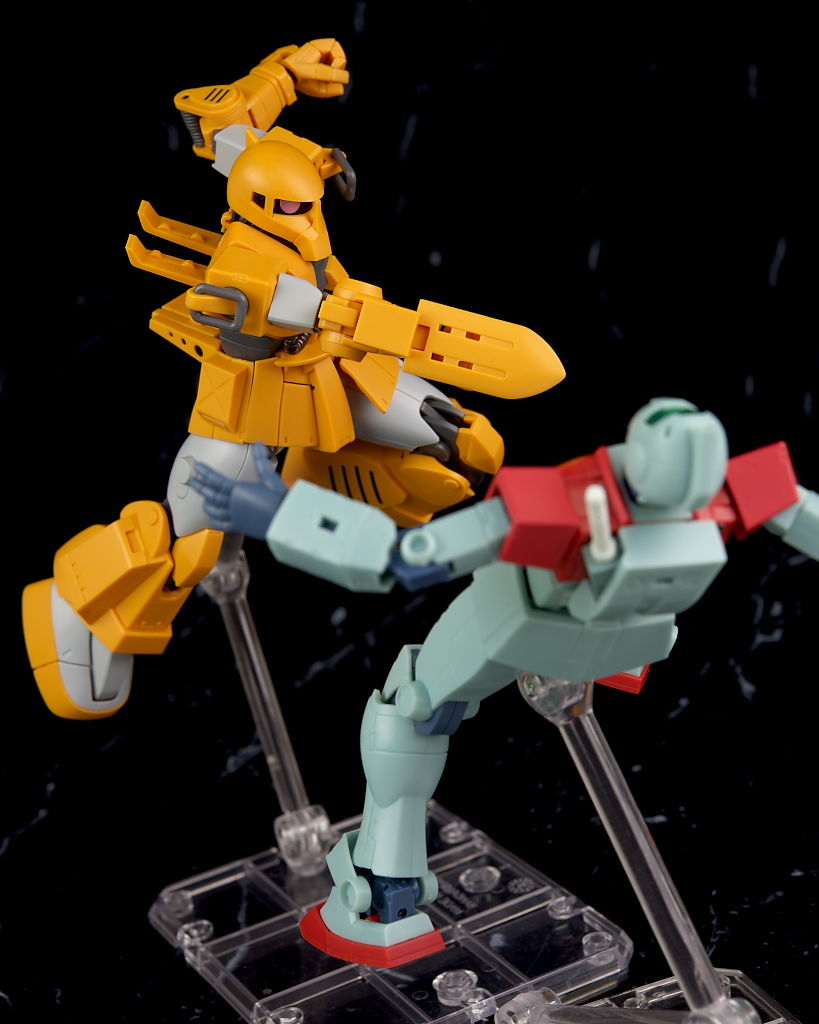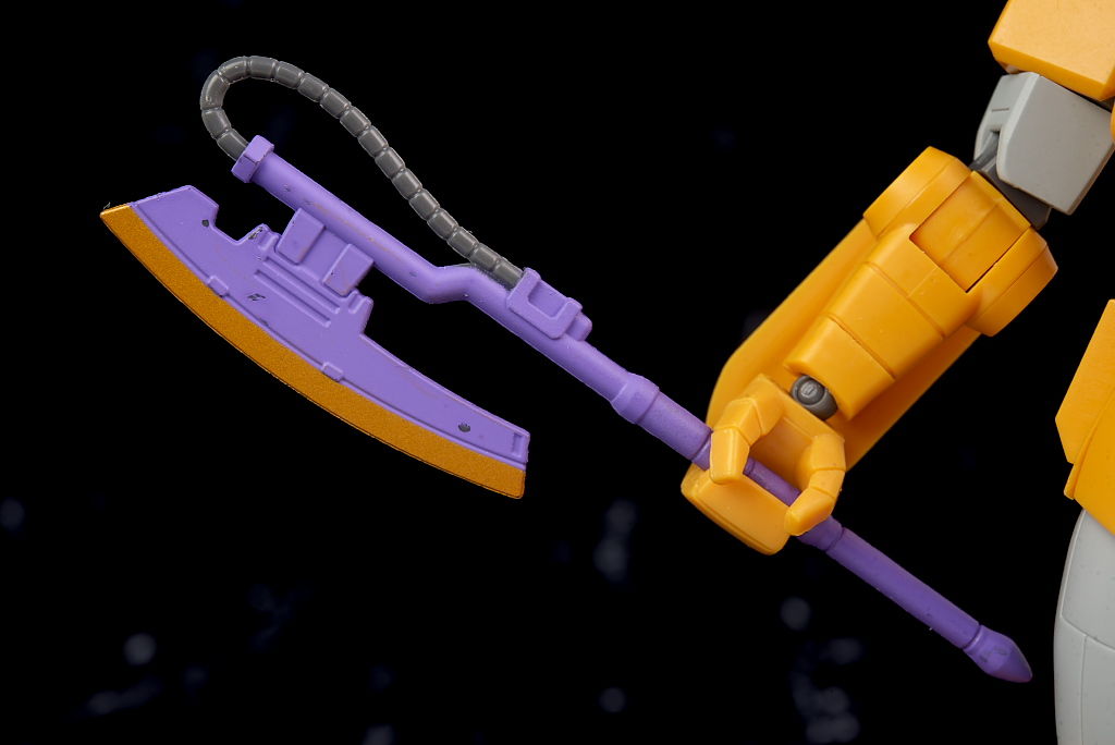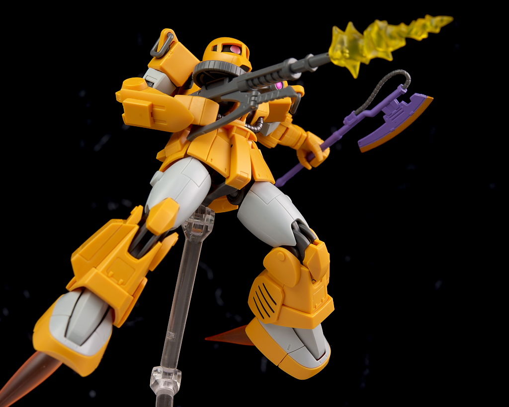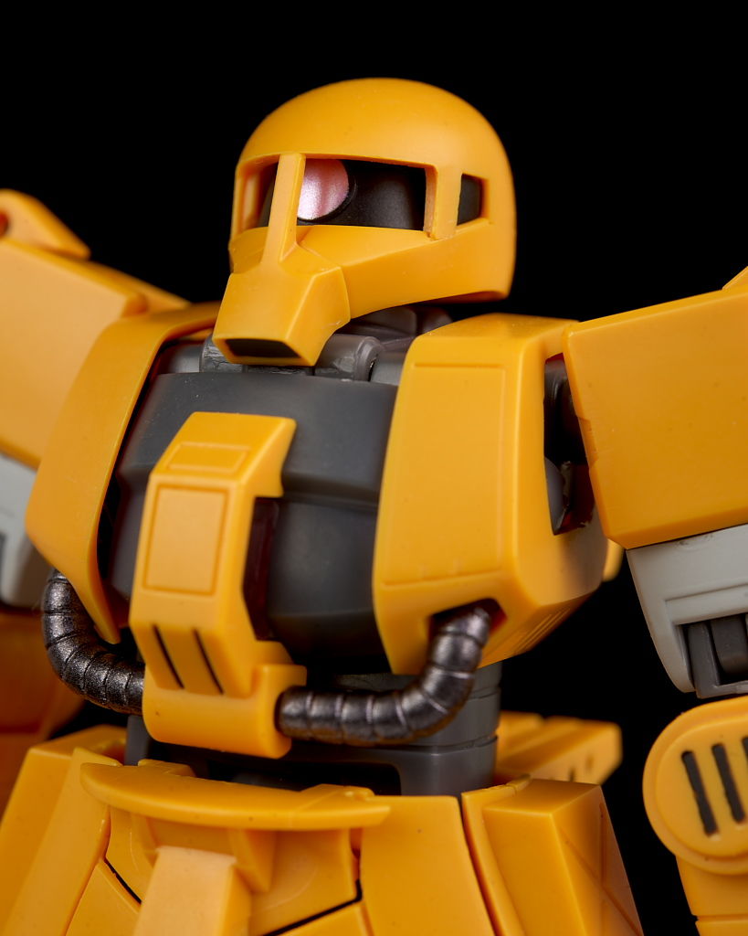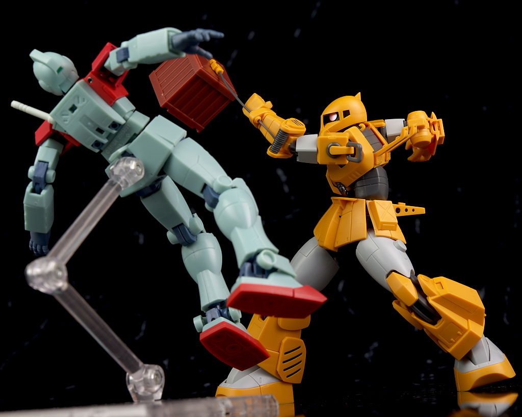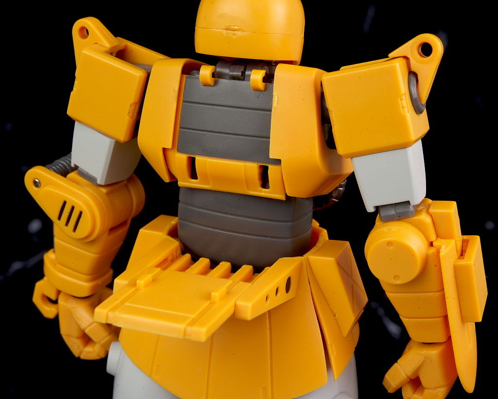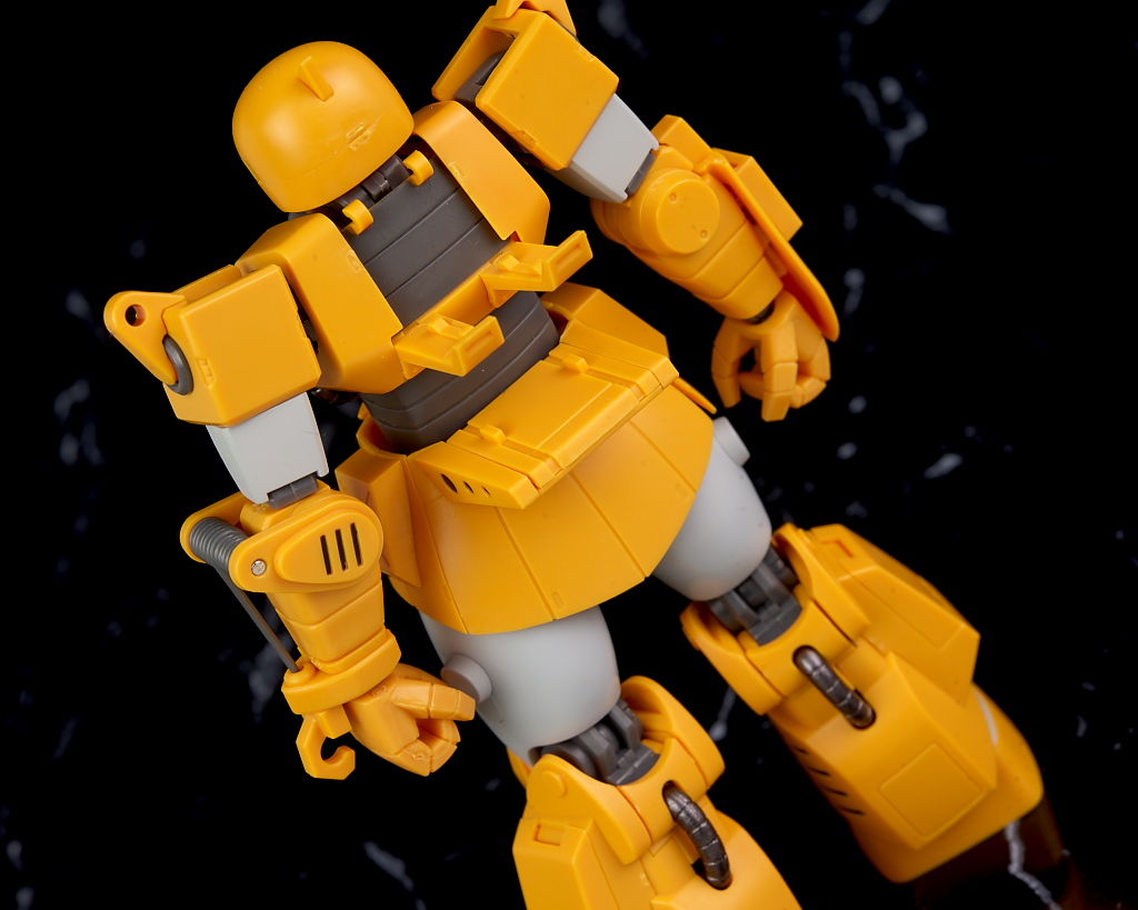 旧ザクをベースに作業を目的として改造されたMSだそうで、武器類は一切なく右腕にはショベル、左腕にはウィンチを装備し、カラーリングも重機のようで独特な趣のある見た目になってました。