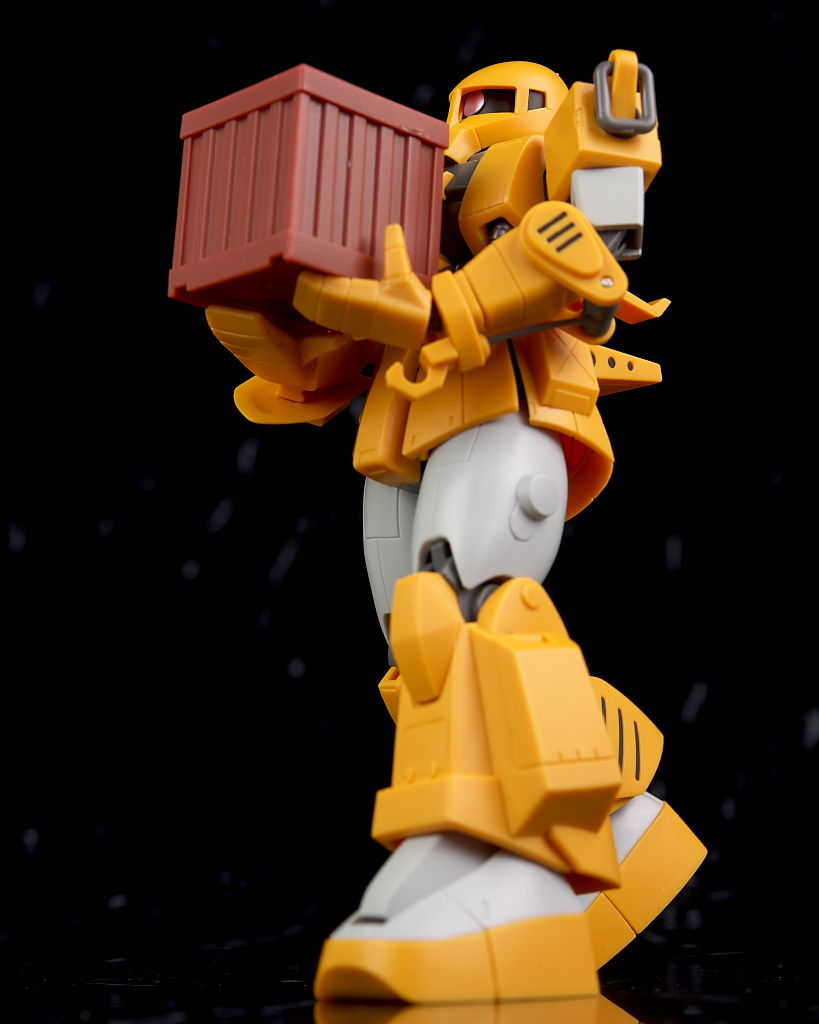 全身。旧ザクをベースに作業用として改造したMS。腕にはウインチやショベルを装備し色も重機のような黄色メインに。