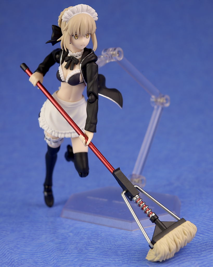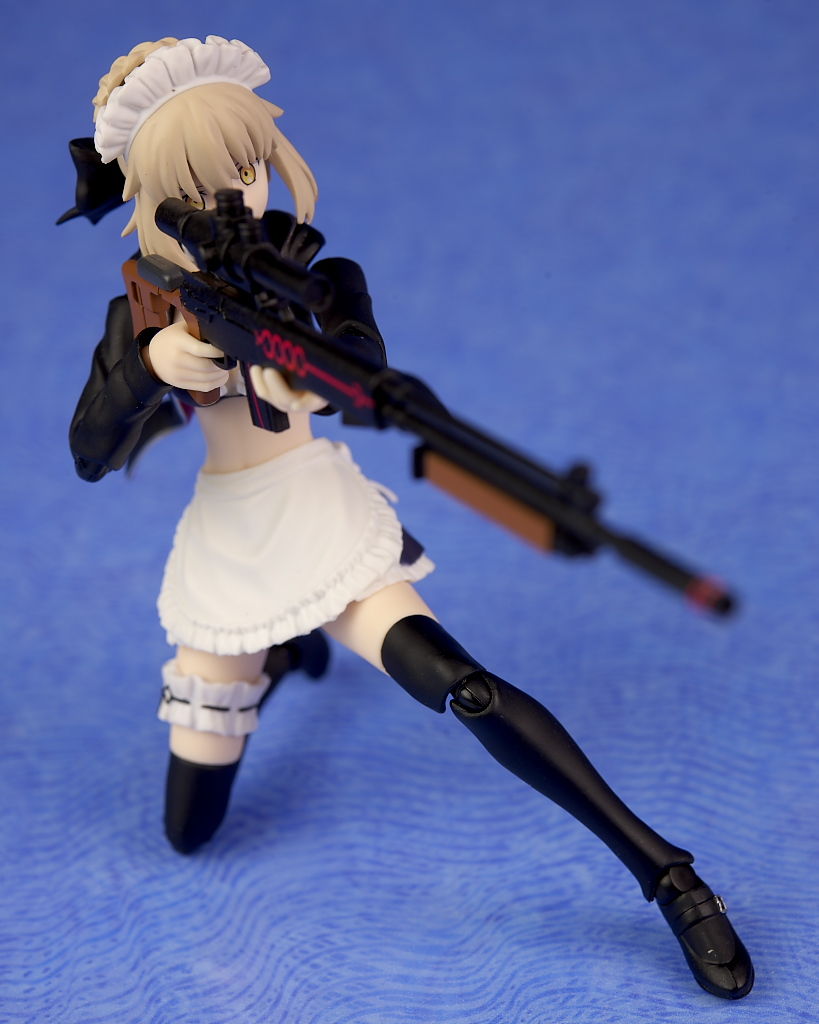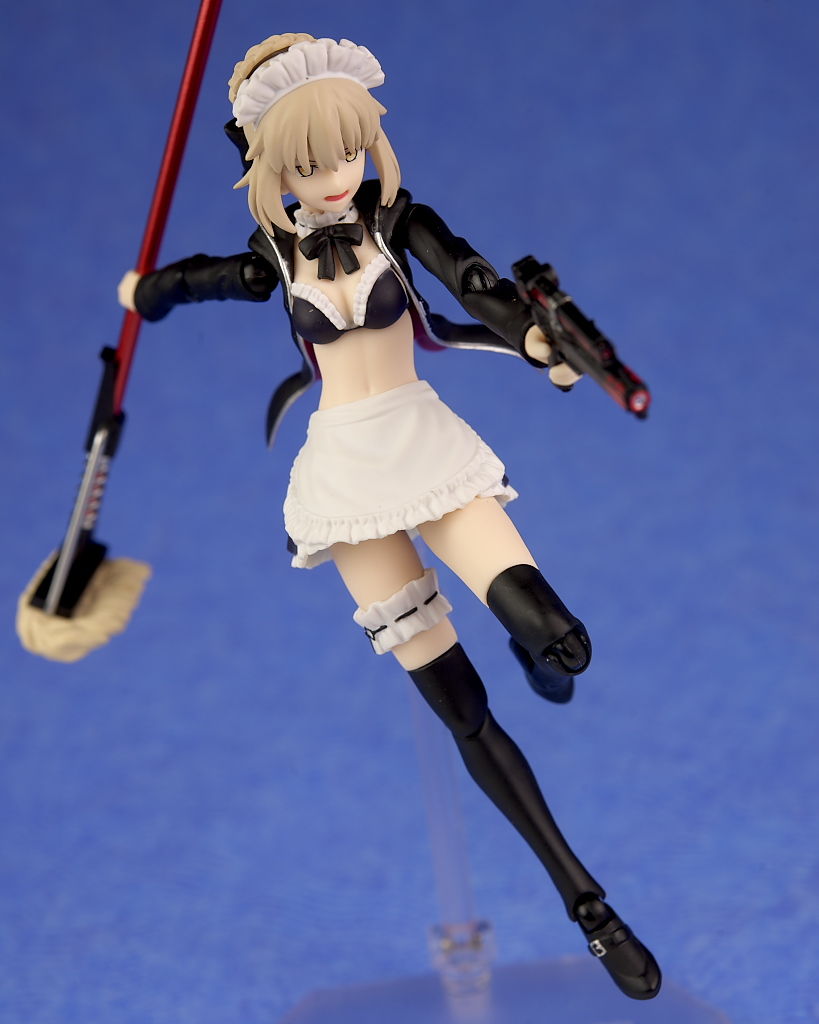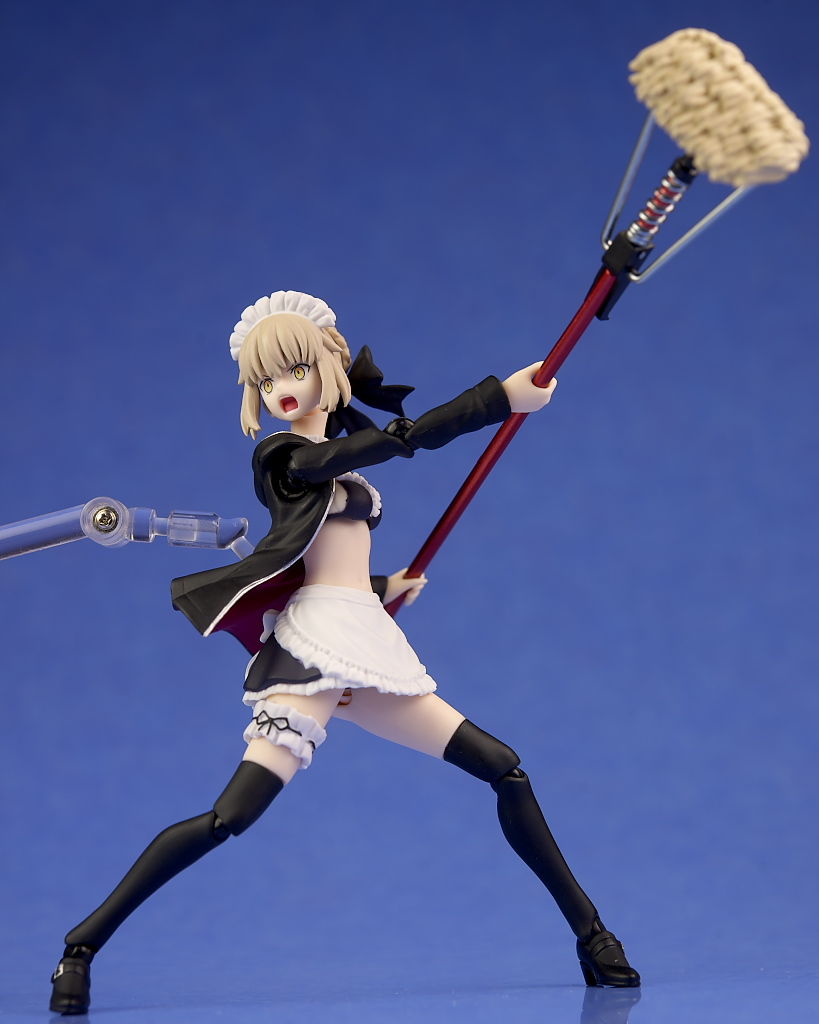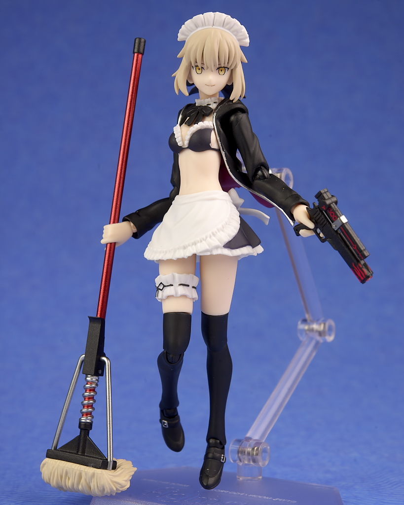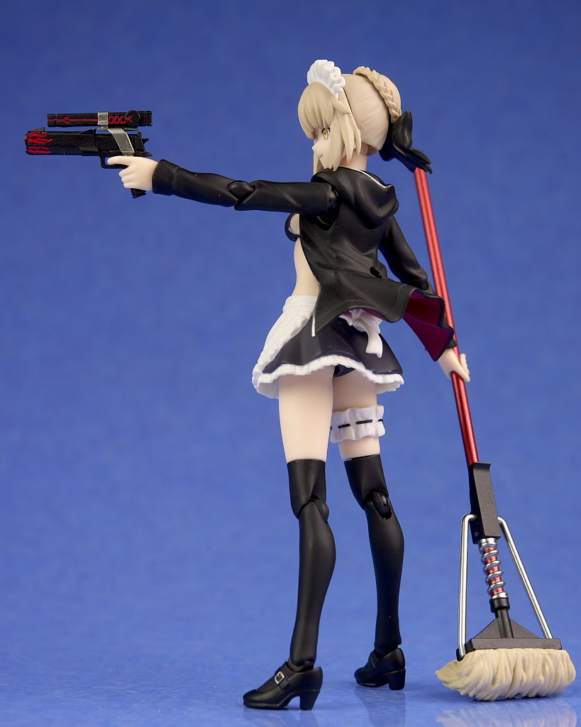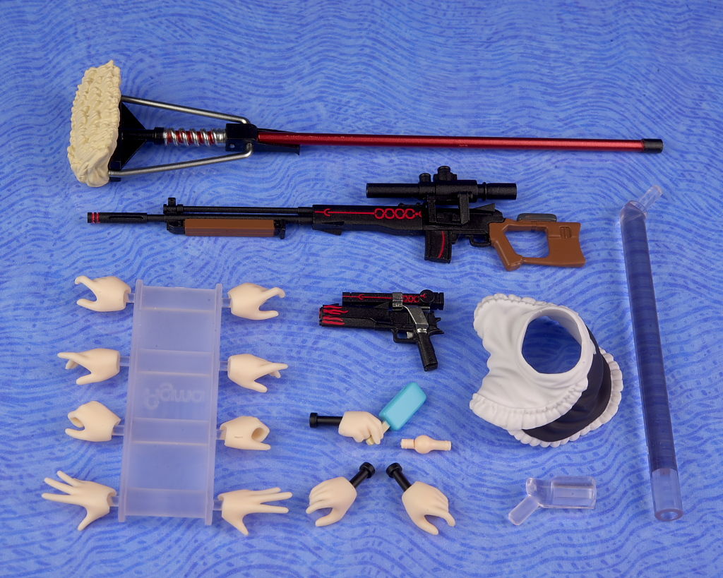 衣装のフリルなどメイド特有のデザインもきっちり造形されており、ハンドガンやライフル、モップなどの各武器も精密に再現され、キュイラッシェ・ノワール搭乗用のスカートも付くなど充実した内容になってました。