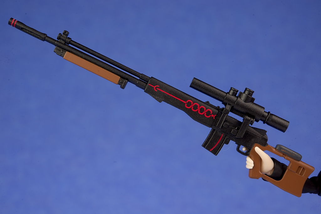 ライフルも両手でしっかり構えることが可能。スタンド穴は上着の後ろにあり穴が浅いのでちょっと不安定でした。