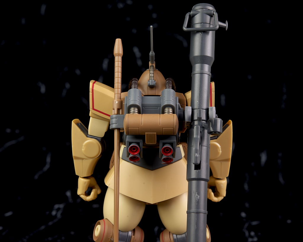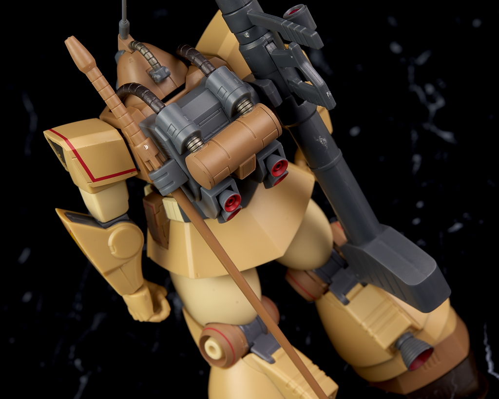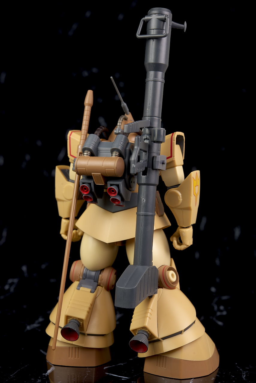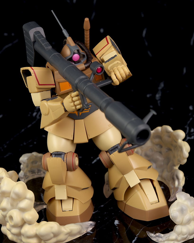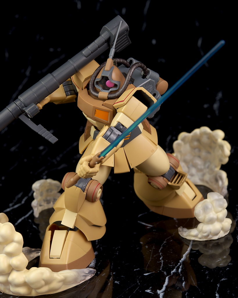 独特な頭部デザインや熱帯・砂漠専用MSらしいサンドカラーが違和感なく再現されており、各部のマーキングなども精密、エフェクトも流用ですが色など上手く砂塵っぽくなっており、満足度の高い内容になってました。