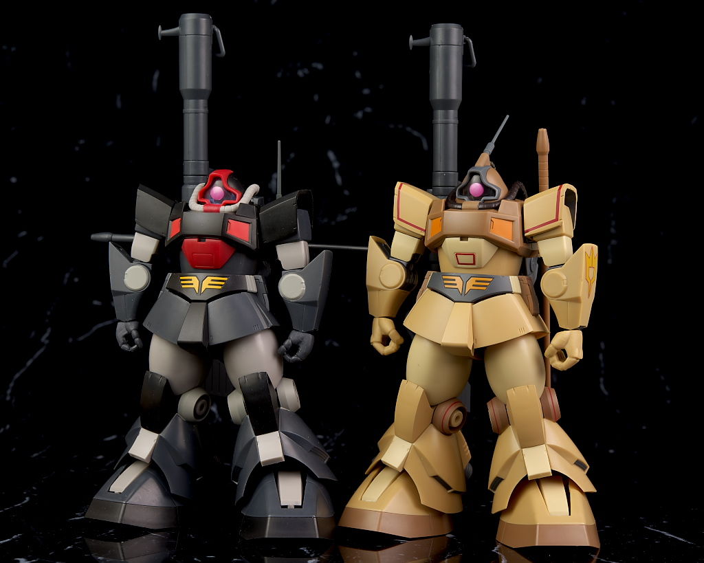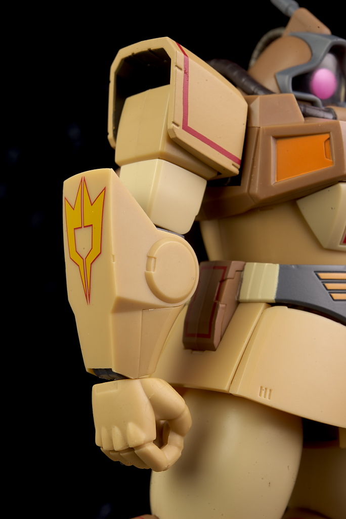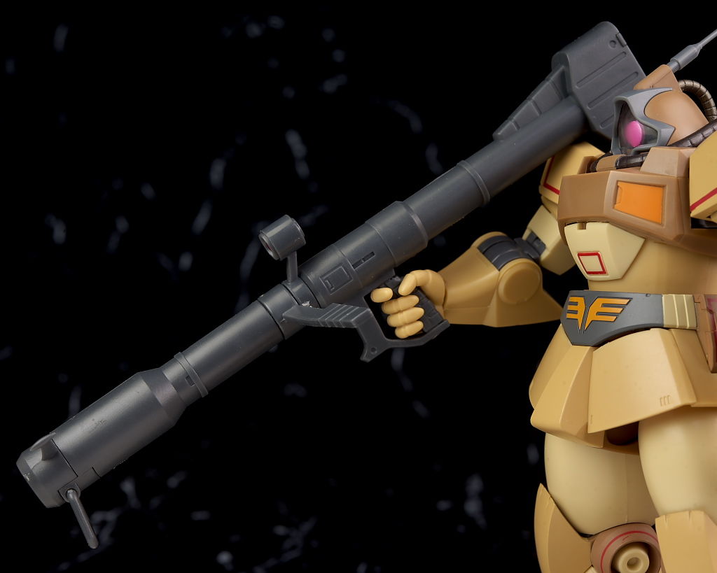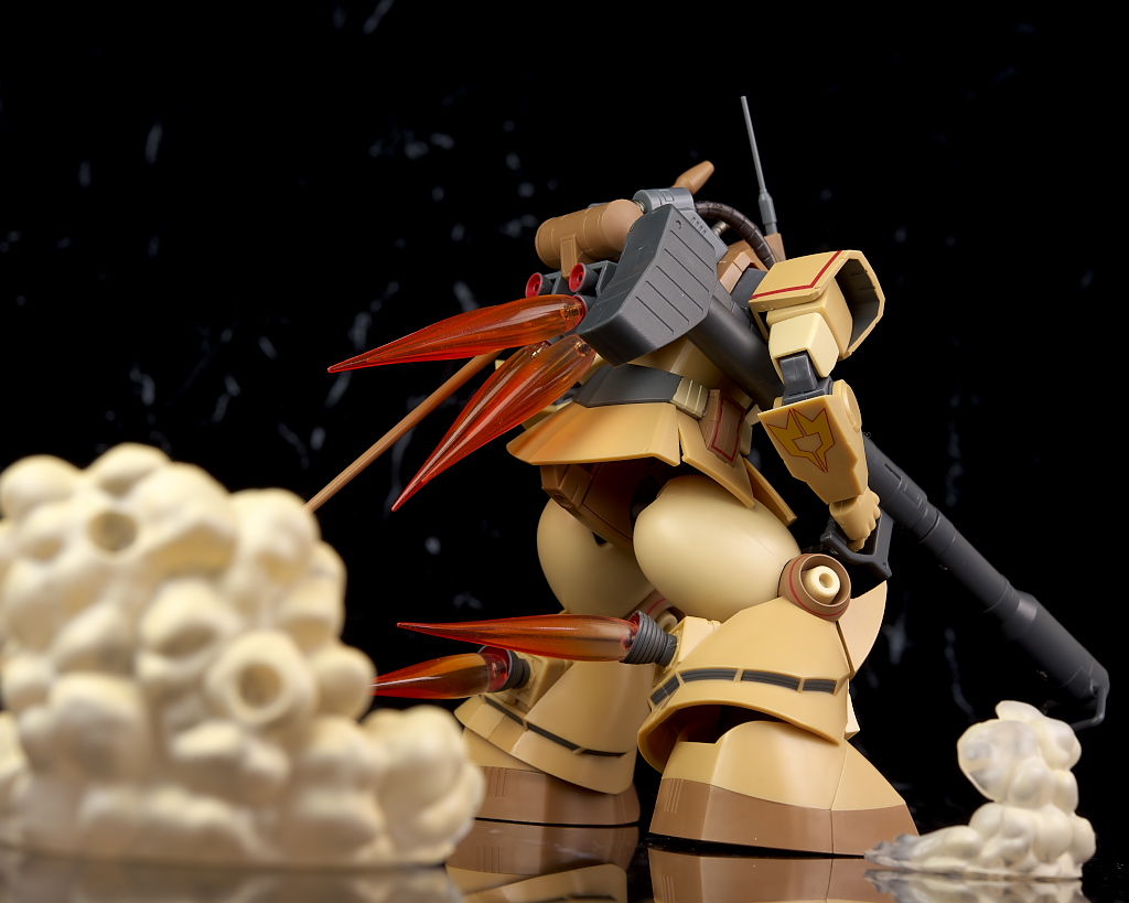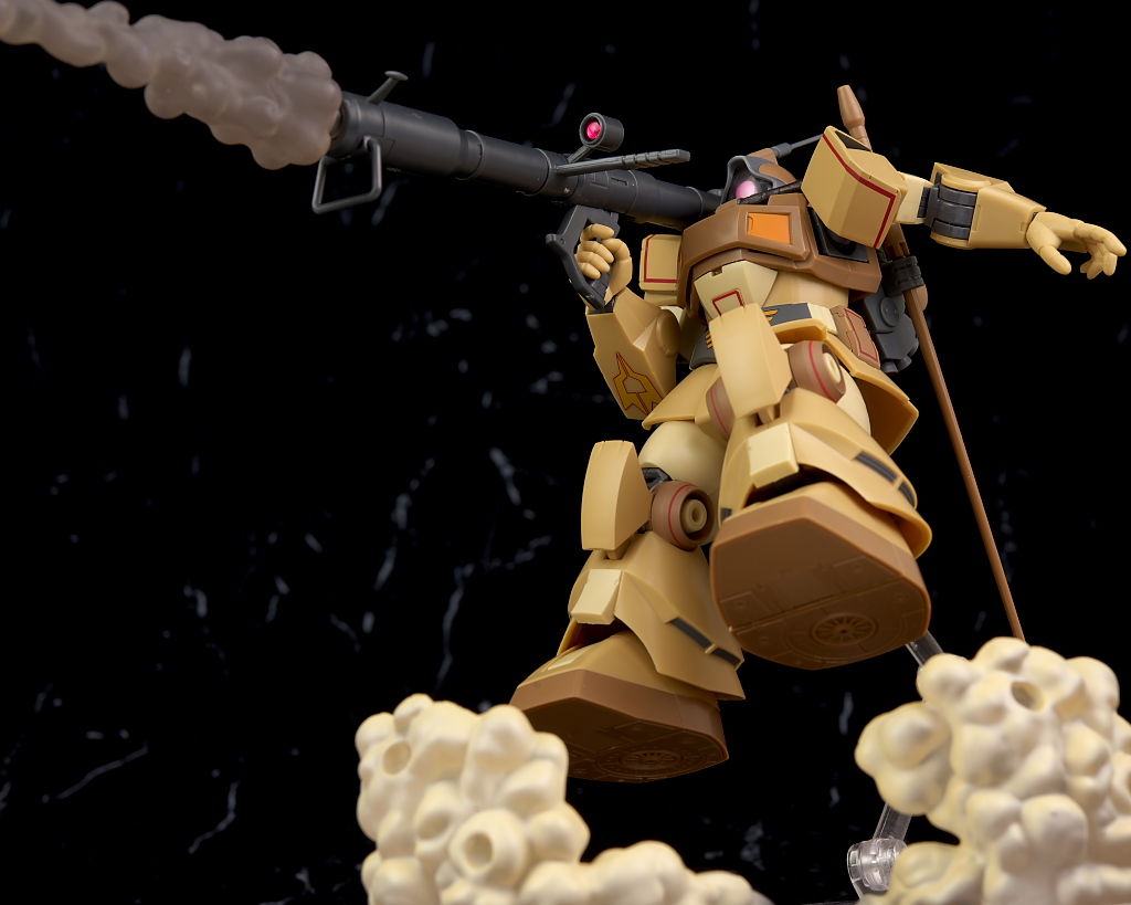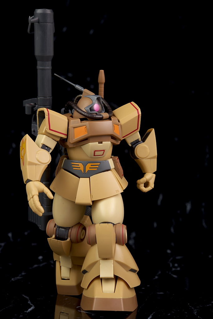 独特な頭部デザインや熱帯・砂漠専用MSらしいサンドカラーが違和感なく再現されており、各部のマーキングなども精密、エフェクトも流用ですが色など上手く砂塵っぽくなっており、満足度の高い内容になってました。