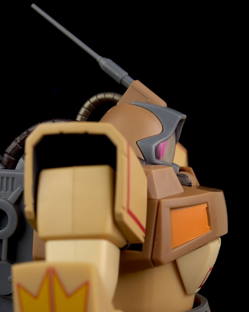 顔。プロトタイプドムと違ってパイプはランドセルに繋がっており、また頭頂部にアンテナが付いてるのが特徴。