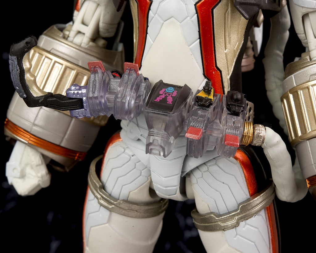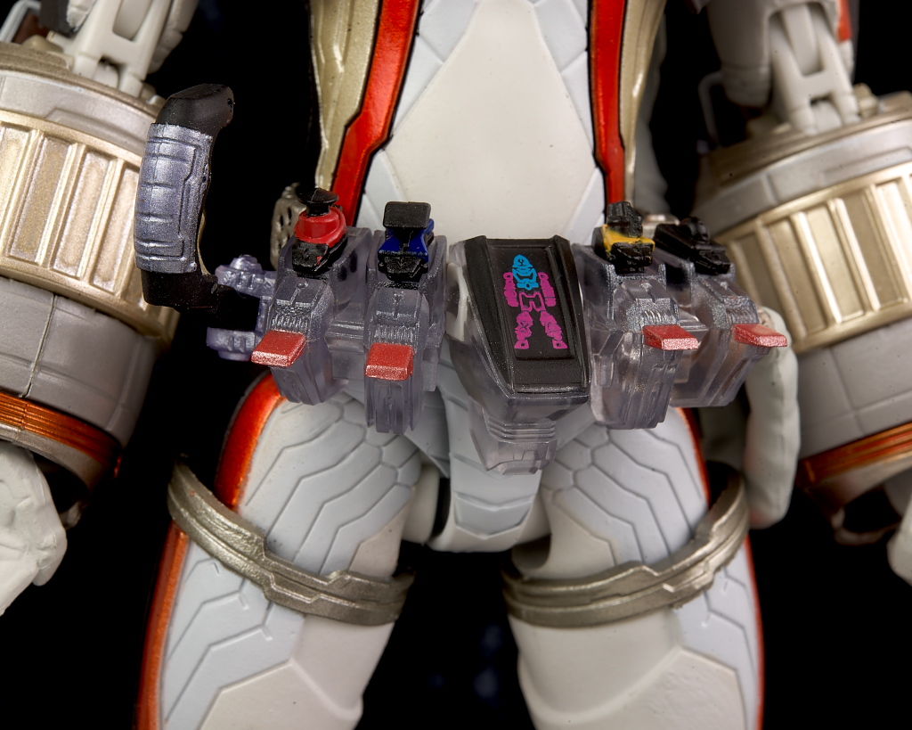 腰回り。ベルトはサイズが大きいこともあり造形塗装共にかなり精密でした。スイッチはそれぞれ取り外しも可。