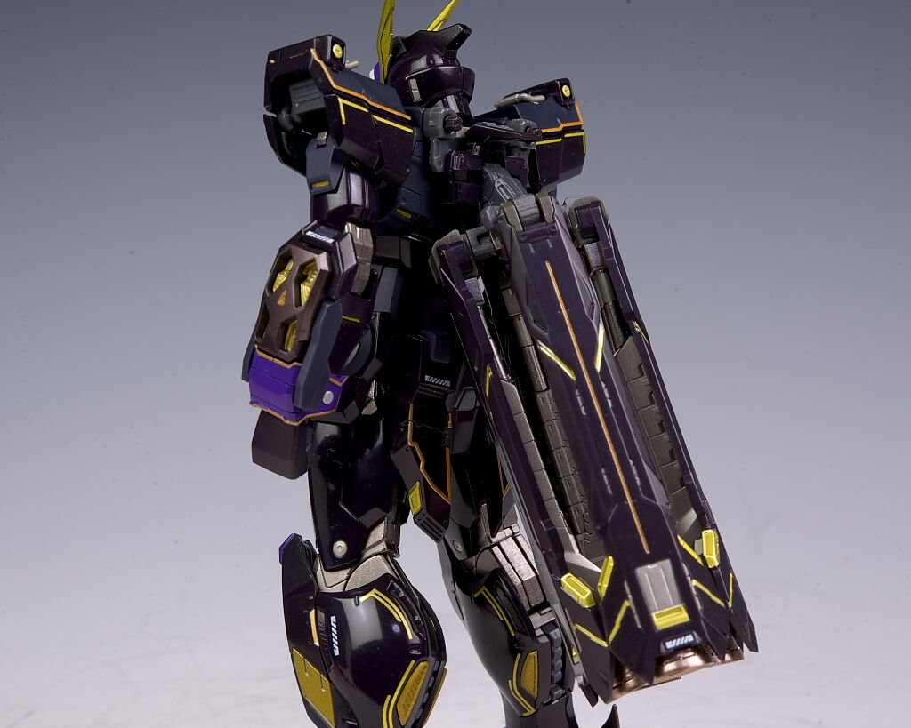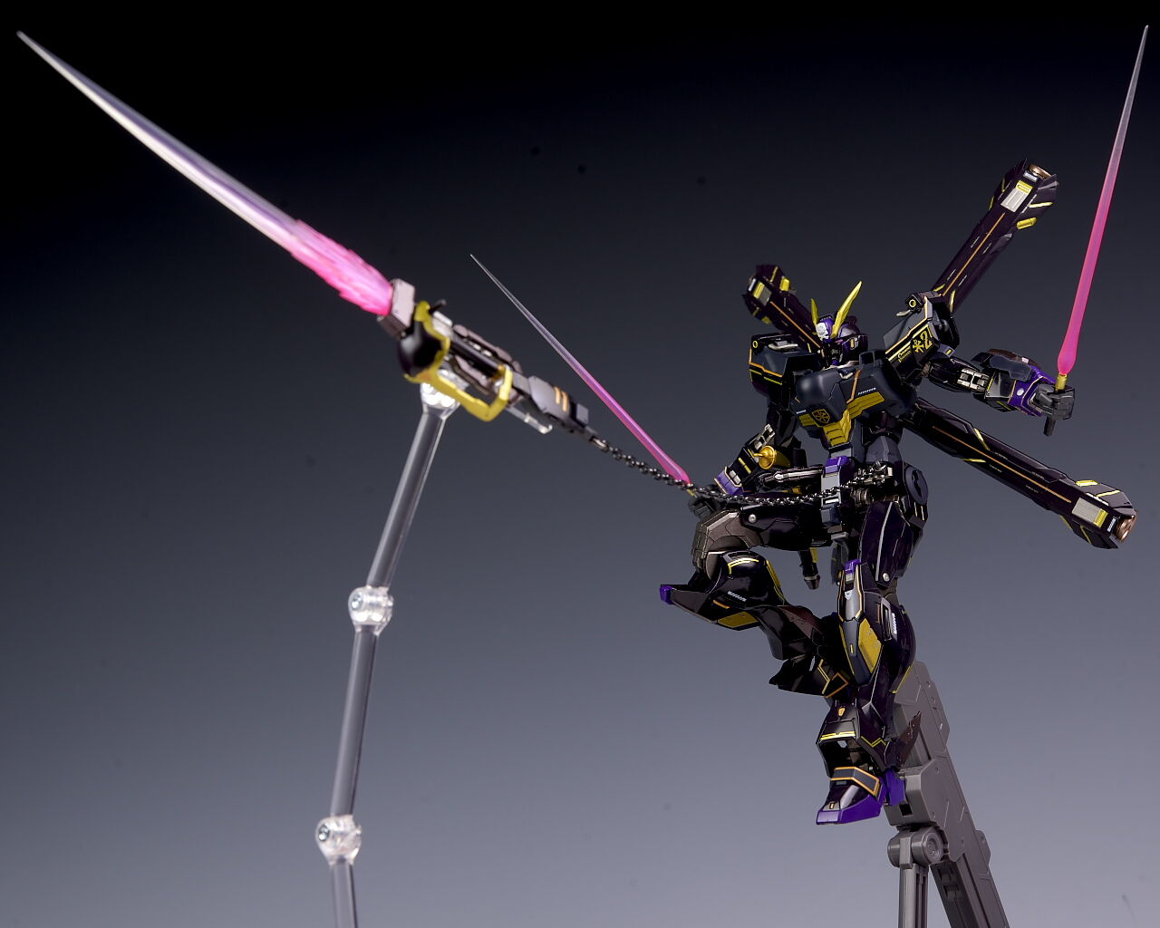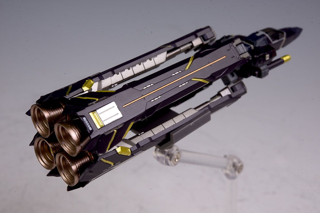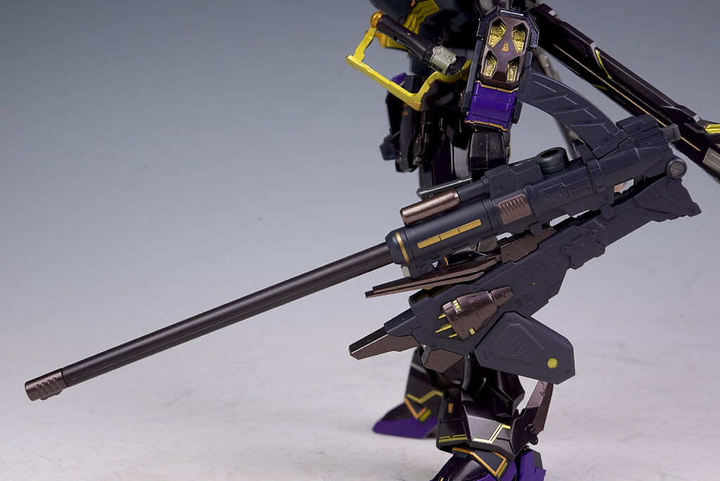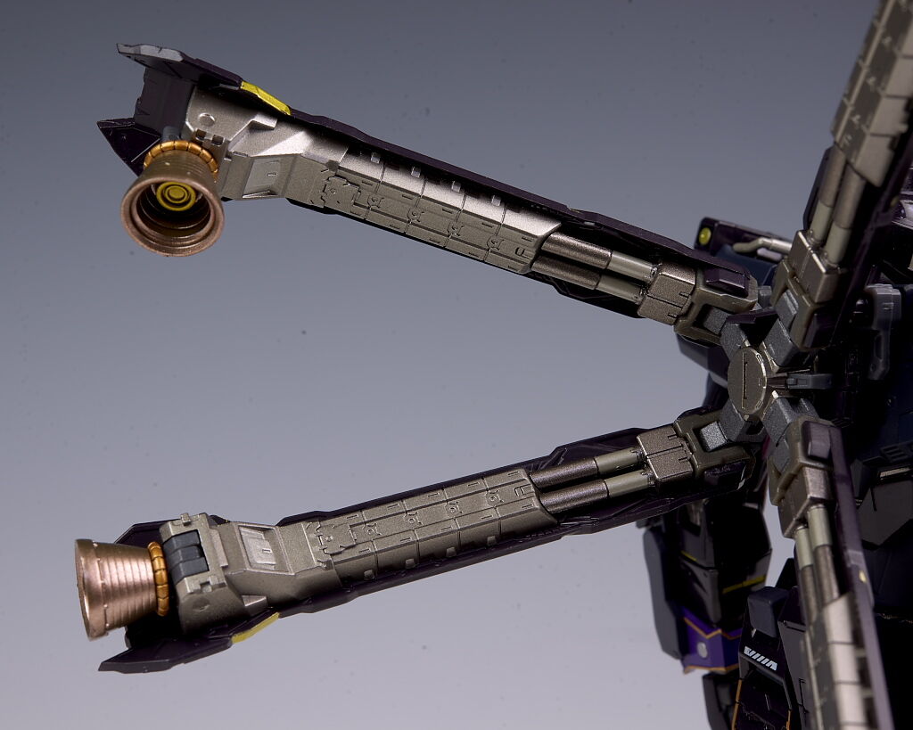 新規造形のショットランサーやバスターランチャーは本体同様メタルビルドらしいアレンジになっておりディテールなど精密で見栄え良好、全体の黒カラーも色味や質感など理想的な仕上がりで非常に格好良く仕上がってました。