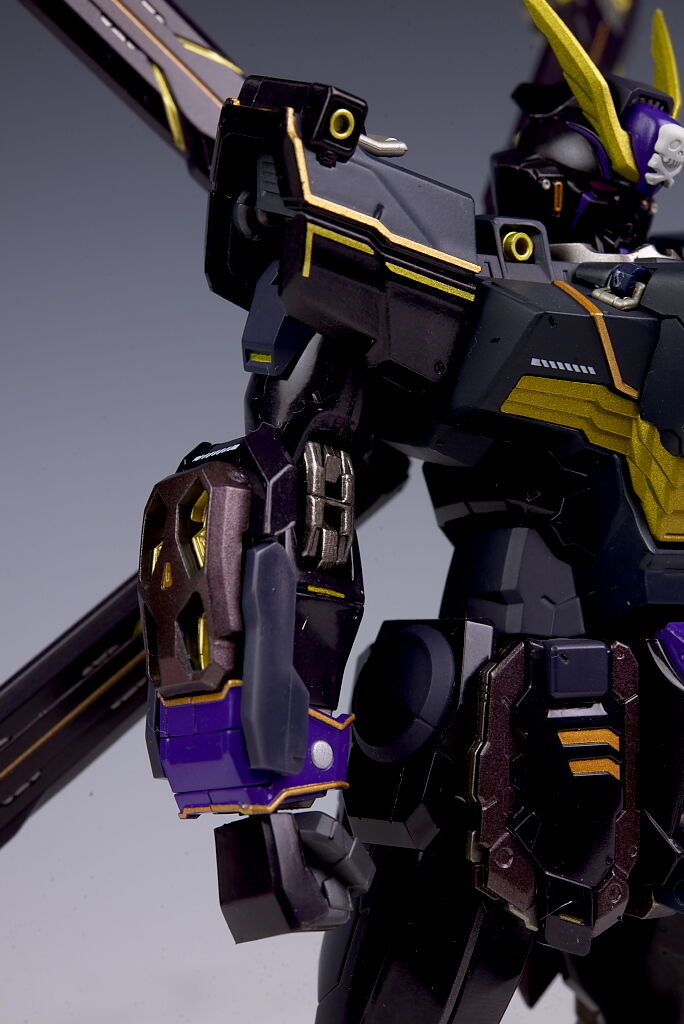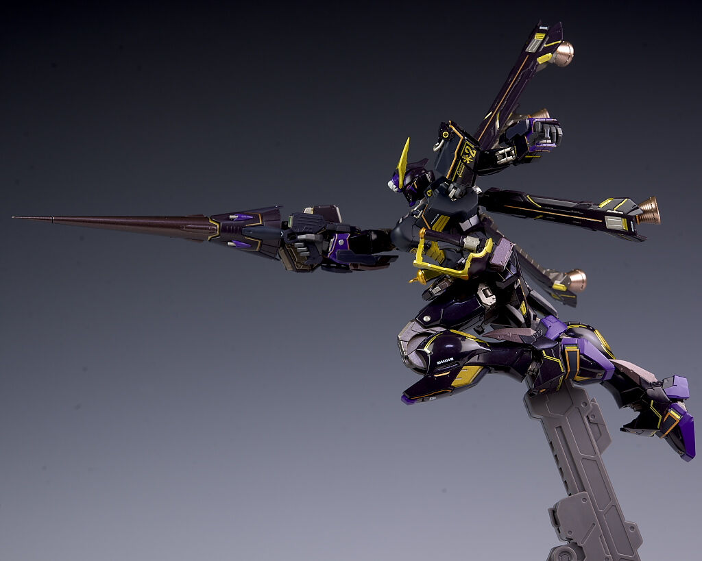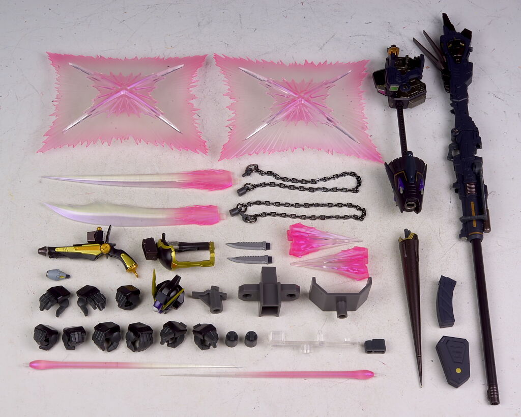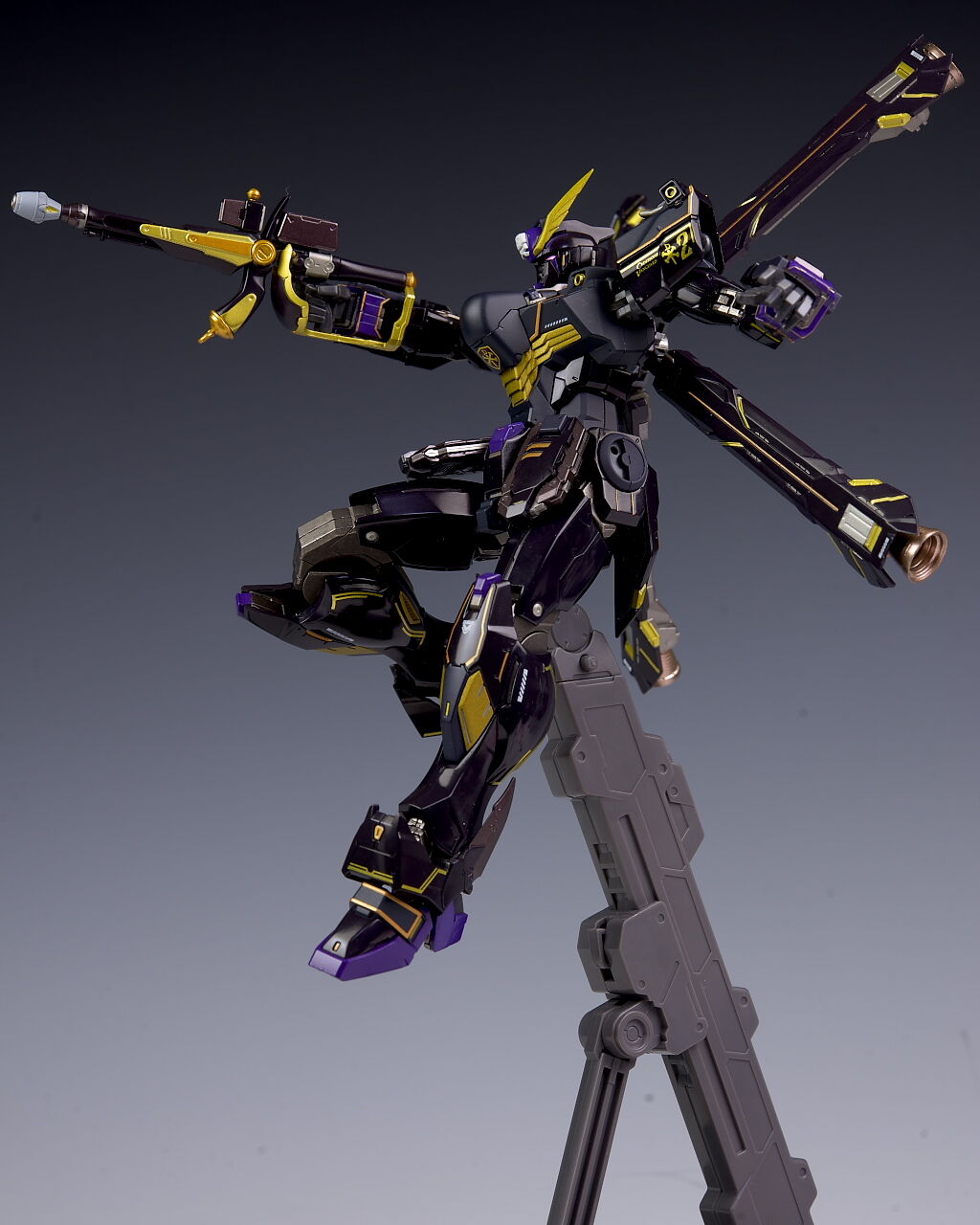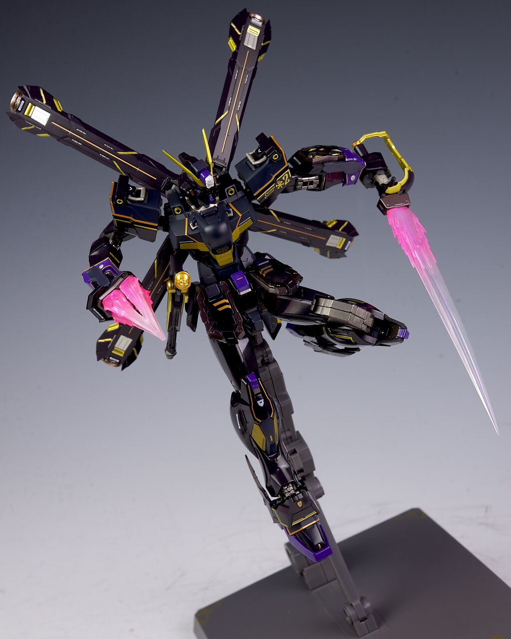 新規造形のショットランサーやバスターランチャーは本体同様メタルビルドらしいアレンジになっておりディテールなど精密で見栄え良好、全体の黒カラーも色味や質感など理想的な仕上がりで非常に格好良く仕上がってました。