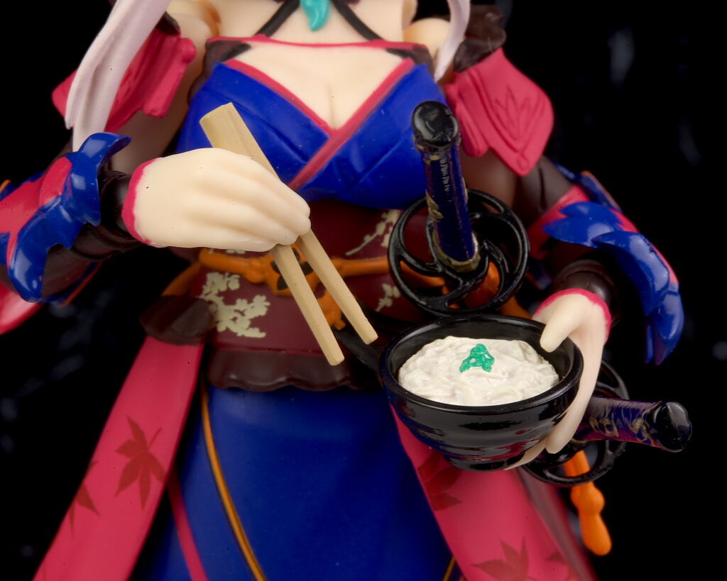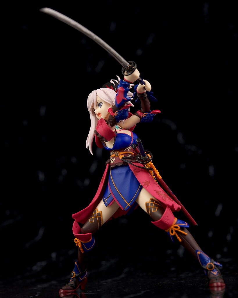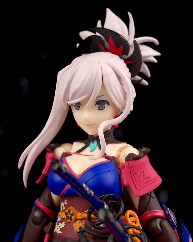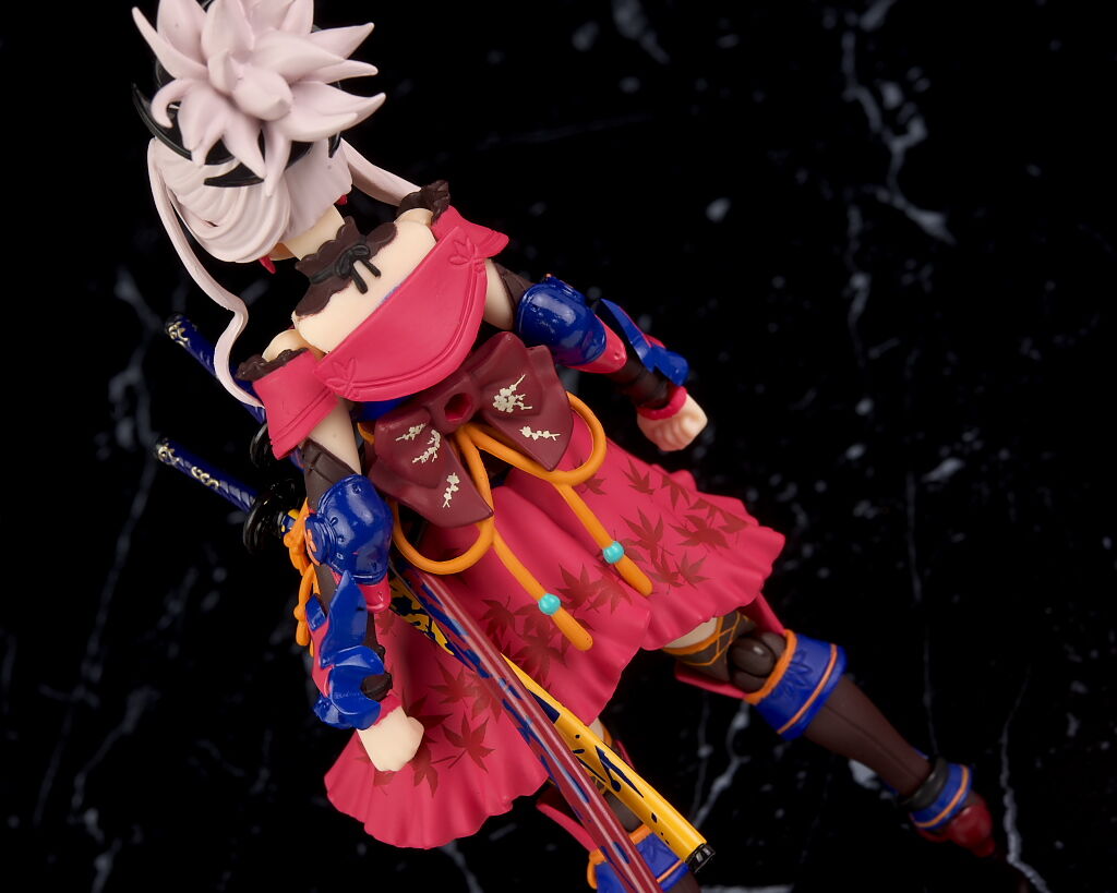 可動に関してもいつも通り軟質素材が上手く使われてるので、複雑な見た目のわりにどこも良好で、表情各種や刀、小物など内容も充実しており遊びの面でも不満は無かったです。