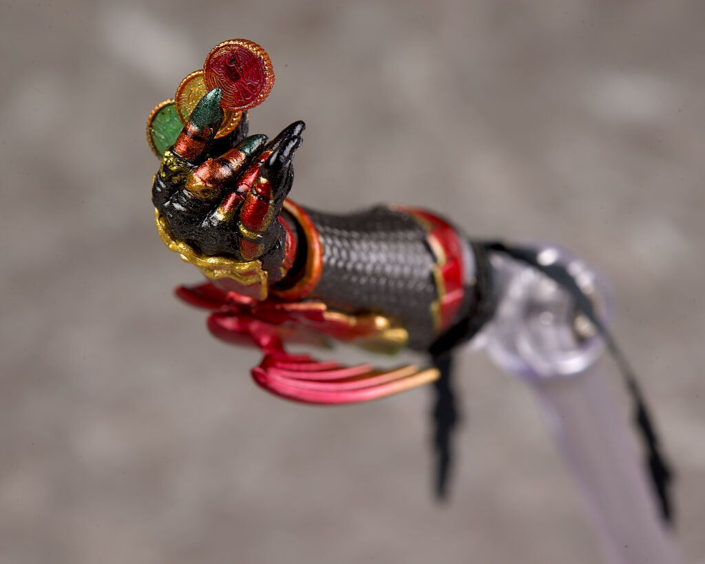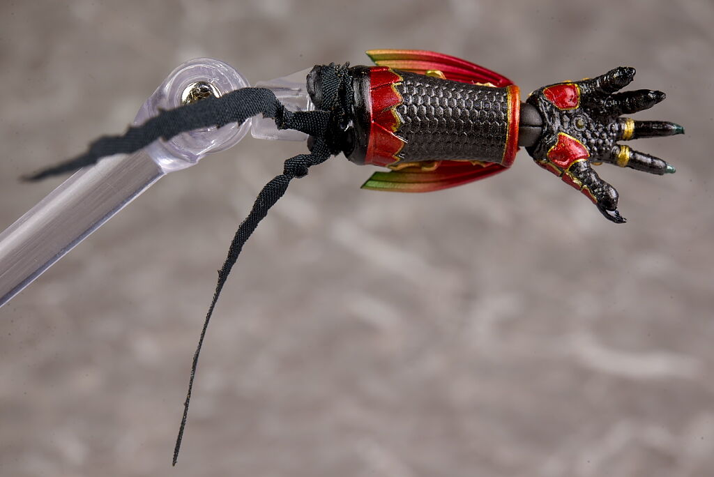 元々腕だけということもあり造形塗装などは以前より極端に進化してるようには見えなかったですが、各部のバランスが調整されより劇中に近い見た目になっており、紐も布素材になってるなどリアルさはアップしてました。