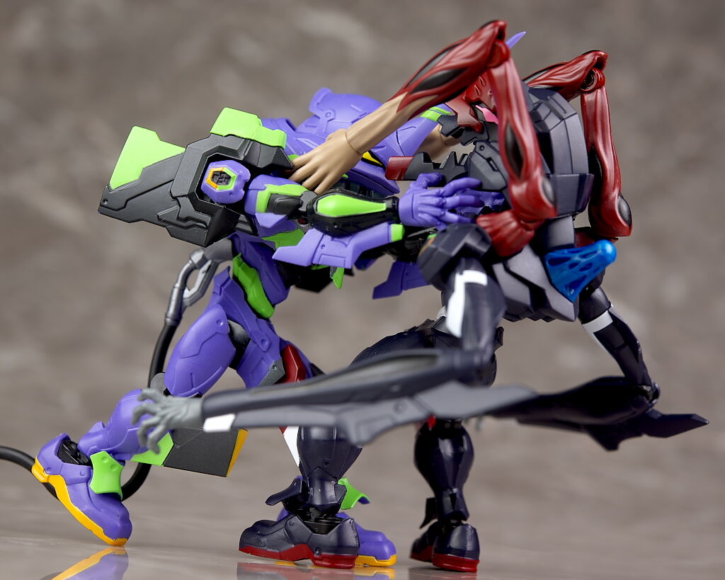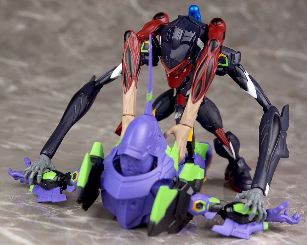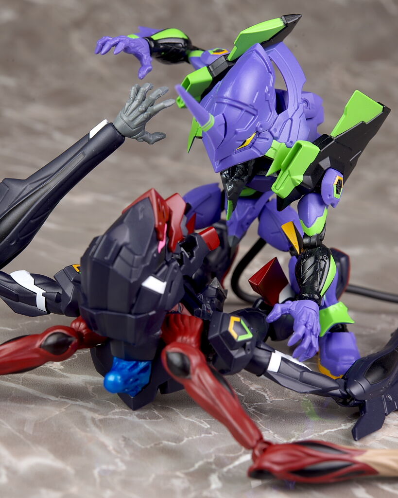 本体の作りは大体今までと同じで可動なども大きな差は無いですが、今回は第9の使徒も兼ねてるので劇中出てきた追加腕なども付いており、初号機との戦闘がほぼ再現出来るなど遊びの幅は広かったです。