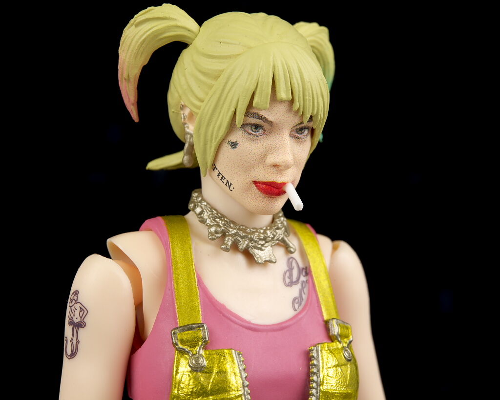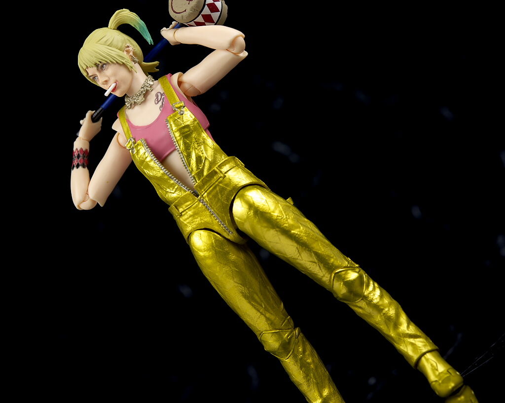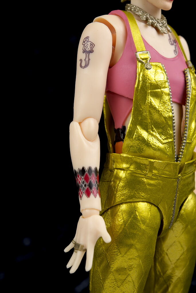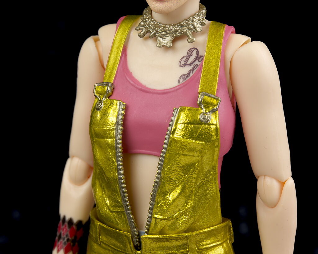 全身。髪型や衣装が異なるので造形は完全新規。オーバーオールはメタリック塗装でハーレイらしい派手な見た目に。