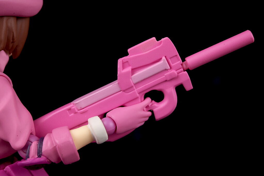 出来の方は顔や小柄な体型などアニメでのイメージ通りで衣装の造形塗装も良好、可動も良く愛銃P90も両手でしっかり構えることが出来るなど、見た目遊び共にほぼ完璧な内容でした。