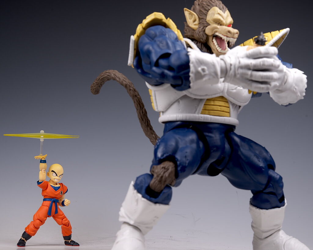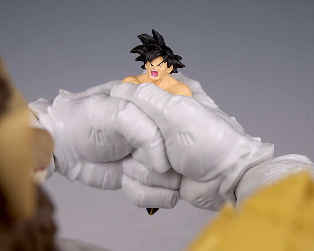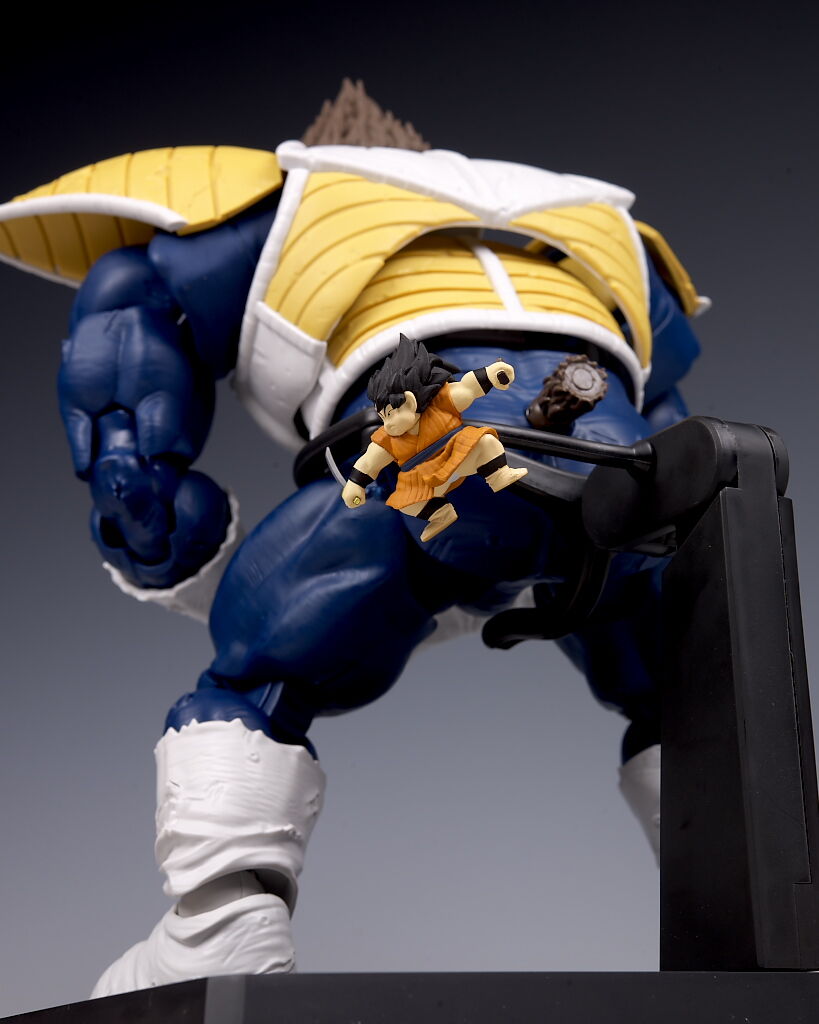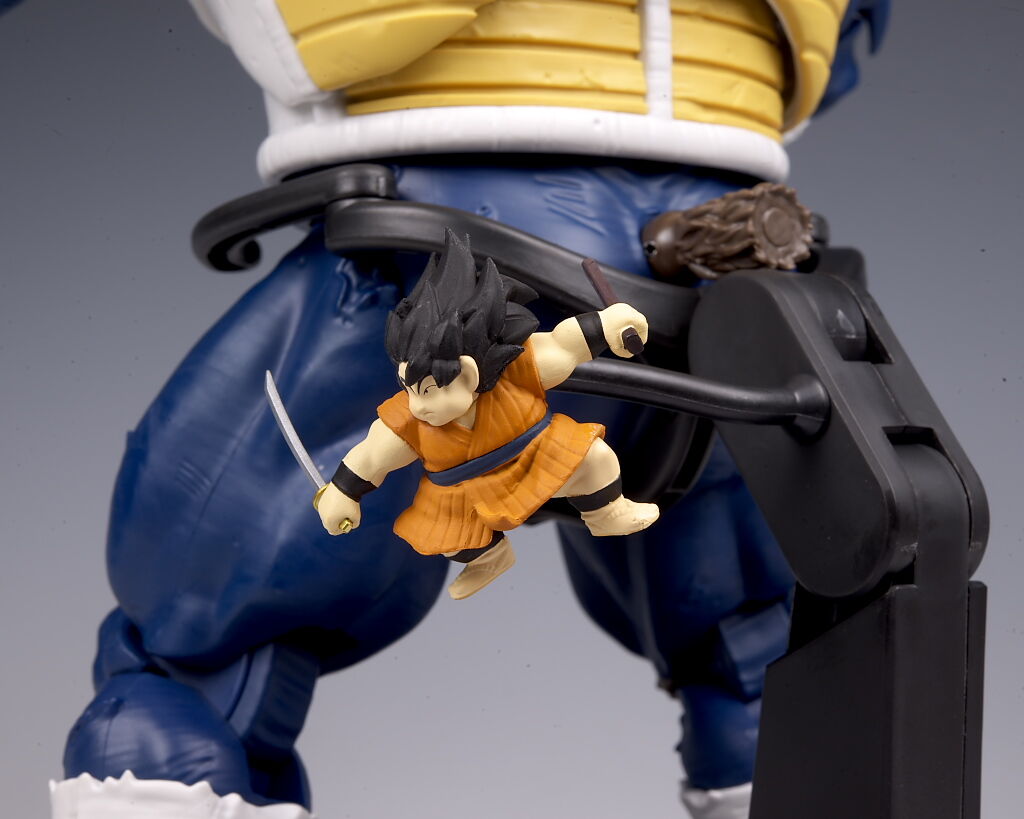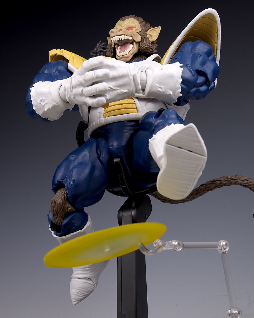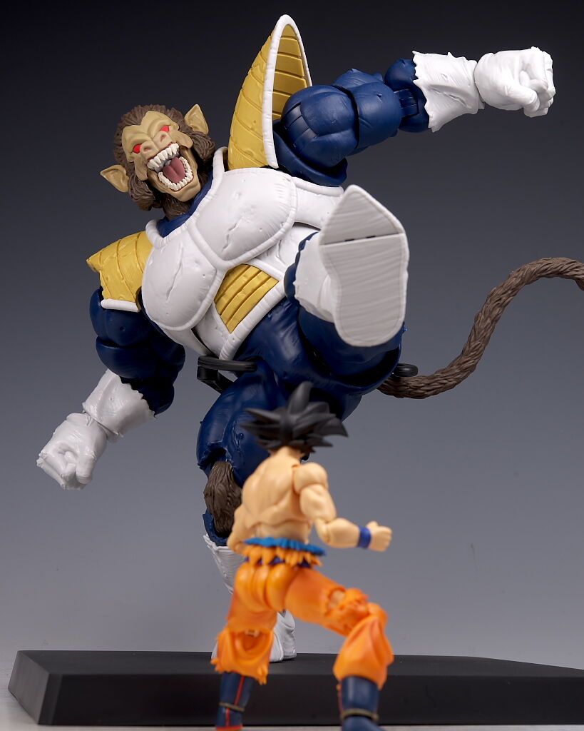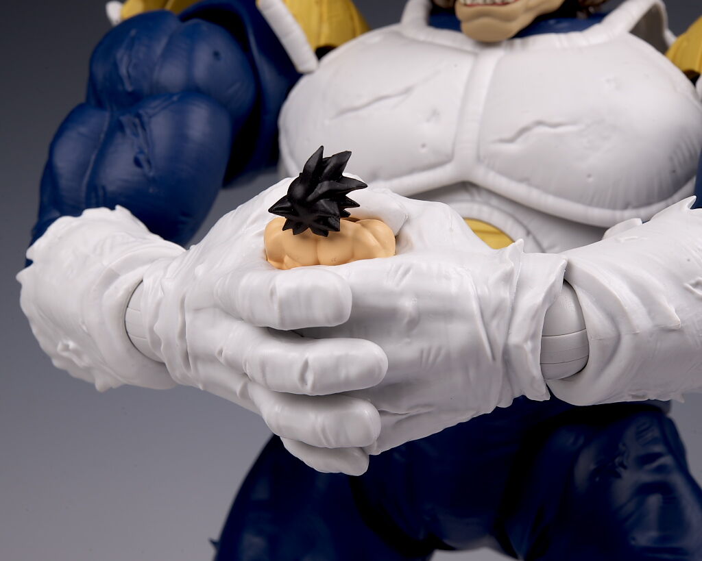 可動もこのサイズながら肩や足首が引き出し式になってるなど良好で、両手で悟空を握り潰すシーンが再現出来たり、また切れた尻尾にヤジロベーフィギュアなど劇中再現にこだわった付属品も付くなど、遊びの面でも申し分なかったです。