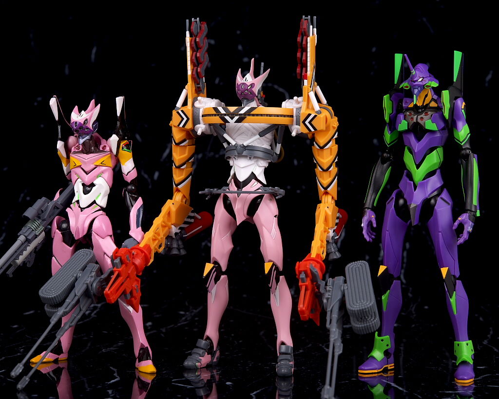 リボルテックの8号機βや同じROBOT魂の初号機と。サイズは初号機と変わらず。普通の8号機も出るのか気になるところ。