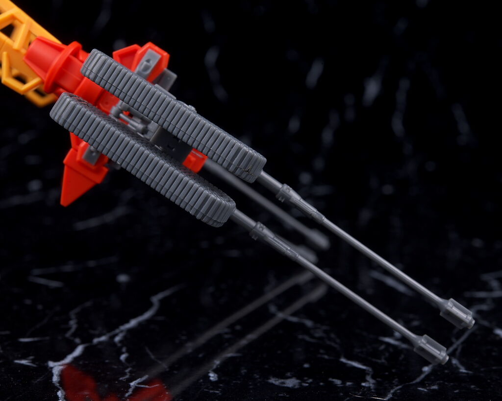 ガトリング砲もかなり繊細な造形で扱いには注意が必要。こちらは手首部分の外装を一部外して取り付け。