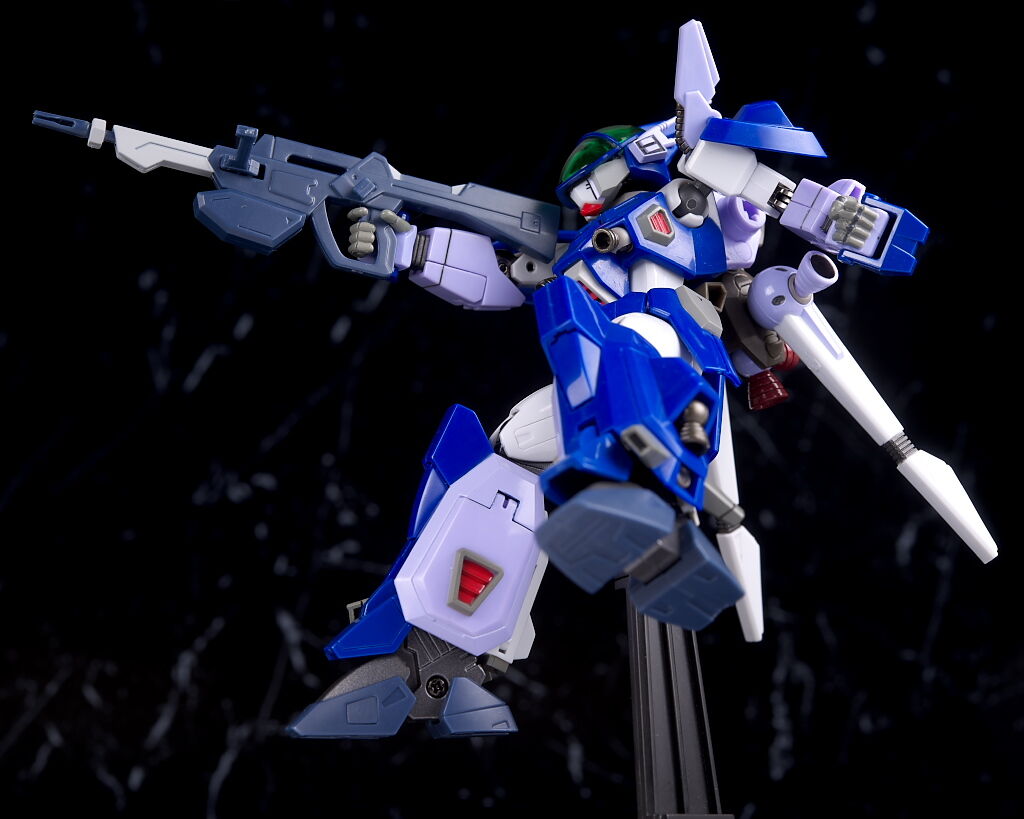 レーザードライフルを構えて突撃。肩は単純なボールジョイントですが両手持ちなどは問題なかったです。