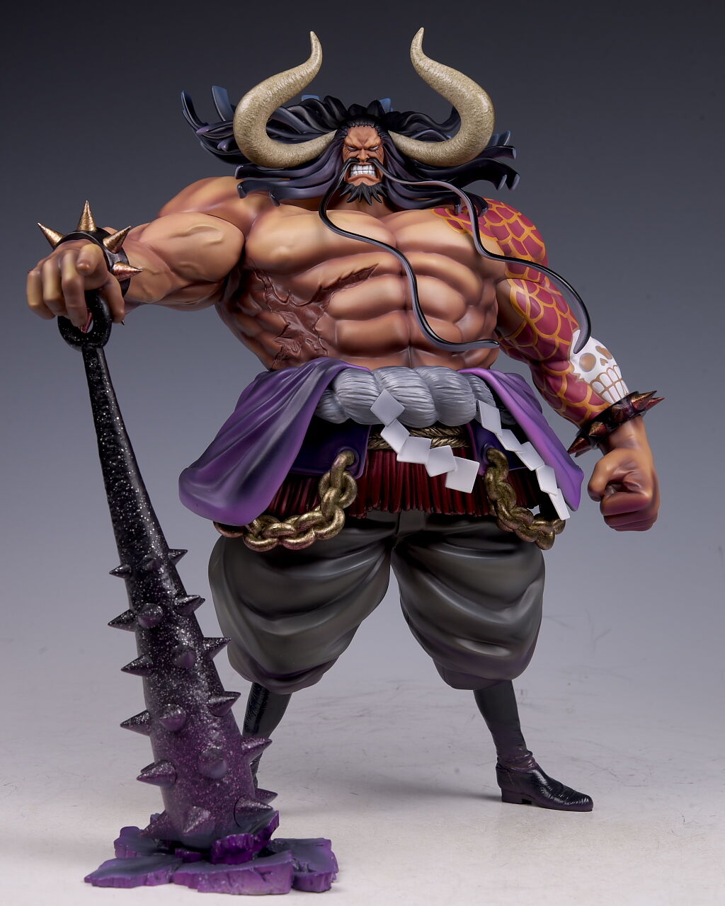 右腕は入れ墨が無く血管が目立つ造形に。手は棍棒の上に置いた状態。