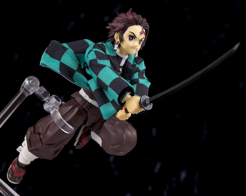 可動は前述の通りかなり良好。特に腕が深く内側へ曲げられるので刀を構えるポーズなどもやりやすかったです。