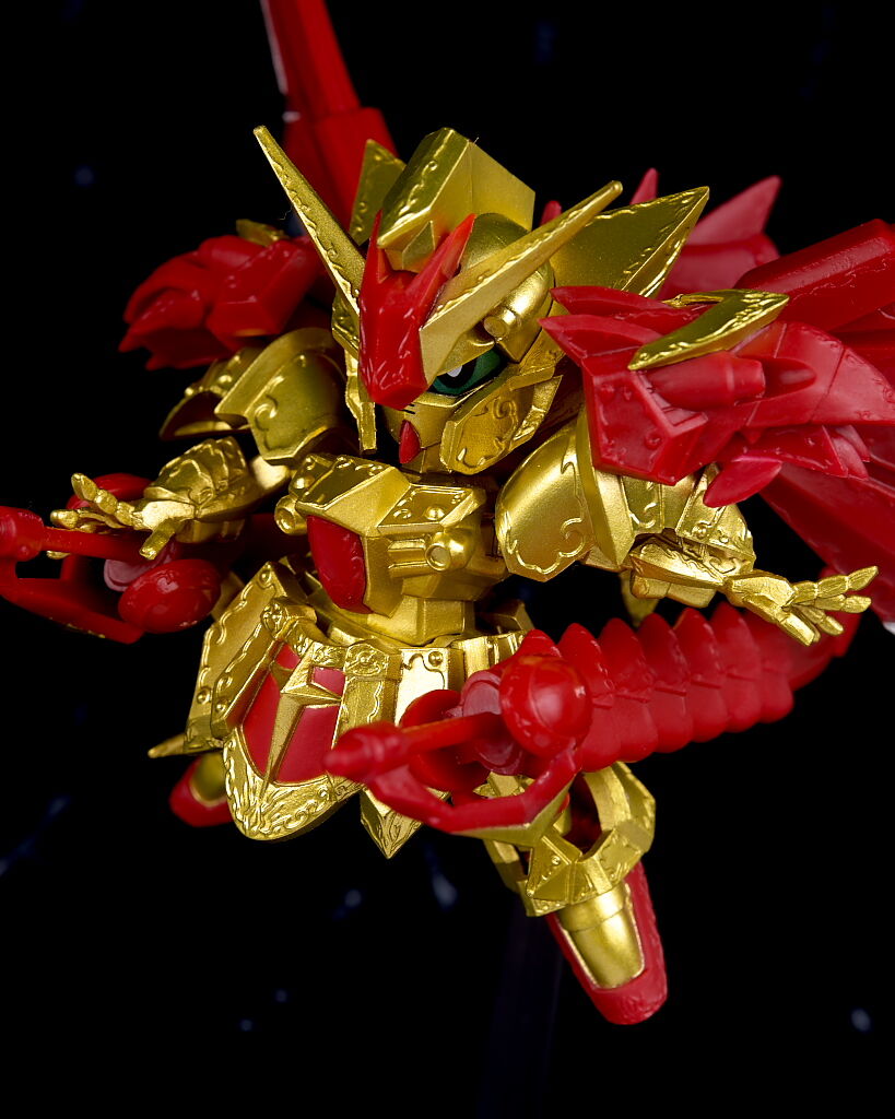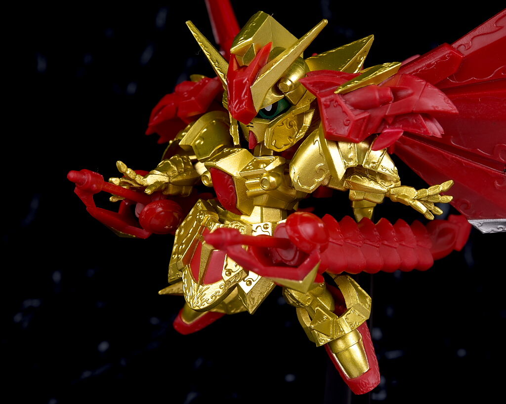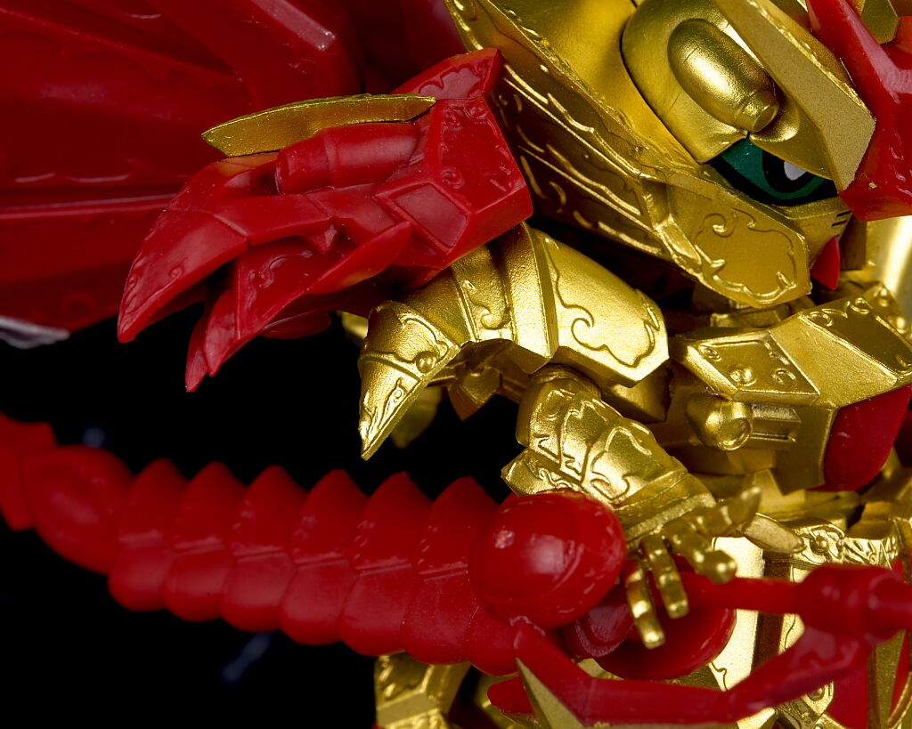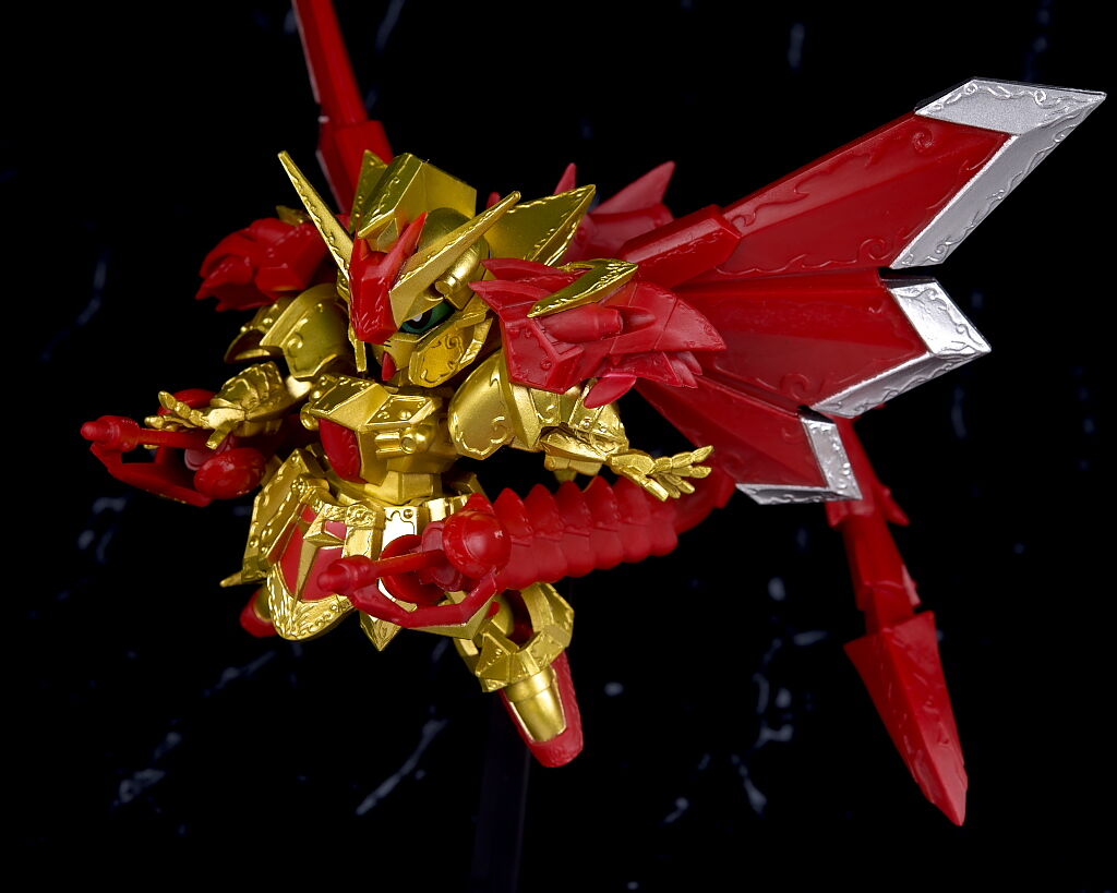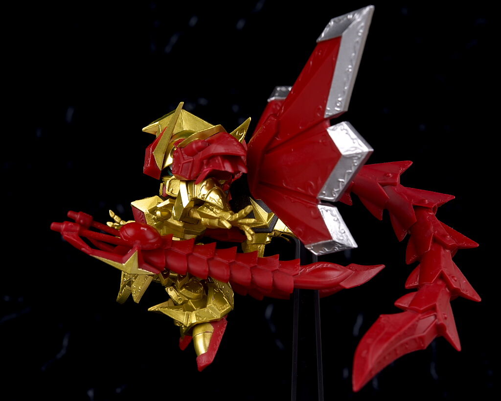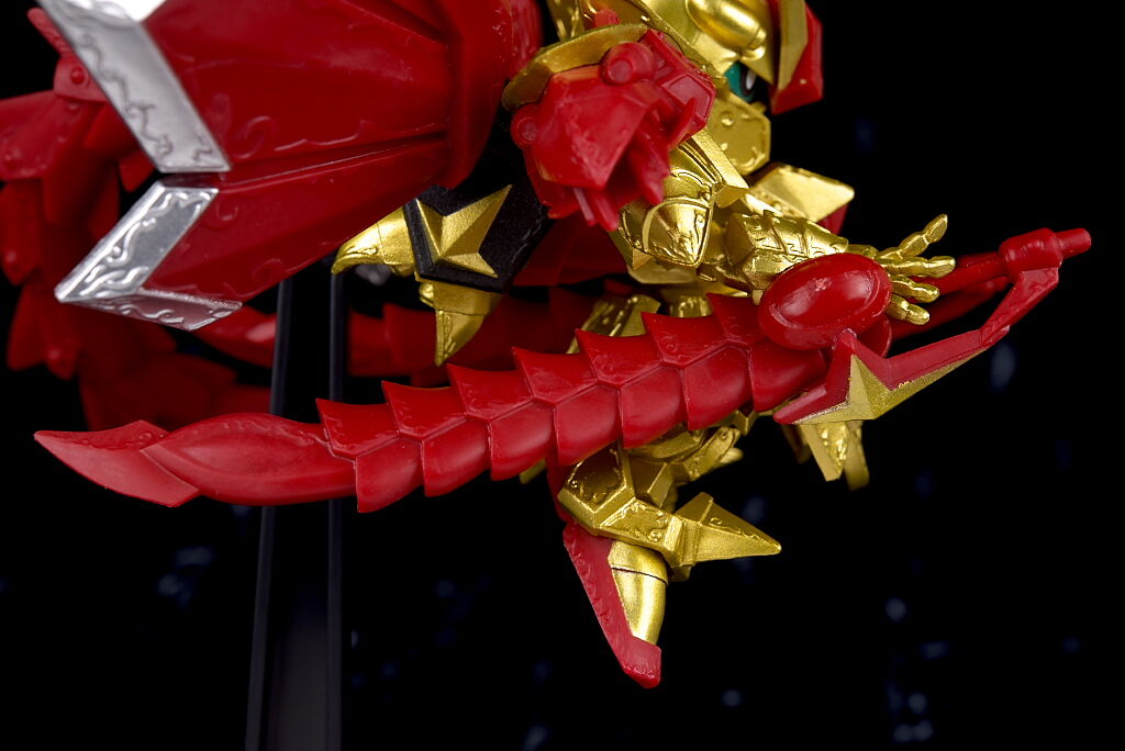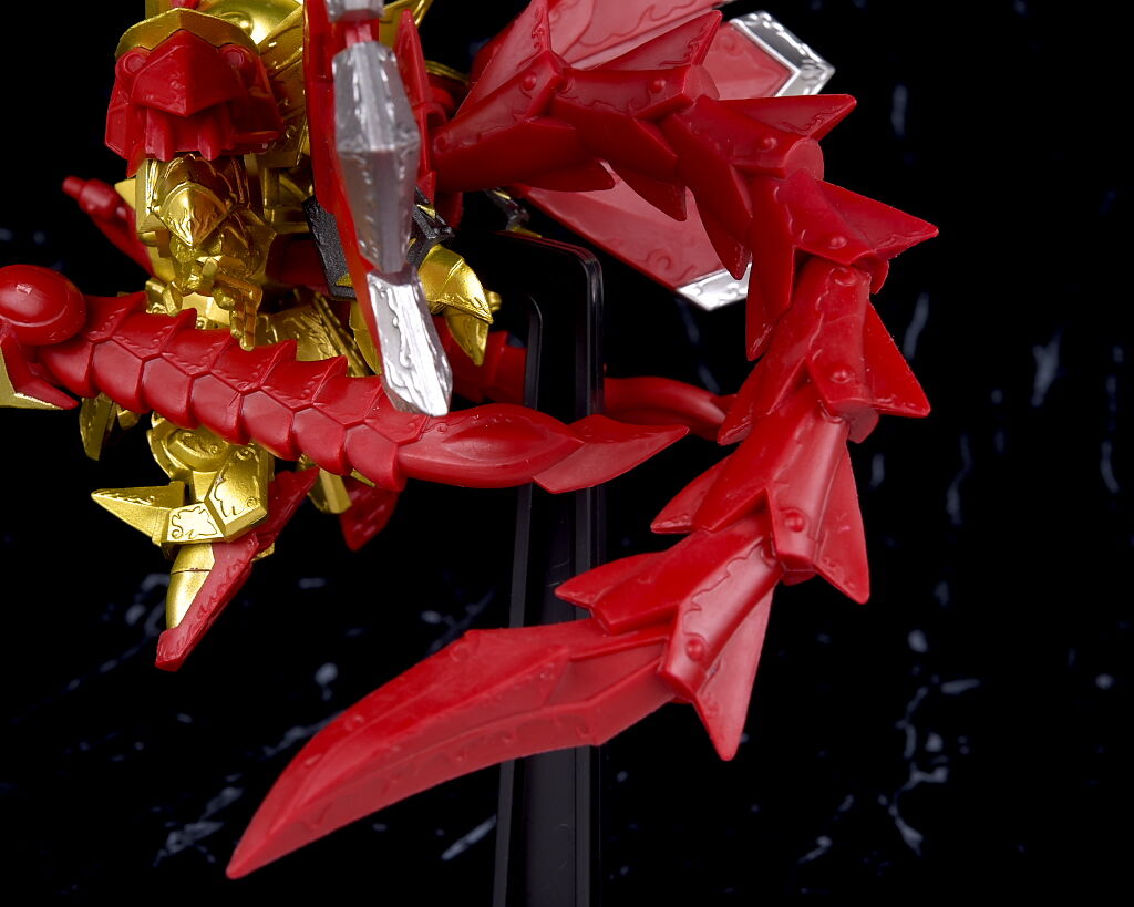 出来の方は、SDXなどと大きく異なる細身で小顔な体型バランスが独特で、全身のエングレービングなんかもスペリオルドラゴンのイメージと合ってて格好良く、赤の成型色はややいまいちでしたが、金のメタリック塗装は綺麗で、価格も安いので十分満足のいく内容でした。
