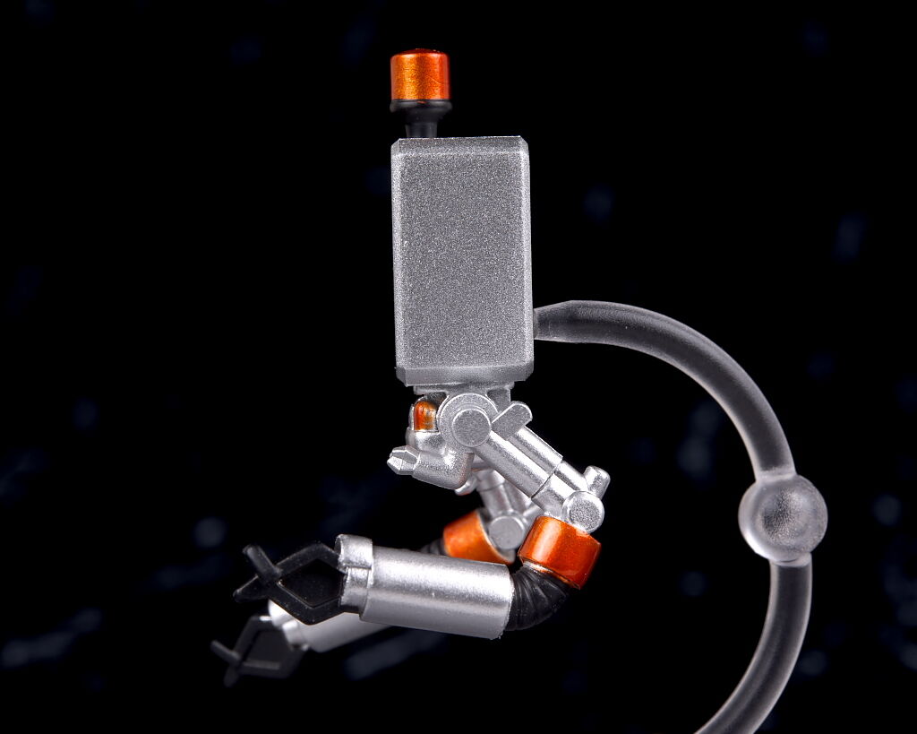 ポッド042。こちらは専用のミニ支柱で浮かせて展示。本体に合わせてデフォルメされたデザインになってました。