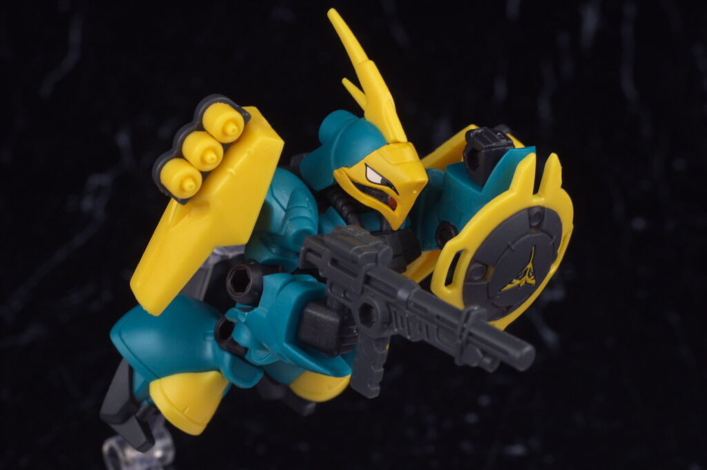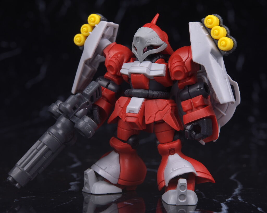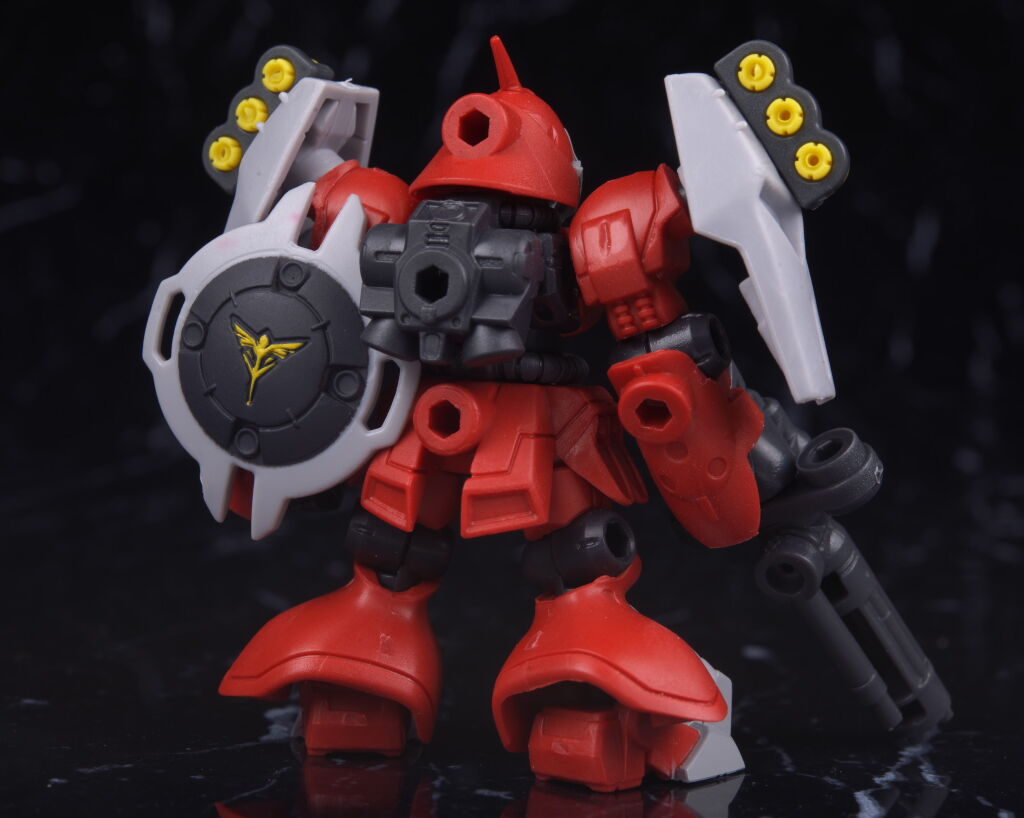本体造形はギュネイ機とほぼ同じで頭部や武器が別造形。ギュネイ機同様シールドのネオジオンマークもきっちり塗装。