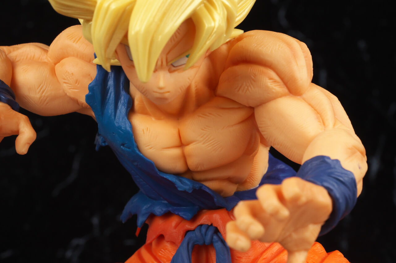 肌の色が若干赤みを帯びてる点だけ少し気になりましたが、顔の再現度が非常に高く、筋肉や破れた道着なども精密に造形されており、ポーズもほぼ原作そのままで完成度の高い出来に仕上がってました。