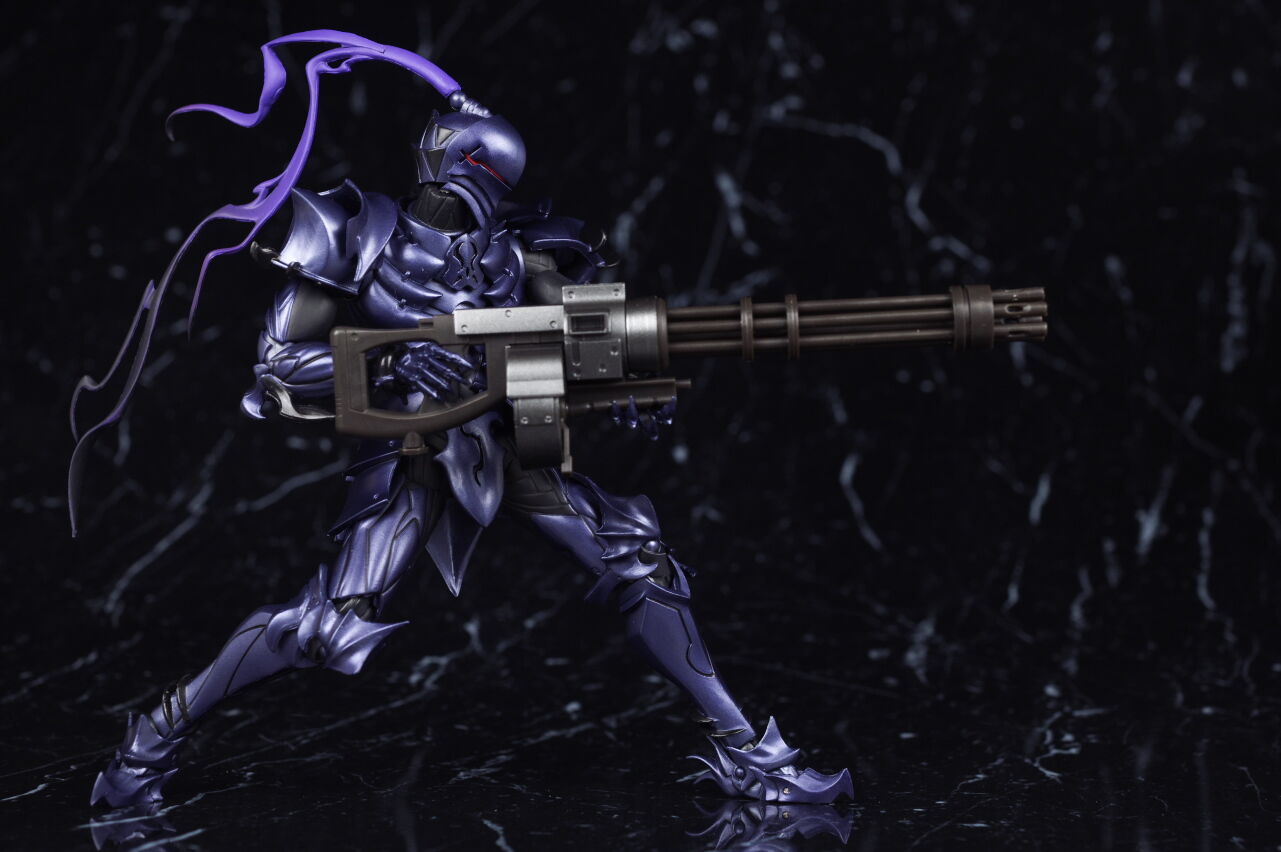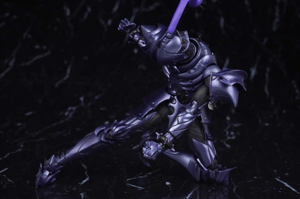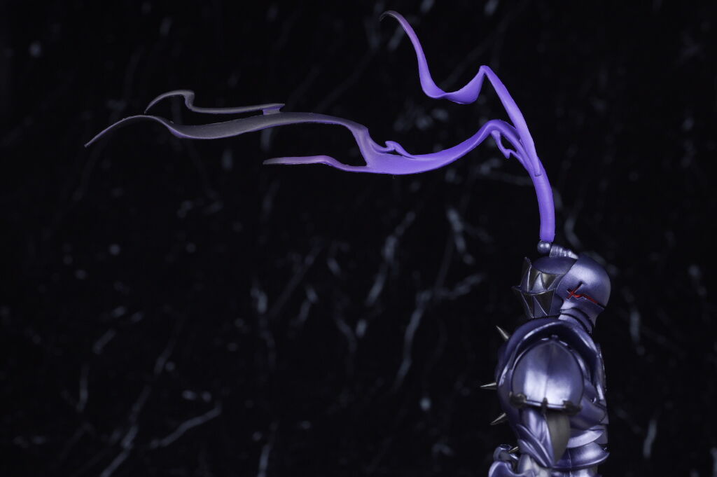 顔。造形的には騎士甲冑そのまま。曲線的なフォルムも綺麗に再現されツヤを押さえた紫のパール塗装も綺麗。
