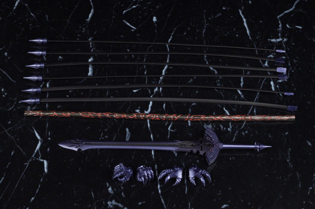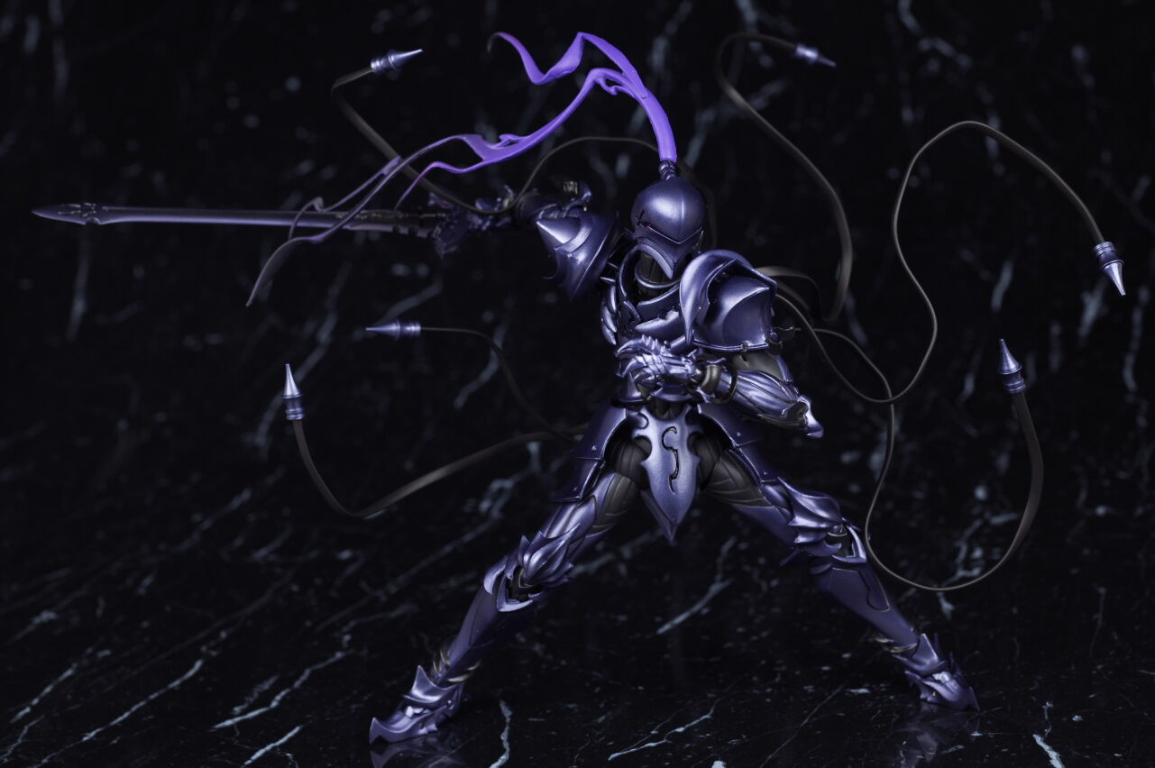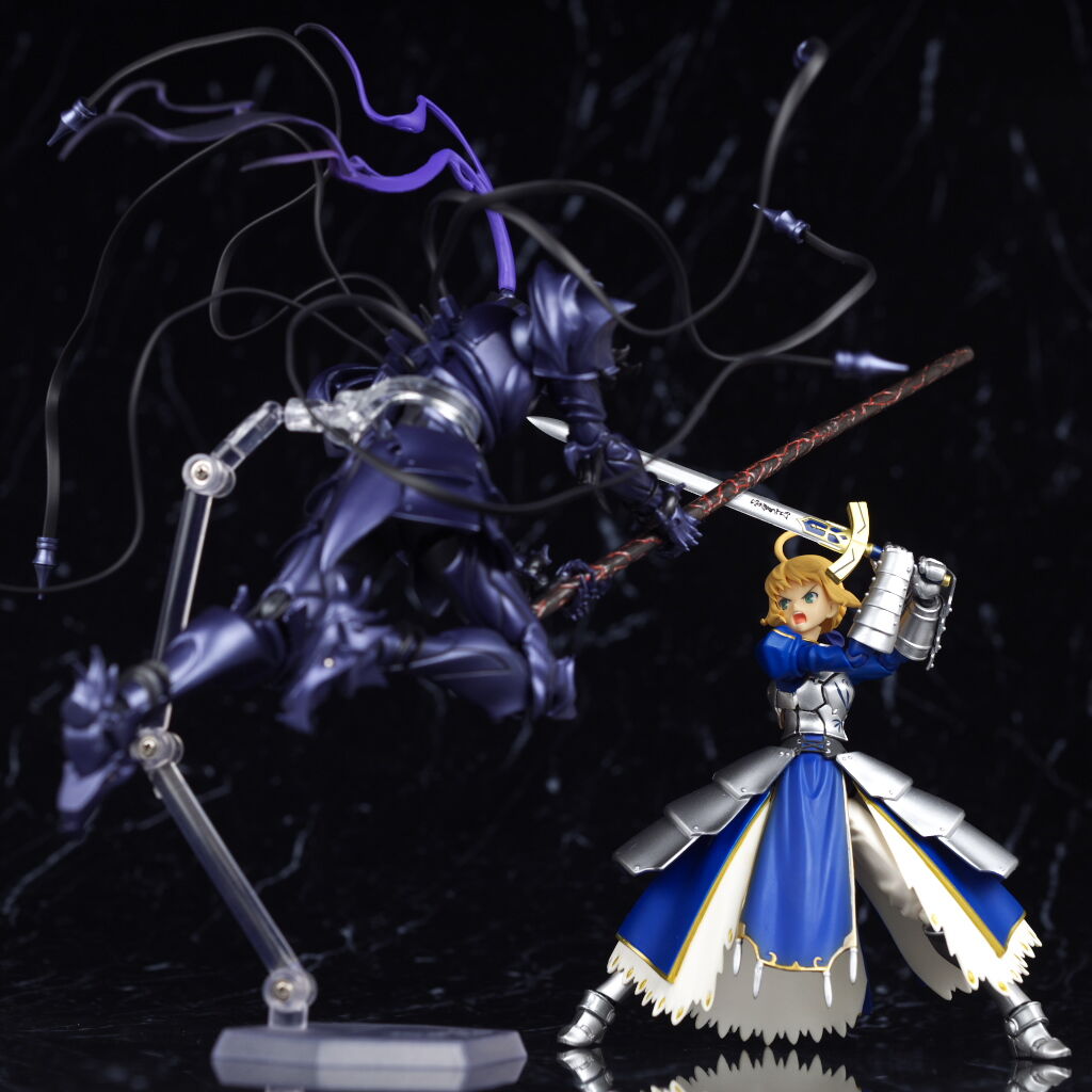 出来の方はプロポーションや鎧の造形、色などイラストやアニメのイメージ通りで、可動も優秀、武器や触手状のパーツなどオプションも凝った作りで、figmaのセイバーやギルガメッシュなどと並べても違和感の無いサイズ感で期待通りの内容でした。