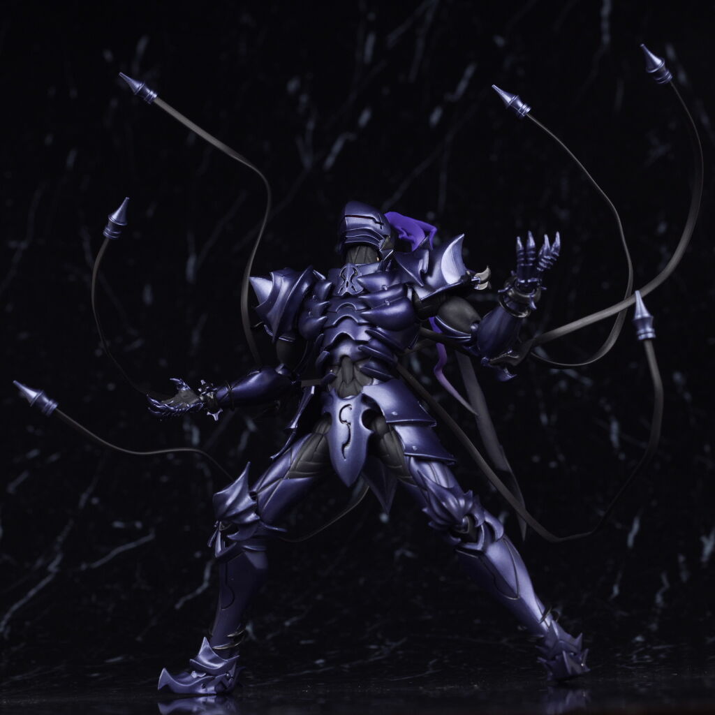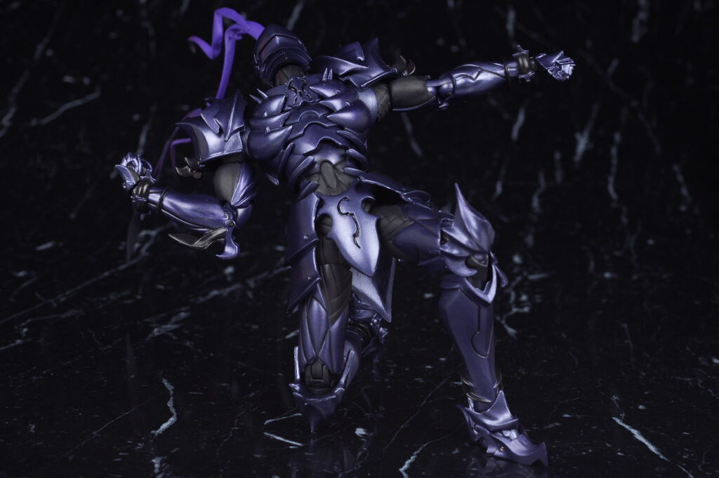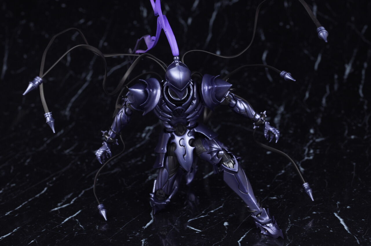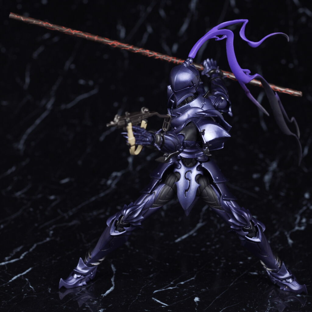 出来の方はプロポーションや鎧の造形、色などイラストやアニメのイメージ通りで、可動も優秀、武器や触手状のパーツなどオプションも凝った作りで、figmaのセイバーやギルガメッシュなどと並べても違和感の無いサイズ感で期待通りの内容でした。