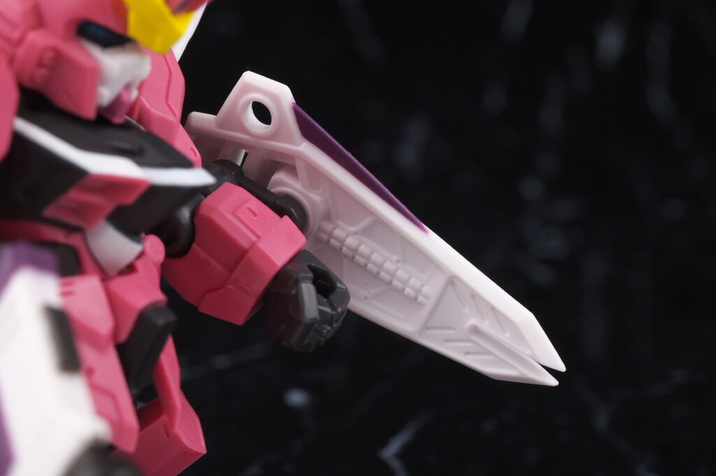価格が結構高めなのに頬のグレーが塗られてない点は残念でしたが、造形に関してはいつも通り安定しており、独特な機体色もアニメでのイメージ通りでなかなかの格好良さでした。