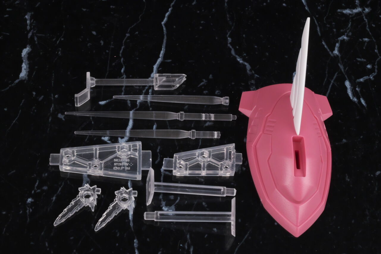 肩のビームブーメラン、バッセル用のビームエフェクトも付属。専用の補助台座も付いてました。
