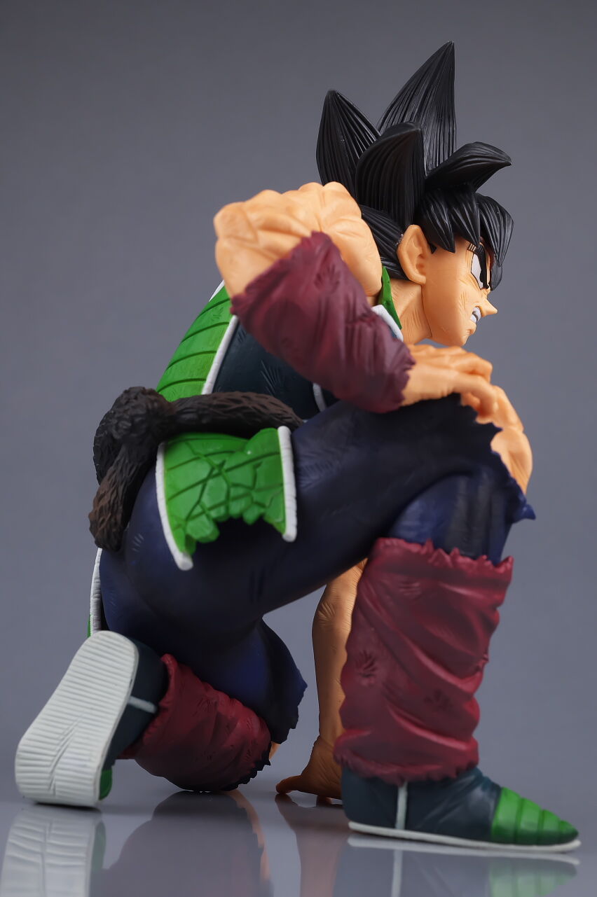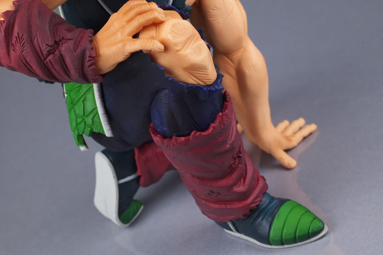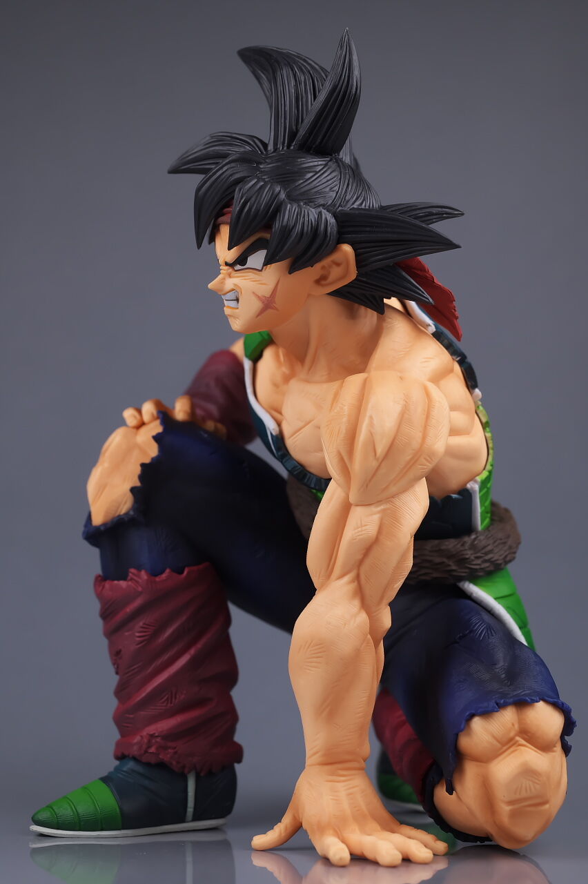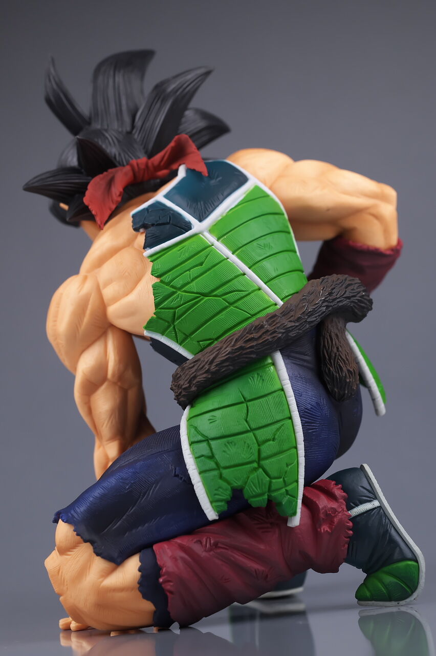 ボロボロな姿で片膝ついて相手を睨みつけるというバーダックらしい姿。姿勢が安定してるので台座などは付属せず。