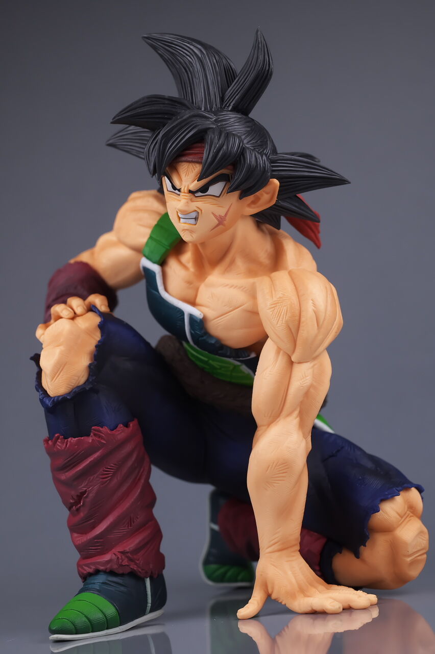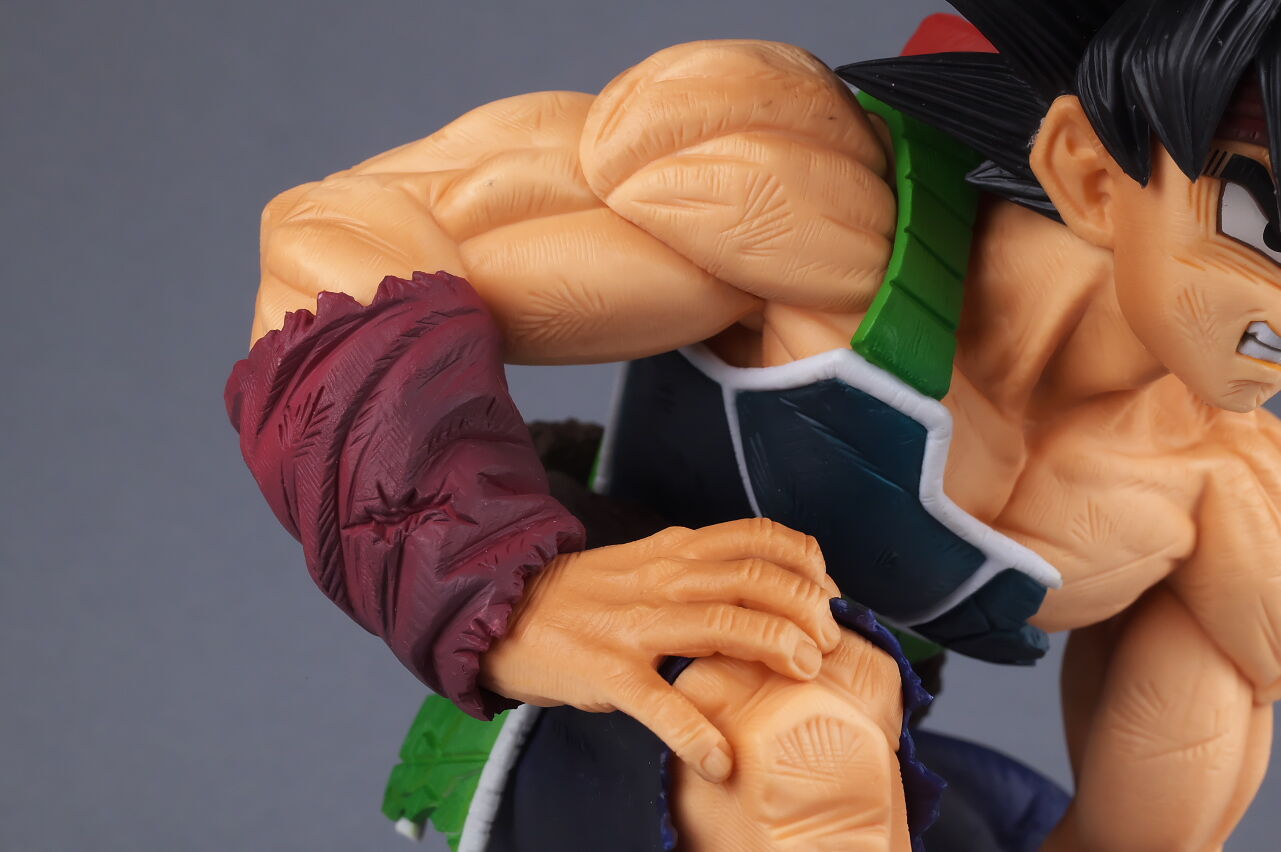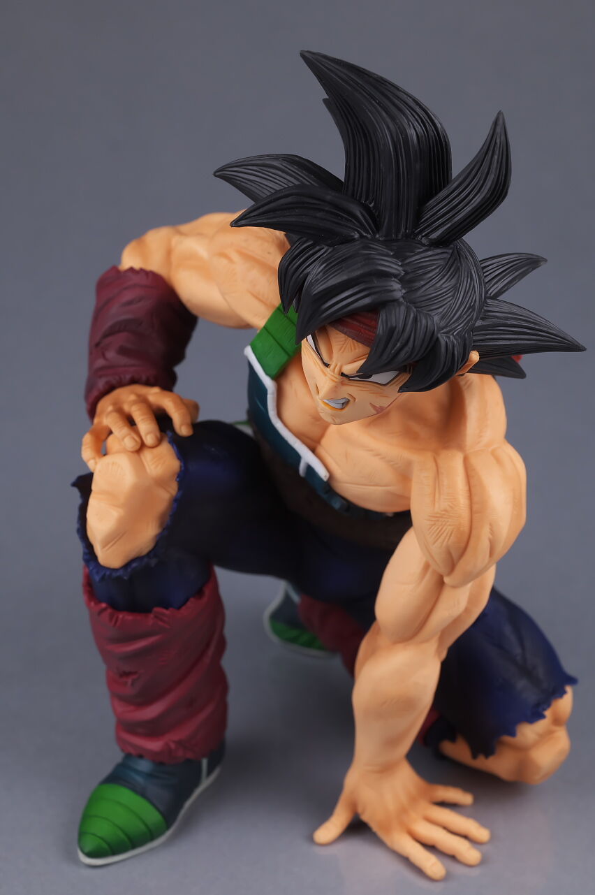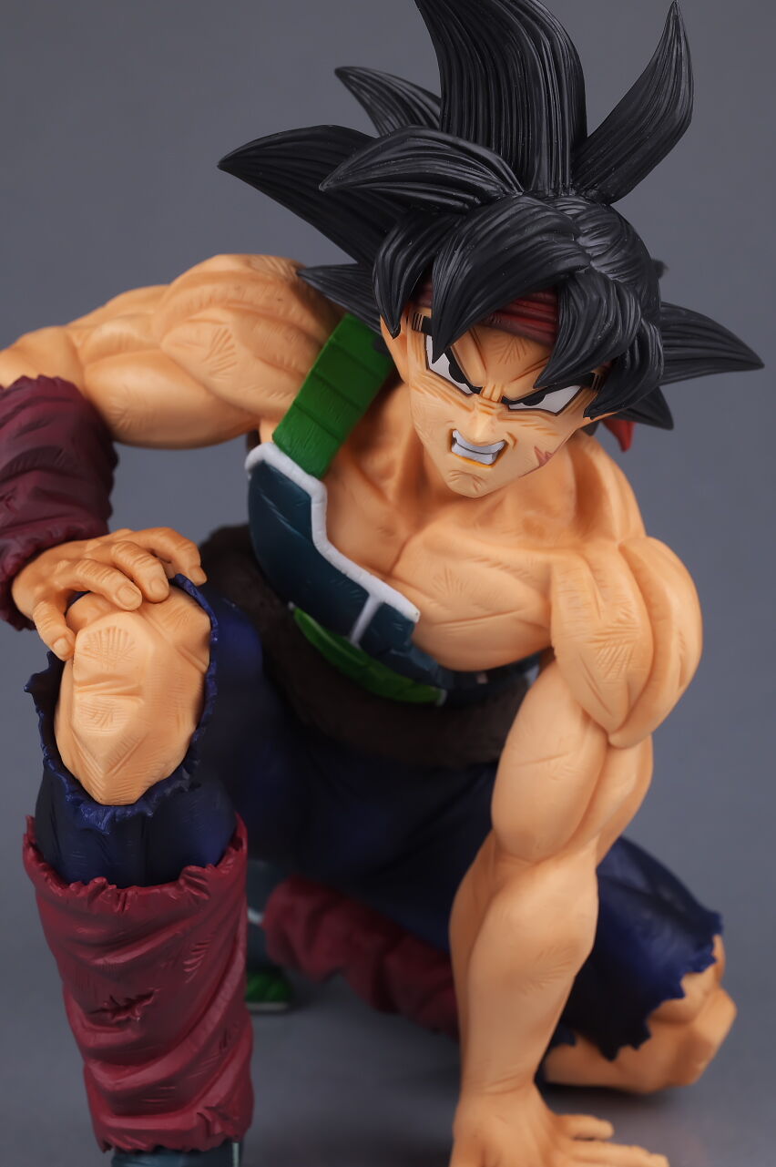 ボロボロな姿で片膝ついて相手を睨みつけるというバーダックらしい姿。姿勢が安定してるので台座などは付属せず。