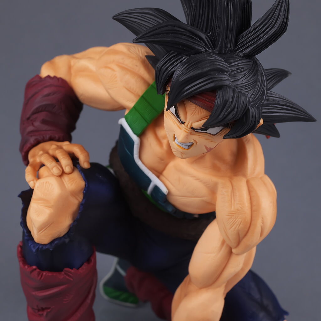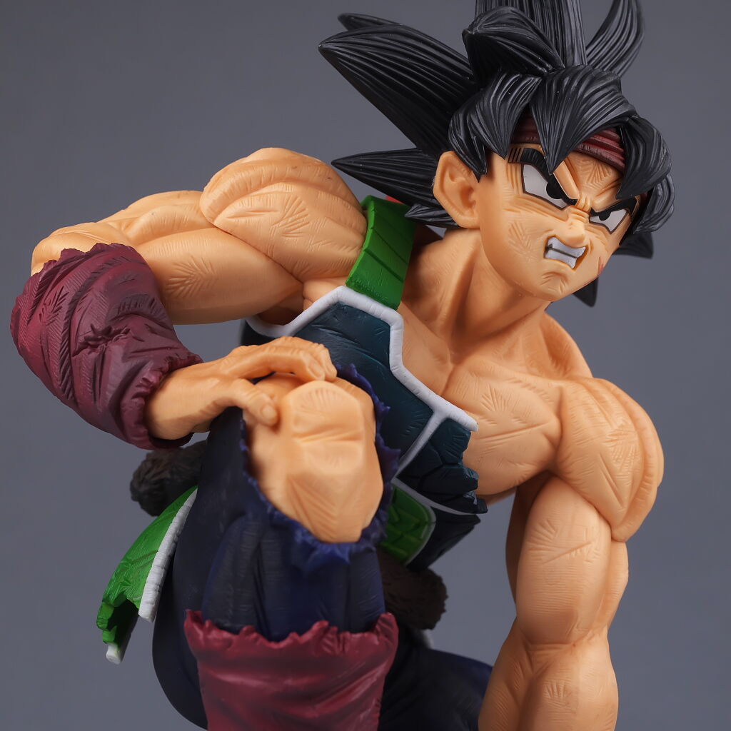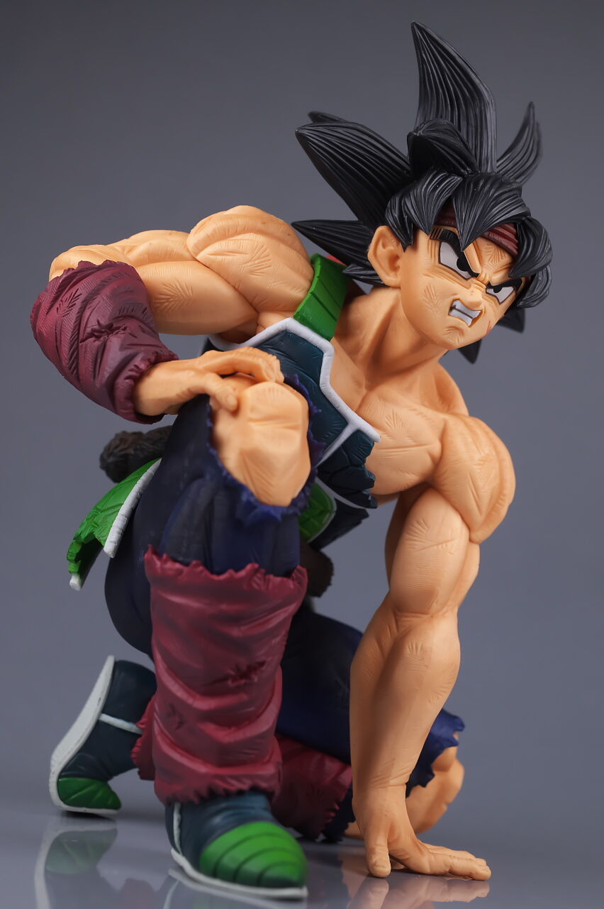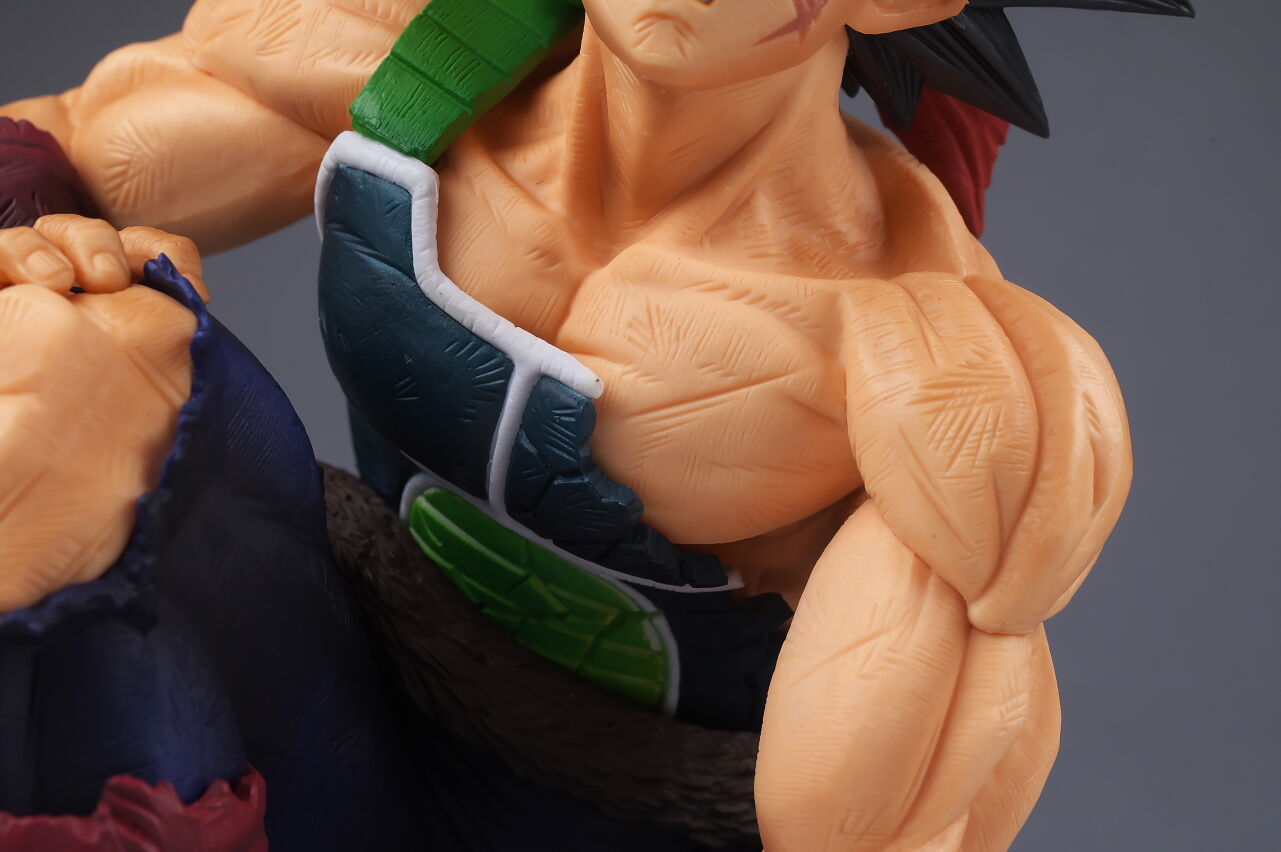 ボロボロな姿で片膝ついて相手を睨みつけるというバーダックらしい姿。姿勢が安定してるので台座などは付属せず。