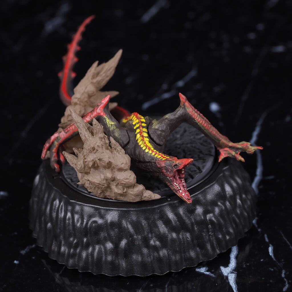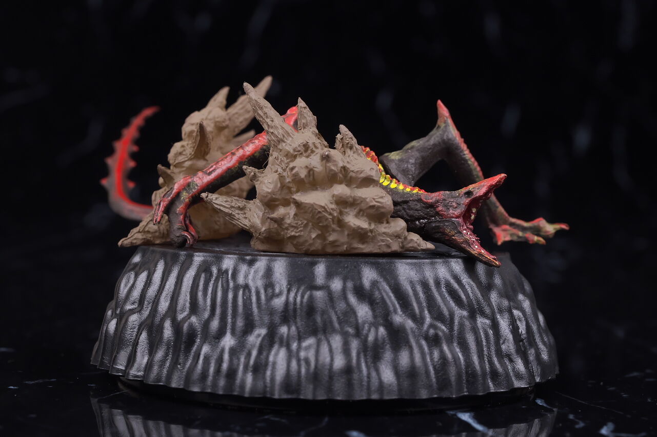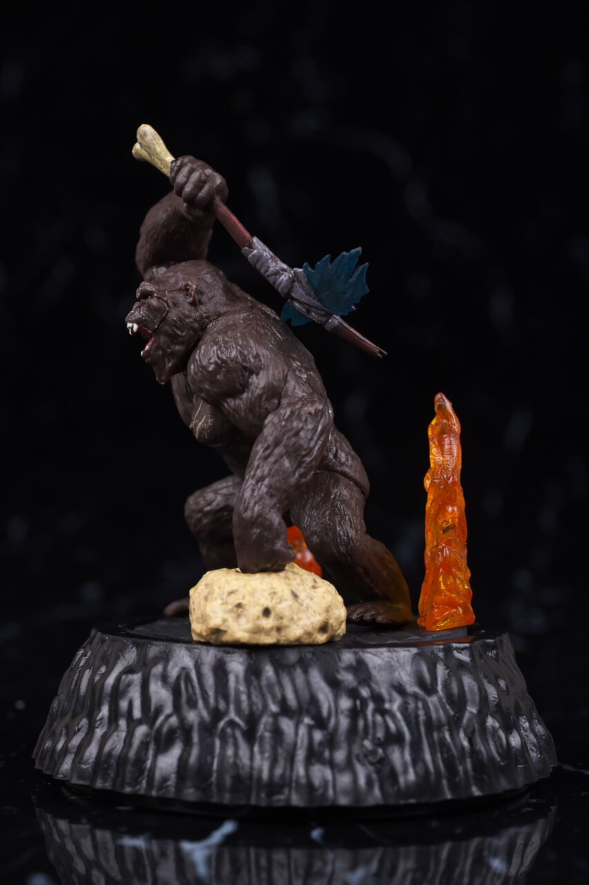 こちらは前傾すぎて単体では自立しないので左手の下に岩パーツを置く仕様。こちらも武器や胸の傷などまでリアルに再現。
