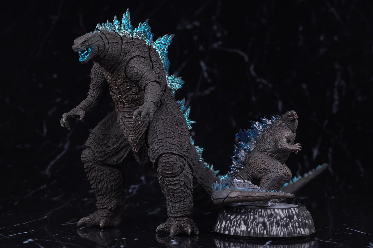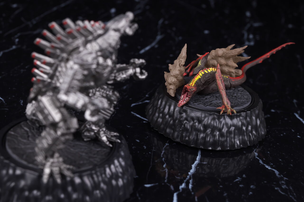 SHMのゴジラと。全高は台座込みで8.5cm程でした。
