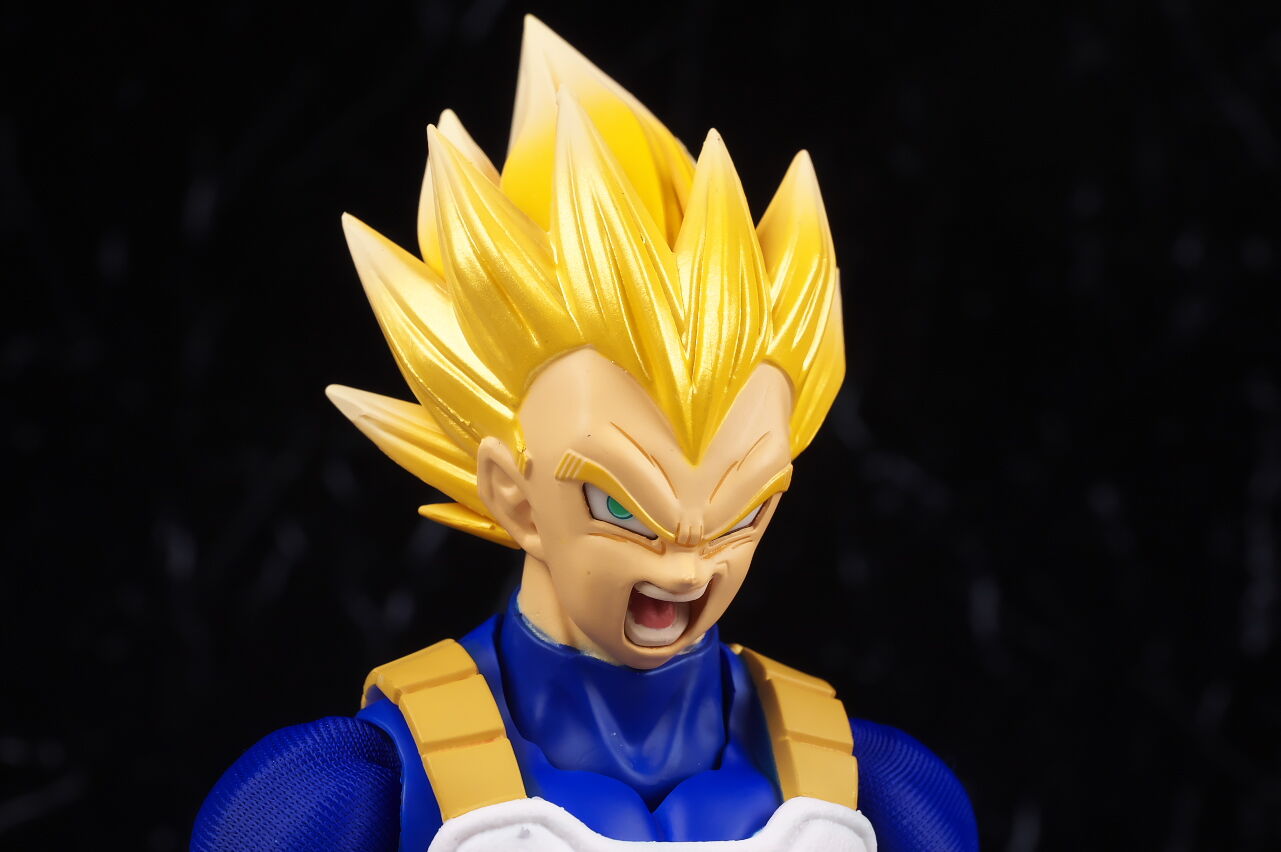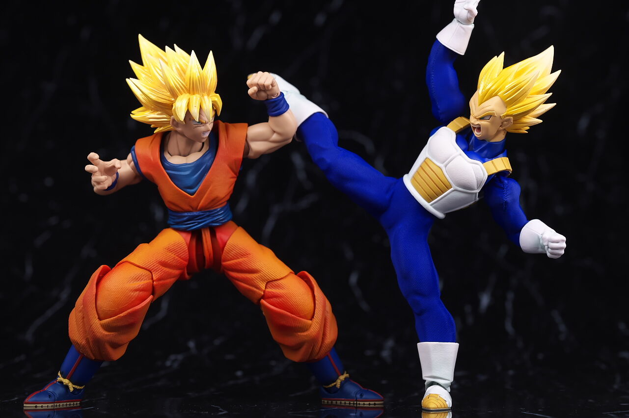SHFよりも高級感のあるDBアクションフィギュアを目指してるのかと思ったら一部の塗装が雑だったりコンセプトがちょっとよく分からない所がありますが、SHFより大きいサイズで表情パターンが豊富な物が欲しくて、尚且つ布素材に抵抗が無い人ならなかなかオススメだと思います。
