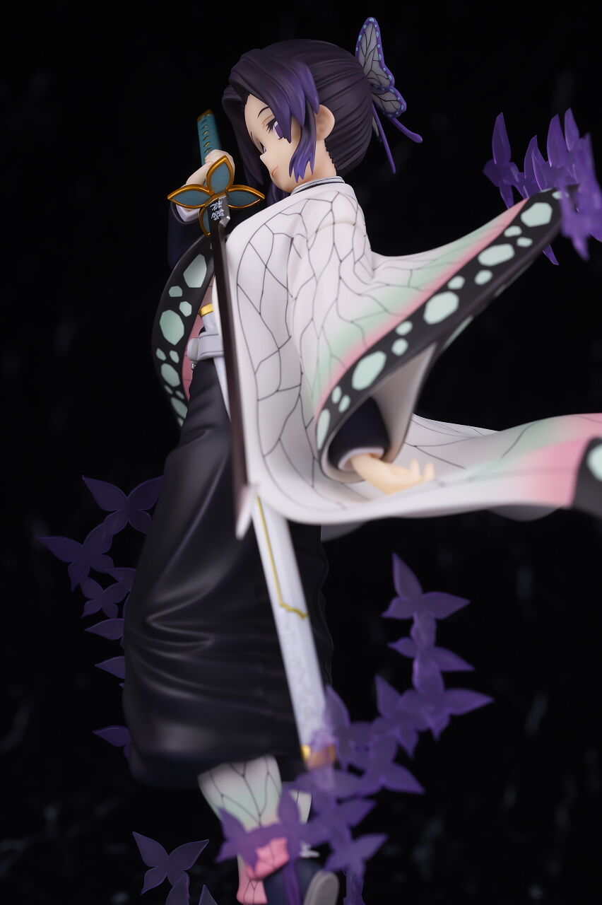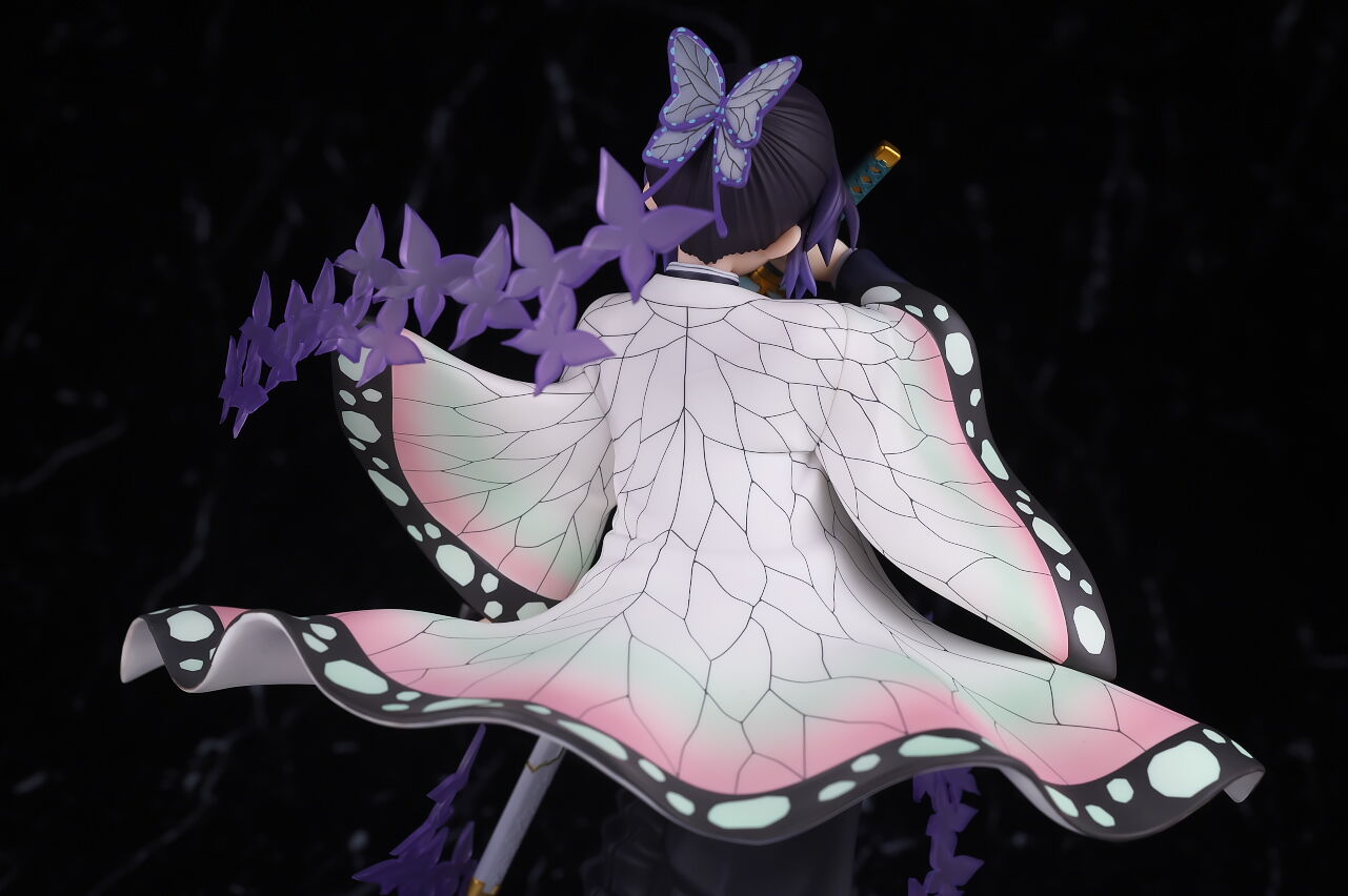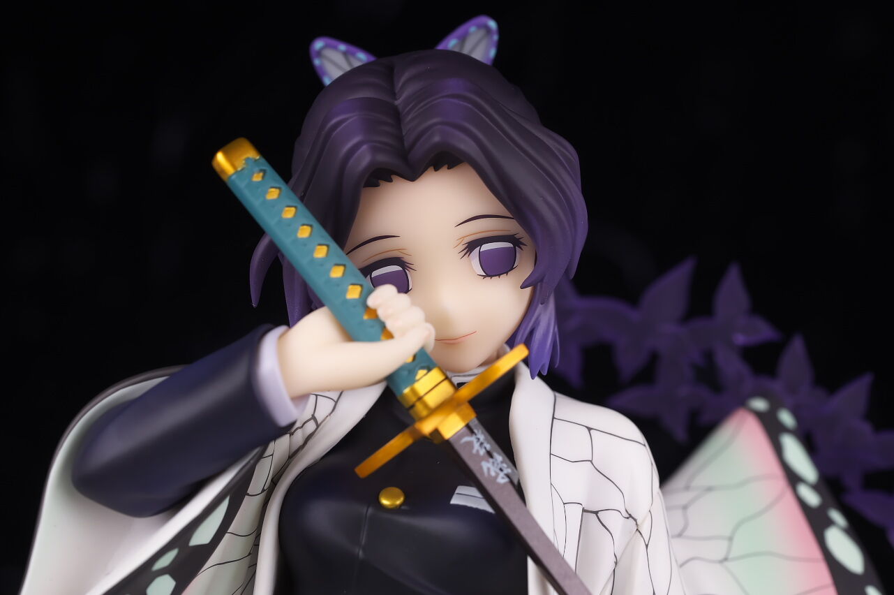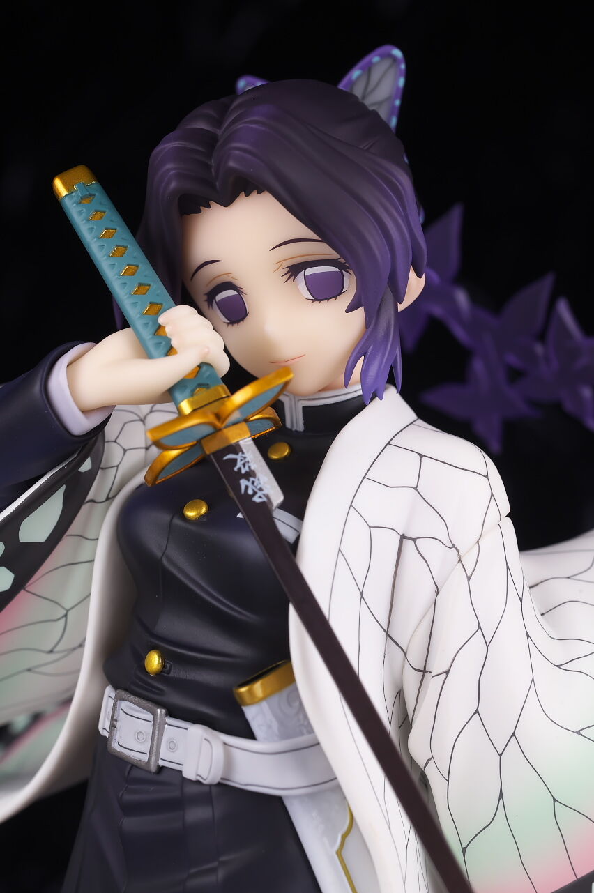 アルターらしい丁寧な作りで顔の出来はほぼ完璧、独特な羽織の模様もイメージ通り再現されてて衣装の作り込みも申し分なく、一番定番とも言えるポーズで表情も癖が無いので、個人的には胡蝶しのぶの決定版と言っていい出来に仕上がってると思います。