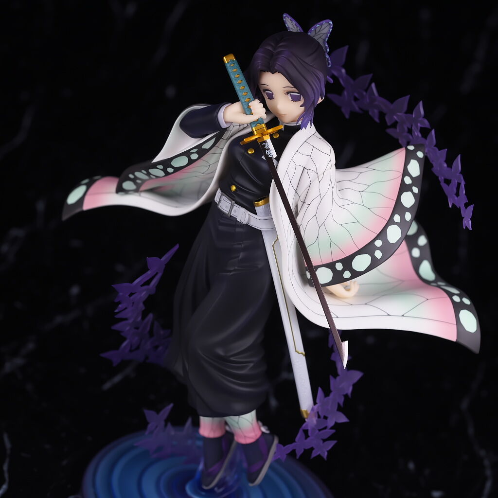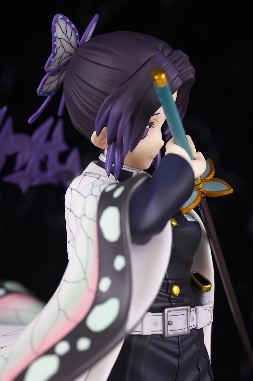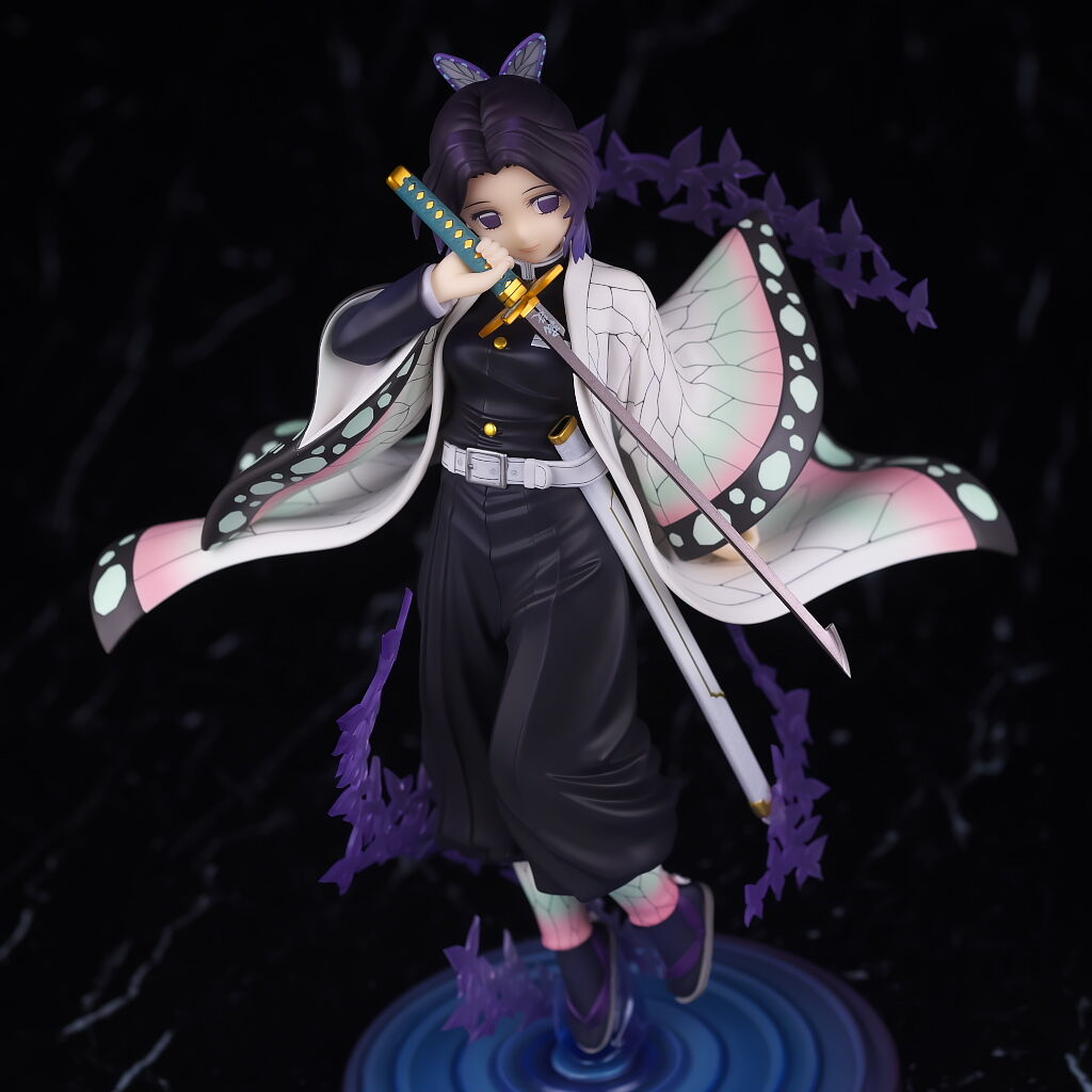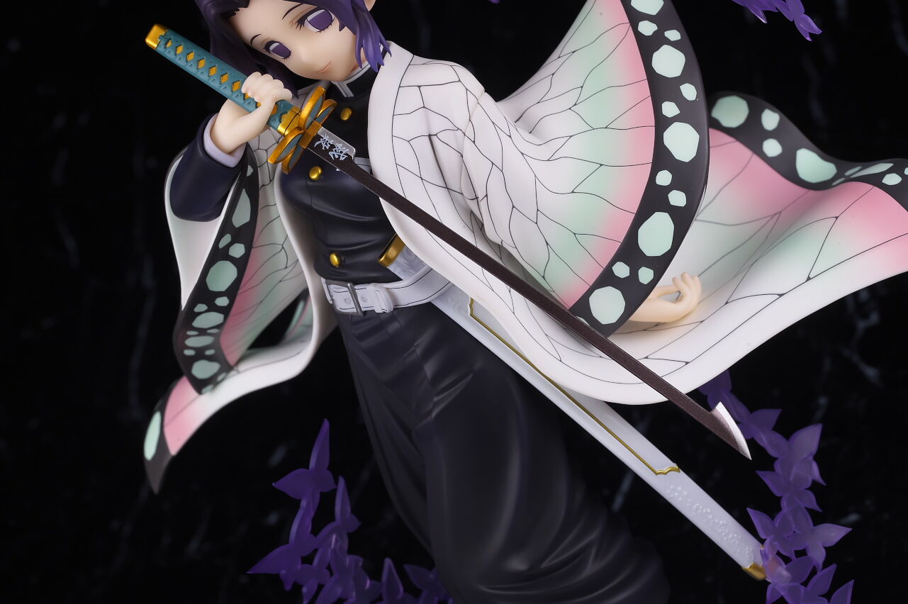 アルターらしい丁寧な作りで顔の出来はほぼ完璧、独特な羽織の模様もイメージ通り再現されてて衣装の作り込みも申し分なく、一番定番とも言えるポーズで表情も癖が無いので、個人的には胡蝶しのぶの決定版と言っていい出来に仕上がってると思います。