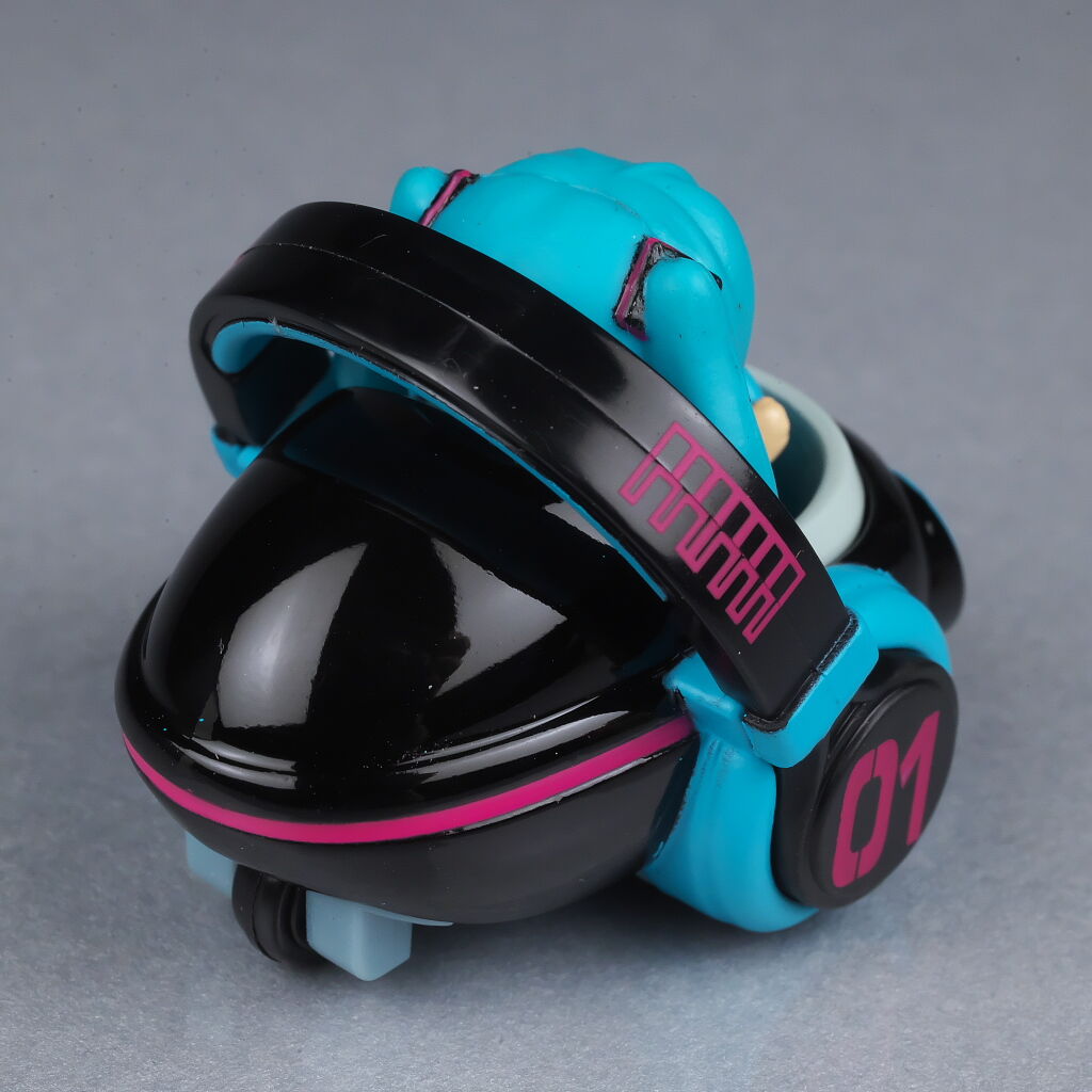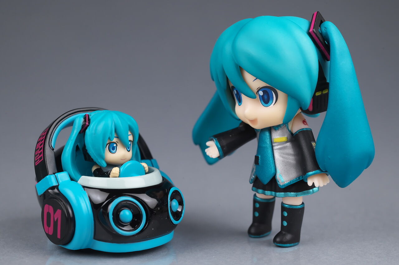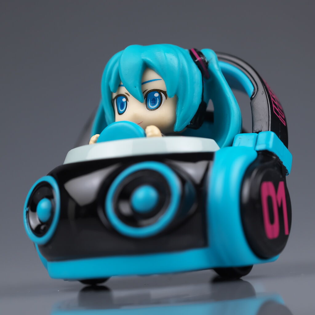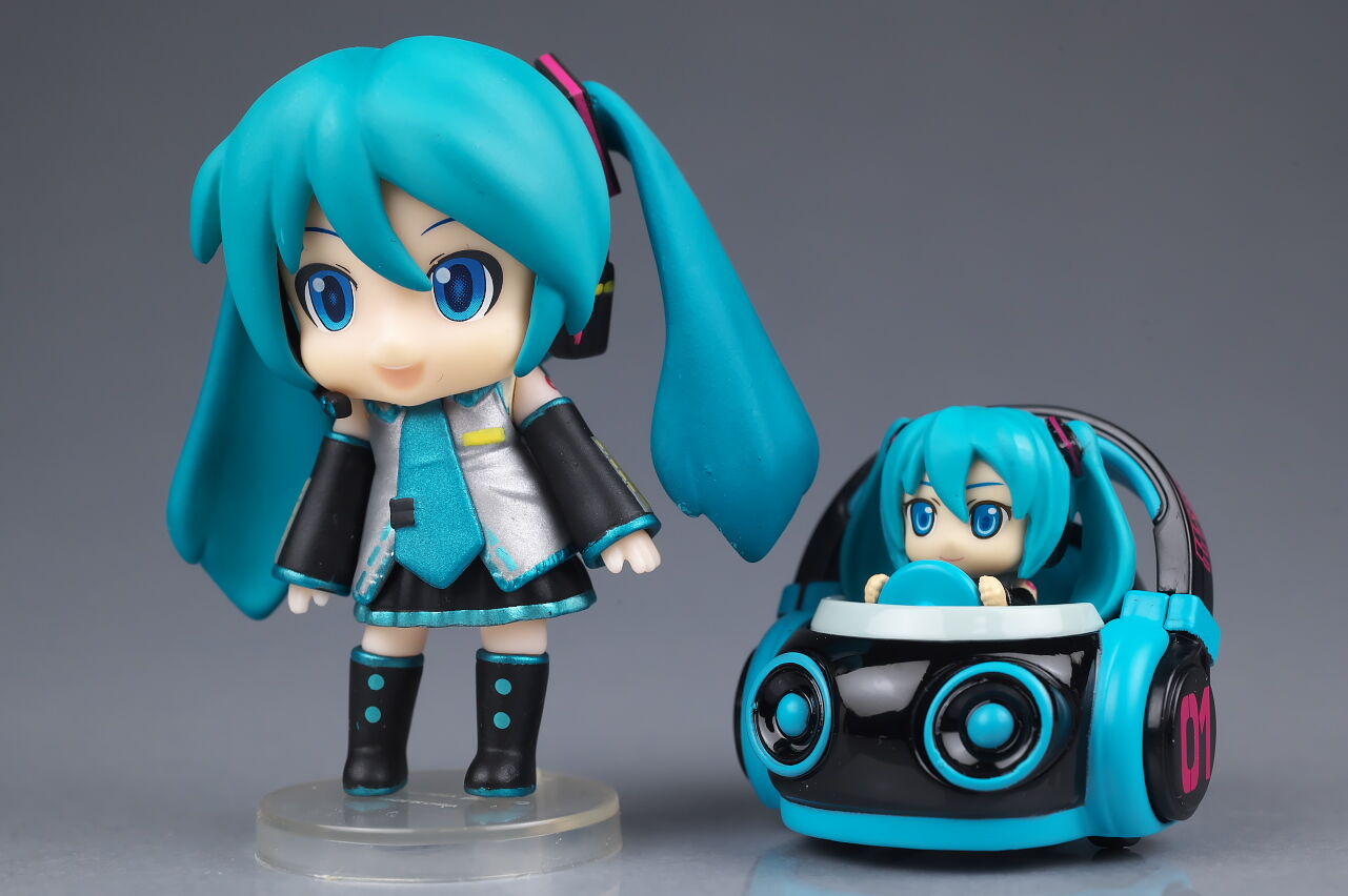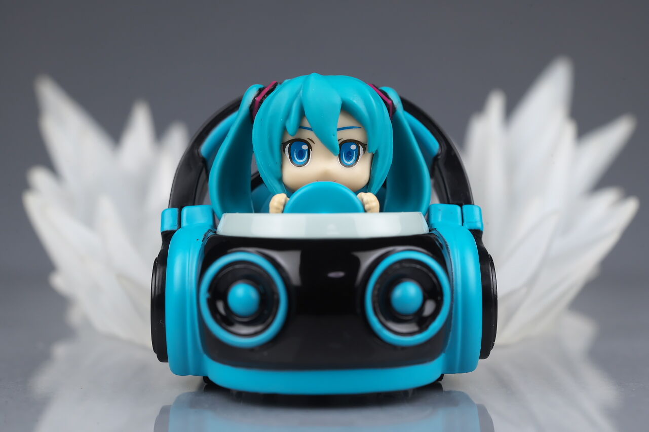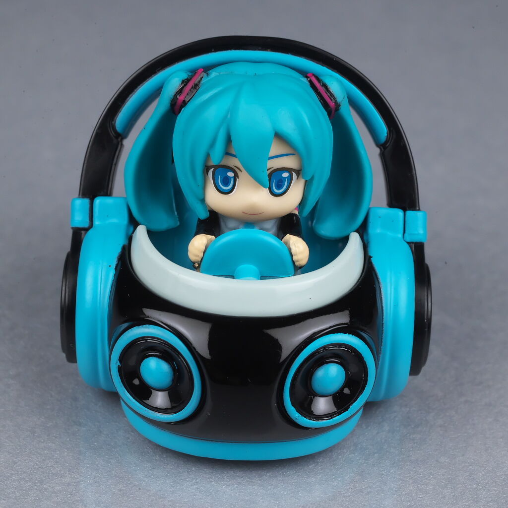サイズは小さいですがダイキャストの割合が高くなかなかの重量感で、よく見るとディテールなども結構凝っており、乗ってるミクの顔も独特な感じで可愛かったです。